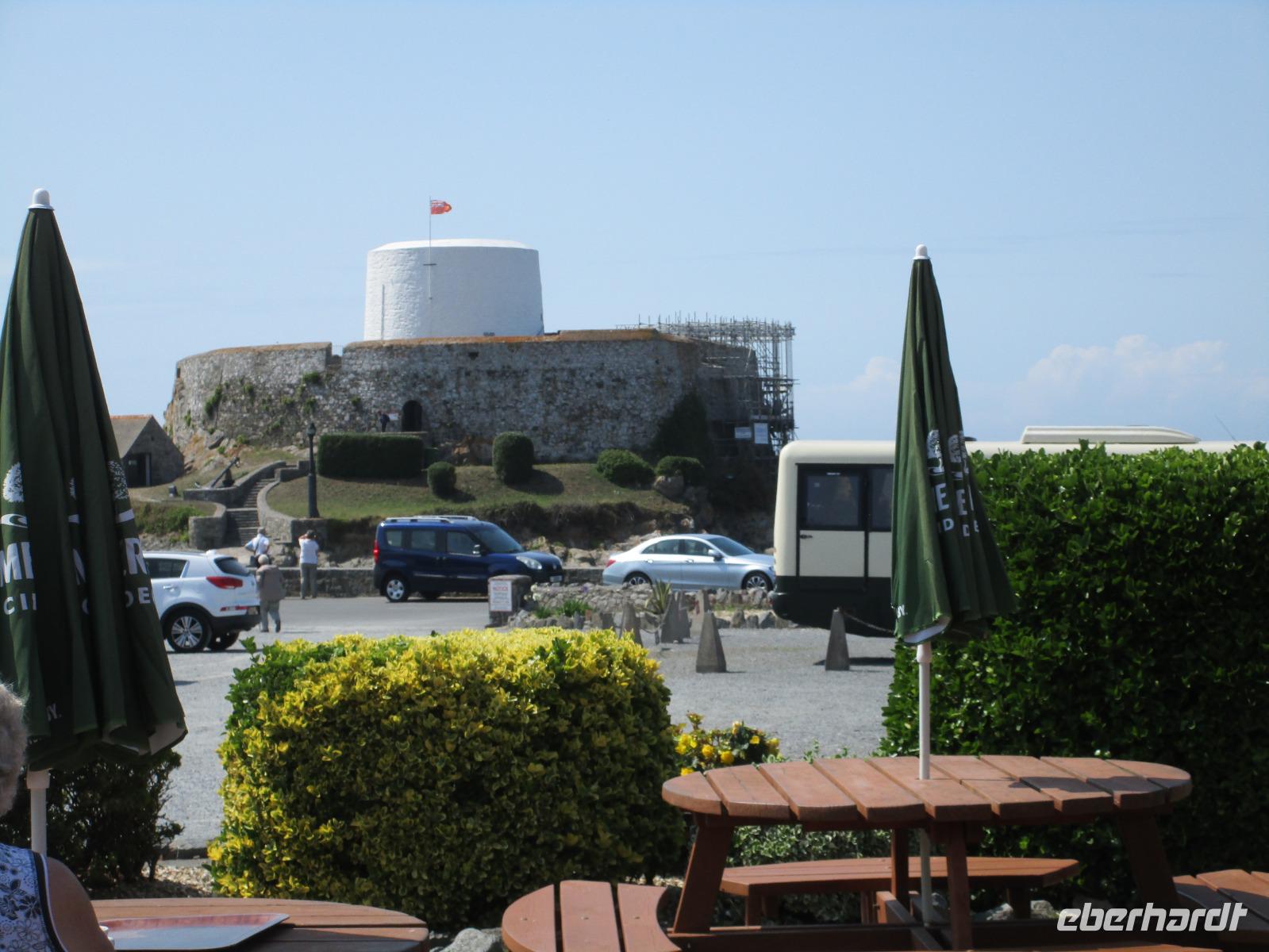 tausenden kleinen Porzellansplittern war sicher ein besonders in Erinnerung bleibender Eindruck dieses Tages. Am Fort Grey mit seinem weißen Martelloturm erkundeten wir dessen Ruinen und ließen uns gleich nebenan Kaffee und Kuchen munden.Bevor wir dann zum Hafen zurück fuhren,schauten wir uns noch das Fort Hommet an.Auf Jersey angekommen, brachten uns die Kleinbusse wieder in unser Hotel.Dort erwartete uns- wie jeden Abend- ein 3-Gänge -Menü von bester Qualität und auch ein Schmaus für`s Auge,welches wir immer im Voraus auswählen konnten.