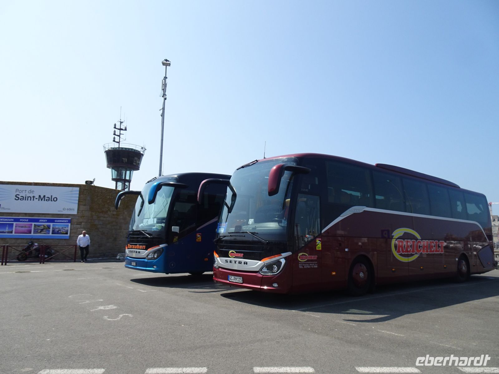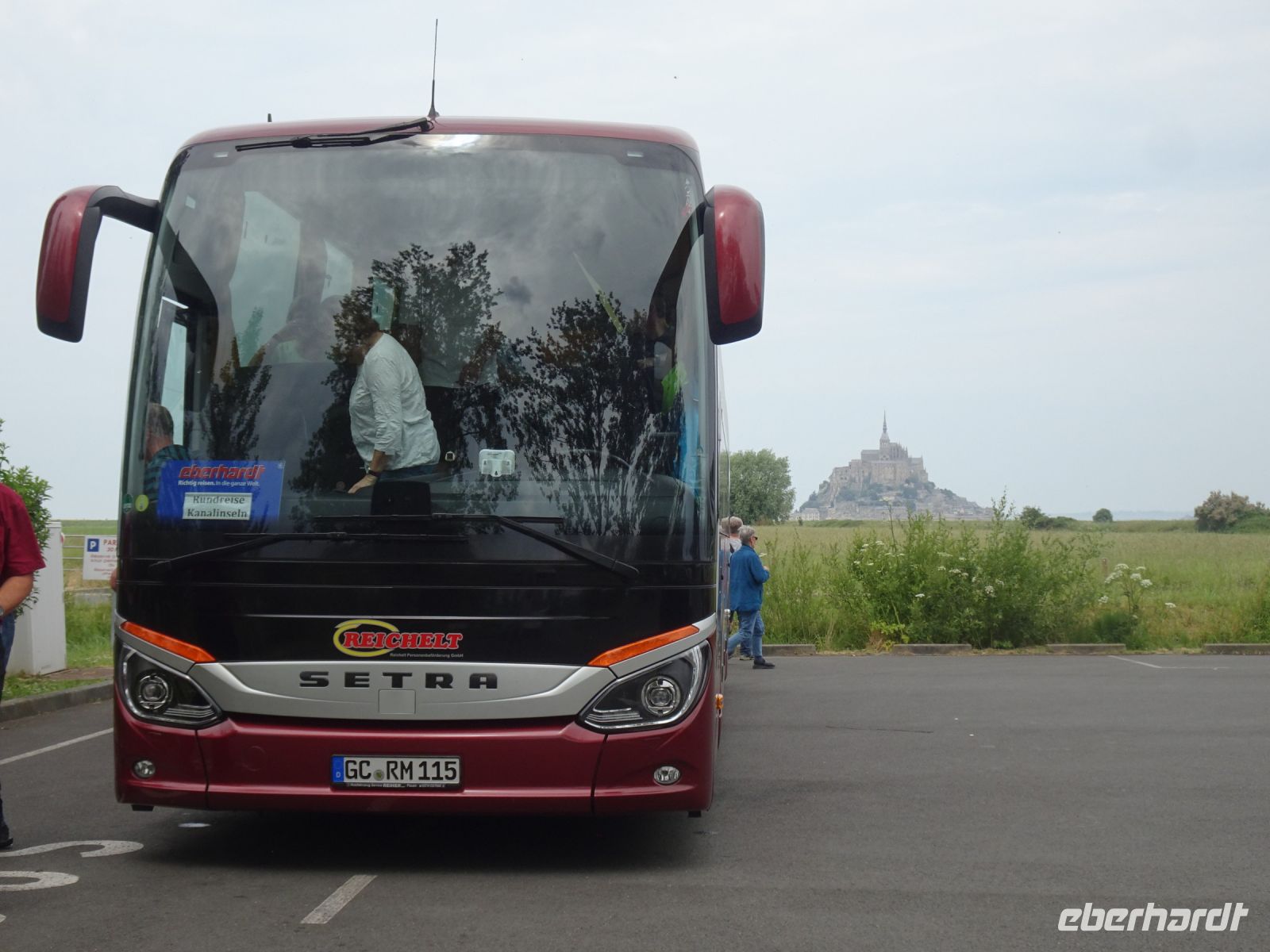 Bereits frühzeitig ging es auf einer bis auf den letzten Platz gefüllten Schnellfähre zurück nach St. Malo. Am Terminal erwartete uns bereits unser Busfahrer Thomas, der die vergangenen Tage in St. Malo verbracht hatte. Nachdem wir alles wieder gut verstaut hatten, ging es nun mit dem Bus zurück in Richtung Heimat. Ein Fotostopp in der Nähe und mit Blick auf den Mont St. Michel brachte uns einen Abschied von der Kanalküste. Weiter ging es zu unserem heutigen Hotel Campanile Nogent-sur-Marne im Nordosten von Paris. Es war Freitagnachmittag und durch Baustellen und begleitet von unfallbedingten Staus hatten wir mit dem hohen Verkehrsaufkommen einige Probleme. Unser Busfahrer Thomas musste sich voll konzentrieren. Mit leichter Verspätung erreichten wir unser Hotel. Wunderbar an der Marne gelegen, aber das konnten wir nicht mehr am späten Abend ausreichend genießen. Dafür konnten wir noch rechtzeitig am interessanten Abendbuffet platznehmen. Allerdings hatte die Bar geschlossen, weshalb es nur Tafelwasser als Getränk gab. Nach Entscheidung unseres Reiseleiters Hartwig gab es in Abstimmung mit Busfahrer Thomas aus dem am Hotel parkenden Bus für jeden Reisegast ein Freigetränk. So konnten wir auch diesen Tag gut abschließen.