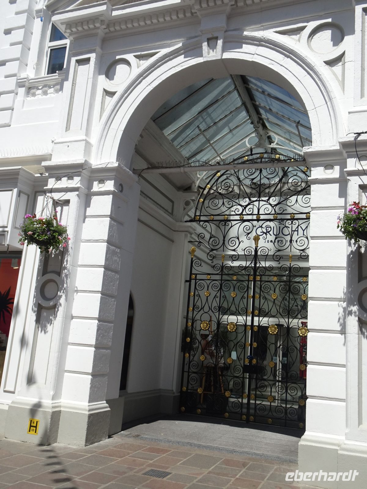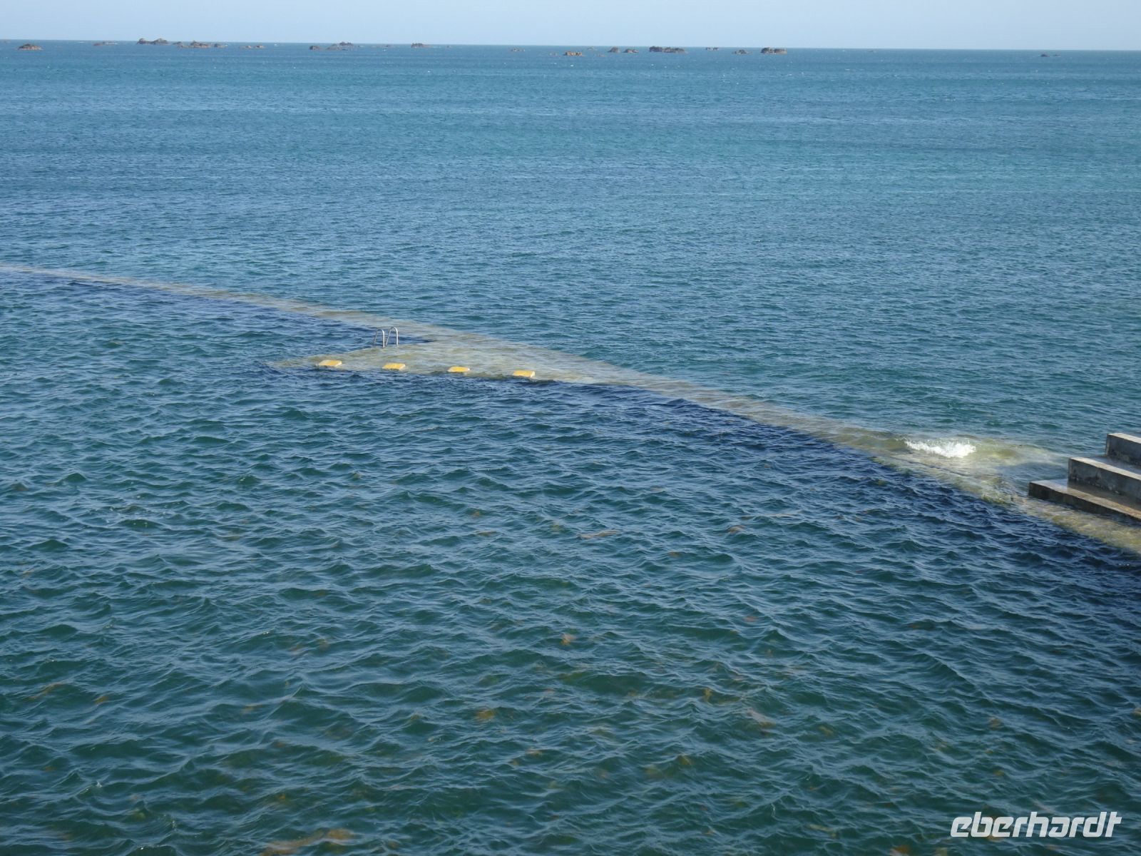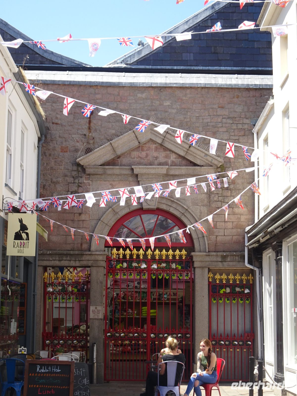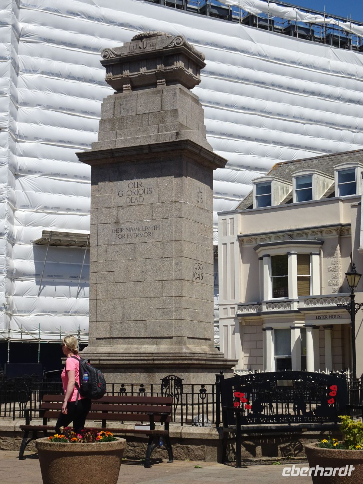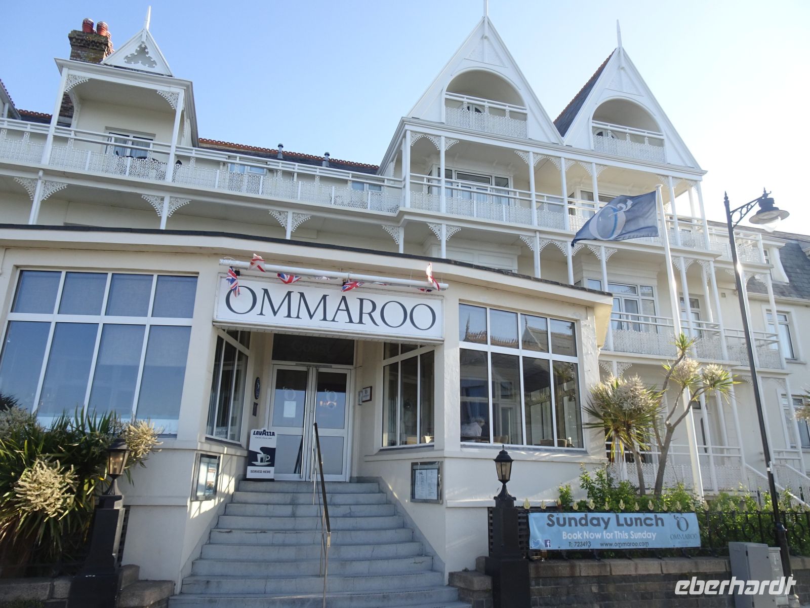 Am nächsten Tag, Sonntag dem 4 Juni, war ursprünglich ein fakultativer Ausflug zur Insel Sark vorgesehen. Leider musste dieser Ausflug wegen schlechter Wetter- und Windverhältnisse im Hafen der Insel Sark von der Reederei abgesagt werden. Es gab heftigen Nordostwind, so dass der Fährbetrieb nur im Notbetrieb und damit nicht für Touristen aufrechterhalten werden konnte. Die Gäste, die den Ausflug zur Insel Sark gebucht hatten, waren darüber sehr traurig, denn sie hatten sich sehr auf einen Ausflug auf diese urtümliche Insel gefreut. So musste ein Alternativprogramm entworfen werden: für alle Reisegäste wurde deshalb ein Besuch des Botanischen Garten Samares Manor angeboten, der nur 1 ½ km von unserem Hotel entfernt war. Zu Fuß oder mit dem Bus erreichten wir den Botanischen Garten. Nach einer kurzen Information zur Geschichte und zu den Sehenswürdigkeiten des Gartens durch unseren Reiseleiter Hartwig erkundeten wir den Garten. Ein typisches Herrenhaus, der für die lokalen Vögte (oder Seigneurs) wichtige Taubenturm aus dem 12. Jahrhundert und vielfältige Gartenbereiche waren interessante Details. Bestens gepflegt der Kräutergarten. Die umfassenden Beete mit Currypflanzen dufteten besonders stark. Besonders beeindruckt waren wir von den gewaltigen Blütenständen des Natternkopfes. Aber auch ein Japanischer Garten, ein Nutzgarten mit einer Arche, die durch Apfelbäume gebildet wurde, und natürlich umfangreich blühende Rosenbeete beeindruckten uns. Nach einem umfangreichen Rundgang Zeit, um ein Eis zu essen oder eine Tasse Kaffee in dem im Garten befindlichen Restaurant zu genießen. Anschließend ging es zu Fuß oder mit dem Bus zurück in die Innenstadt. Da Sonntag war, konnten wir nur einige Sehenswürdigkeiten, wie die Kingstreet, den Paradeplatz, den zentralen Freiheitsplatz und natürlich die Strandpromenade besuchen. Danach war ausreichend Zeit für gastronomische Erlebnisse oder Erkundungen auf eigene Faust. Das Wetter spielte sehr gut mit. Eine ständige leichte Brise und viel Sonnenschein sind typisch für die Kanalinseln. Am Abend trafen wir uns zum Abendessen wieder in unserem Hotel Ommaroo. Einige Reisegäste nutzen vor dem Abendessen noch das kleine Schwimmbad am Hotel, andere nutzten das naheliegende Strandbad, das bereits im Jahre 1926 als eines der ersten Meeresschwimmbäder errichtet wurde.