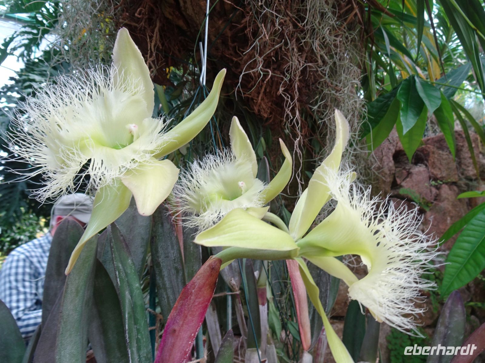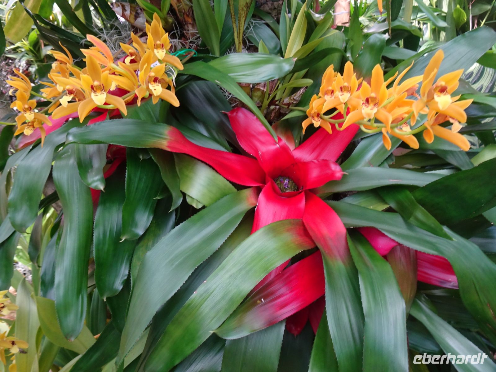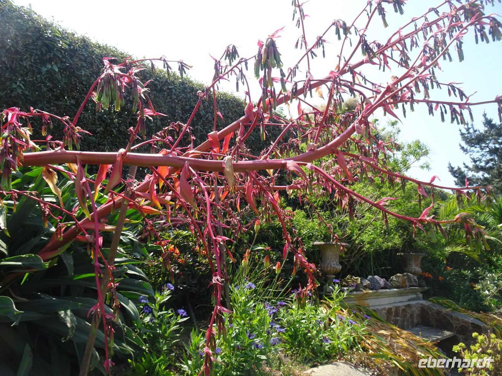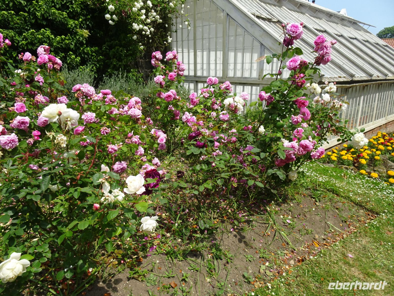 Der heutigeUnser nächster Tag, Mittwoch der 7. Juni, stand unter dem Motto „Gartentour“. Nachdem der Reiseleiter einigen Geburtstagsgästen herzlich gratulierte und ihnen als kleines Geschenk je ein Glas „Jersey Black Butter“ - eine aus Äpfeln, Cider und Gewürzen zubereitete lokale Spezialität – übergeben hatte, starteten wir mit zwei Bussen zu unserer Gartentour. Die erste Station war der Garten von Frau Binney. In den letzten 50 Jahren wurde aus einem unscheinbaren Tal ein prächtiger Landschaftsgarten mit vielen Kamelien und seltenen Bäumen und Sträuchern. Dazu der Nutzgarten mit Gewächshaus und – als besonderes Kleinod – der prächtige Garten am ursprünglichen Bauernhof. Hier finden auf Einladung regelmäßig Benefizkonzerte durch Frau Binney statt. Danach ging es weiter zum Garten des Herrn Miles. Dieser ist ein echtes Prachtstück englischer Gartenarchitektur. Eine Villa aus der ruhmreichen Vergangenheit der Insel Jersey repräsentierte sich im besten Zustand. Klein aber trotzdem auffällig verwies eine Tafel auf die Unterbringung von verletzten Soldaten im Zweiten Weltkrieg. Dazu ist festzustellen, dass in den Jahren 1941 bis 1945 die deutsche Besatzung auf der Insel Jersey und auch die Nachbarinseln sich stationiert hatte. 500 000 Kubikmeter Beton und Stahl in Verteidigungsbauten sind noch heute mahnendes Zeugnis der Besatzung. Glücklicherweise gab es keine Kriegshandlungen. Trotzdem sind diese Zeugen des Zweiten Weltkrieges heute unerschütterliche und nicht zu beseitigende unübersehbare Zeugnisse der Besatzung dieser Inseln im Zweiten Weltkrieg. Der Garten von Herrn Miles war das glatte Gegenteil zum Garten der Frau Binney. Mit bestem englischem Rasen und gepflegt durch mehrere Gärtner repräsentierte er sich sehr selbstbewusst. Wobei man den Inhaber Herrn Miles anmerkte, dass sein ganzer Stolz seltene Pflanzen und ein guter Zustand des Gartens war. Abschließend fütterte Herr Miles im Beisein unsere Gäste seine Koi-Karpfen. Wir machten zu Mittag Station in einem im Pub „The Portlet Inn“. Leckere regionale Küche mit wunderbarer Rosen- und Mittagsblumenpracht um den Pub mit Blick zur Küste – es war wie im Paradies. Unser anschließender Besuch in der Eric Young Orchideen Foundation war der nächste Höhepunkt unserer Gartenreise. Sehen Sie selbst in der Fotogalerie die Prachtexemplare an seltenen Orchideen und die wunderbare Gestaltung in den Glashäusern. Am frühen Nachmittag ging es weiter zum versteckt liegenden Schloss Chateau La Chaire. Umgeben wiederum von prächtigen Natternköpfen mit ihren tollen Blütenständen wartete die nächste Überraschung auf uns: als bei Eberhardt-Reisenden bereits erwartetes WOW ging es zum Cream Tea in das Schloss. Ausgezeichneter Tee mit Milch, dazu frisch zubereitetet Scones mit Marmelade und der kalorienhaltigen clotted cream – einer Art Butter - ließen sich alle Reisegäste sehr gut schmecken. Ein sehr interessanter Tag mit wunderbaren Gärten ging zu Ende. Es ging zurück zu unserem Hotel, wo uns auch heute wieder genügend Zeit für ein Bad blieb. Anschließend genossen wir ein wunderbares Abendessen.