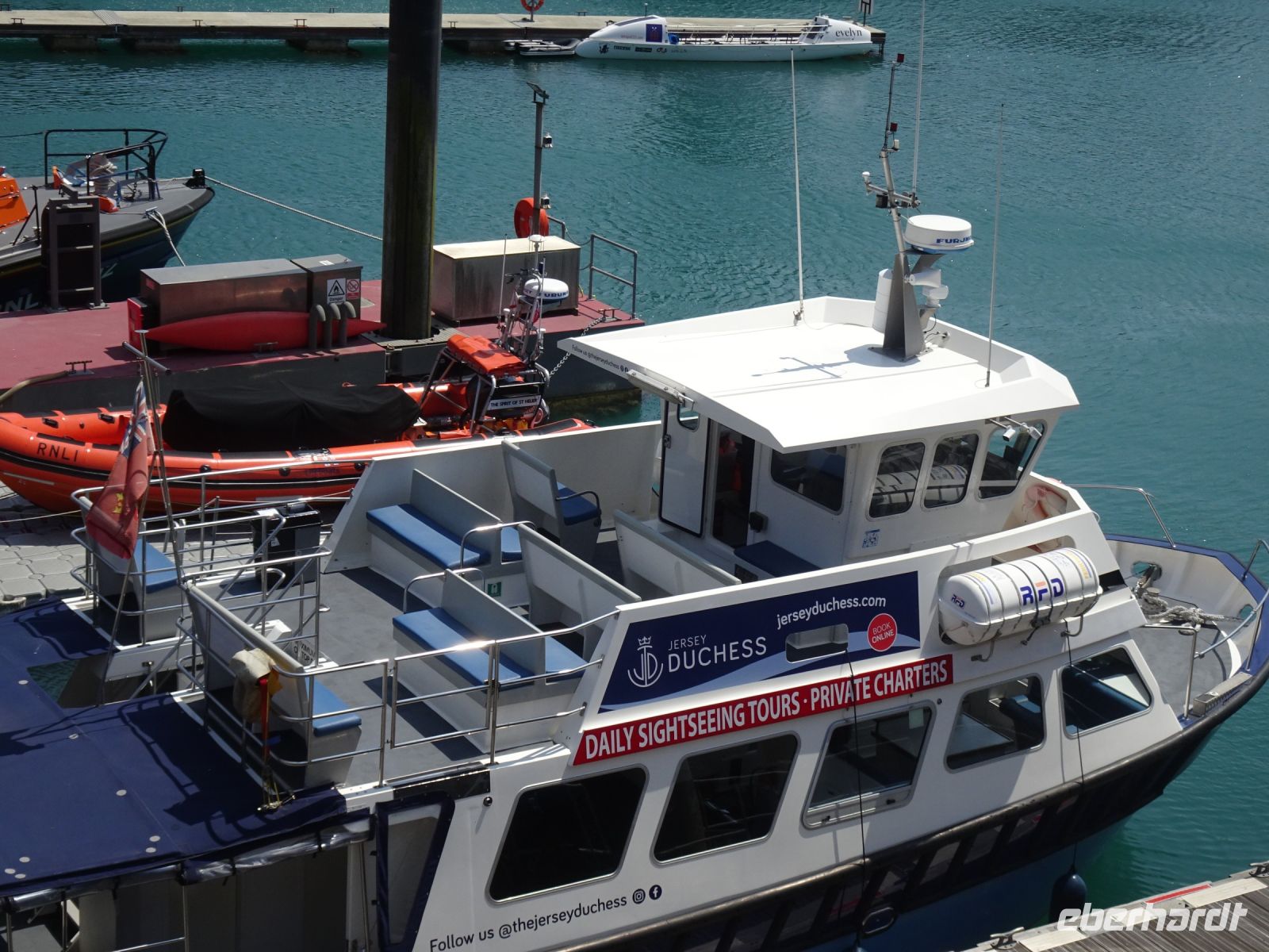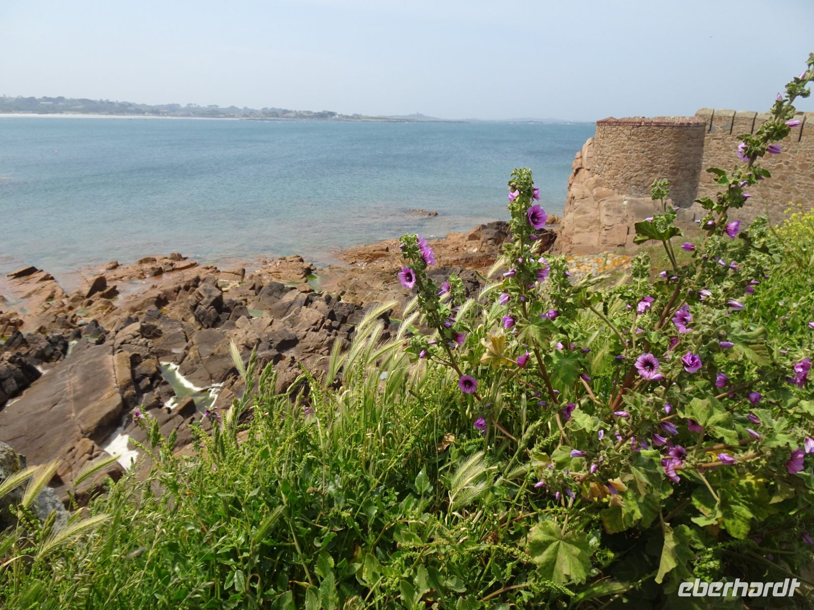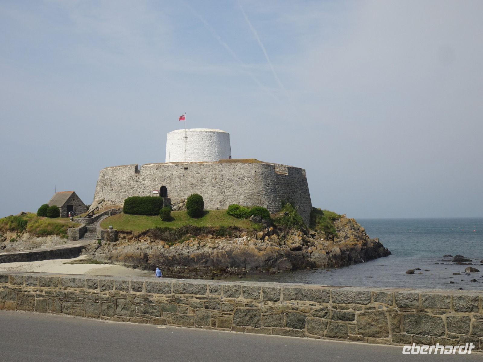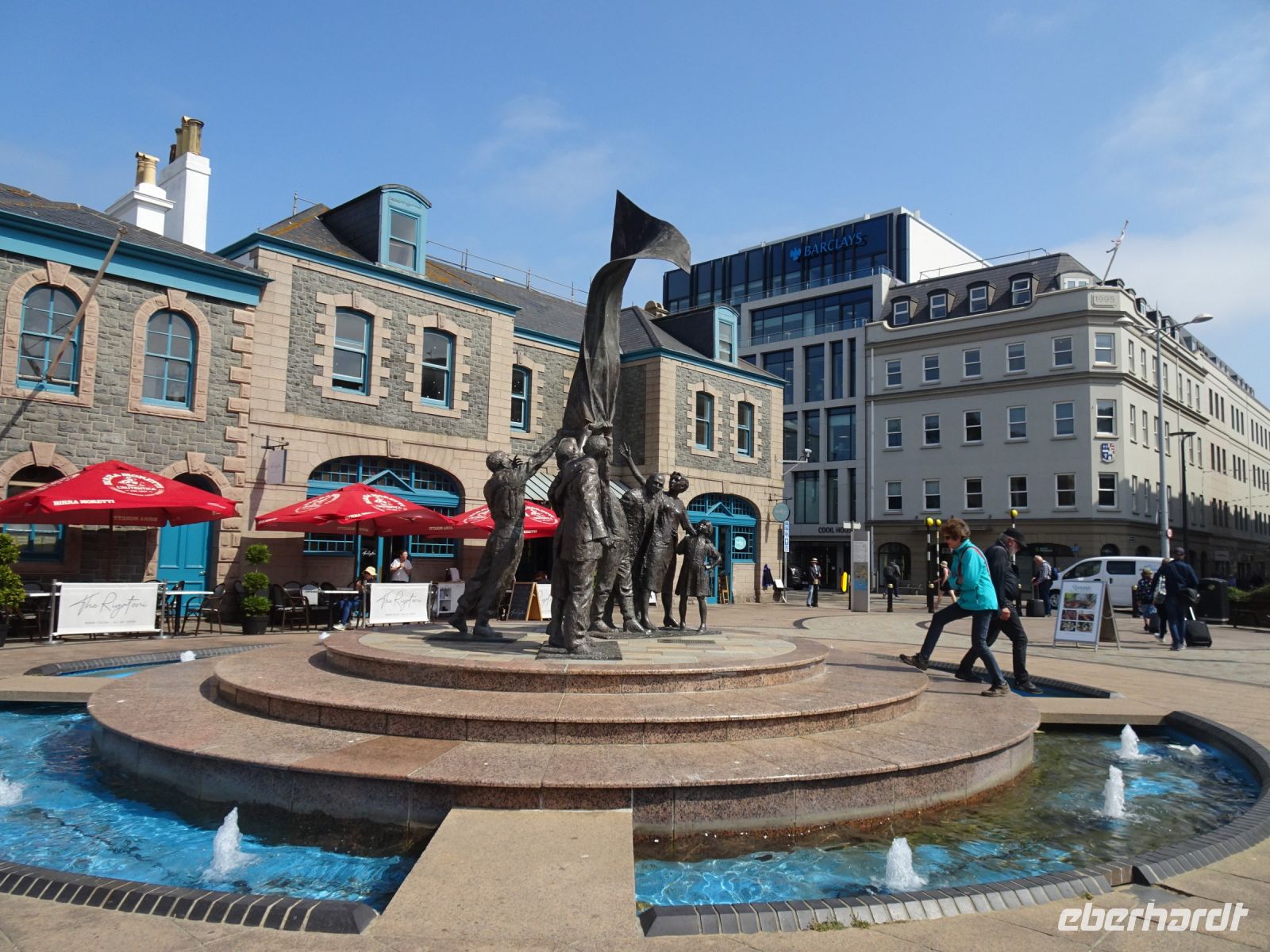 Der nächste Tag, Dienstag der 6 Juni, war freie Zeit. Unser Reiseleiter Hartwig unterbreitete uns trotzdem mit Unterstützung der Produktmanagerin Frau Schkade von Eberhardt Travel zwei sehr schöne Angebote für Aktivitäten in St. Helier: ein Ausflug mit dem als Paddledog bezeichneten Amphibienfahrzeug zum Elizabeth Castle und am Nachmittag einen 2stündigen Schiffsausflug entlang der Südküste. Der Mehrzahl der Reisegäste sagten diese Angebote zu. So ging es nach dem Frühstück zuerst einmal weiter mit unserem Stadtrundgang. Heute hatten der Central Market und der Fish Market geöffnet – welche Pracht! Die vielfältigen Angebote waren für alle interessant: von Austern bis zu Schweineohren waren alle Spezialitäten der Insel im Angebot. Selbstverständlich auch leckere Süßigkeiten beim Konditor und natürliche prächtige Obst- und Blumenangebote. Bei der anschließenden Fahrt mit dem Paddledog ging es durchs Wasser, deshalb mussten wir zuerst die Einweisung in die Nutzung der Schwimmwesten durch den historischen „Festungskommandanten“ mitmachen – sicher ist sicher. Auf Elizabeth Castle wurden wir von einer freundlichen Dame empfangen und über die Struktur der Festung und die Sehenswürdigkeiten informiert. Und so hatte jeder sein eigenes Programm: einige Reisegäste ließen sich vom Festungsarzt in die ehemaligen Medizinkünste einweisen, andere folgten den Ausführungen auf dem Paradeplatz. Wieder andere Reisegäste bestiegen die Türme und genossen die Aussicht… Es war für alle etwas dabei. Zurückgekehrt an Land ging es am frühen Nachmittag zu unserer Schiffstour. Prächtiges Wetter, niedriger Wasserstand – wunderbare Sichten und Bilder haben sich in unsern Speicherkarten und in unseren Erinnerungen festgesetzt. Dann am Leuchtturm Corbiére war der Wendepunkt. Mit ruhiger See und sehr guter Fahrt kamen wir wohlbehalten im Hafen von St. Helier an. Es war wiederum ein vielgestaltiger wunderbarer Tag.
