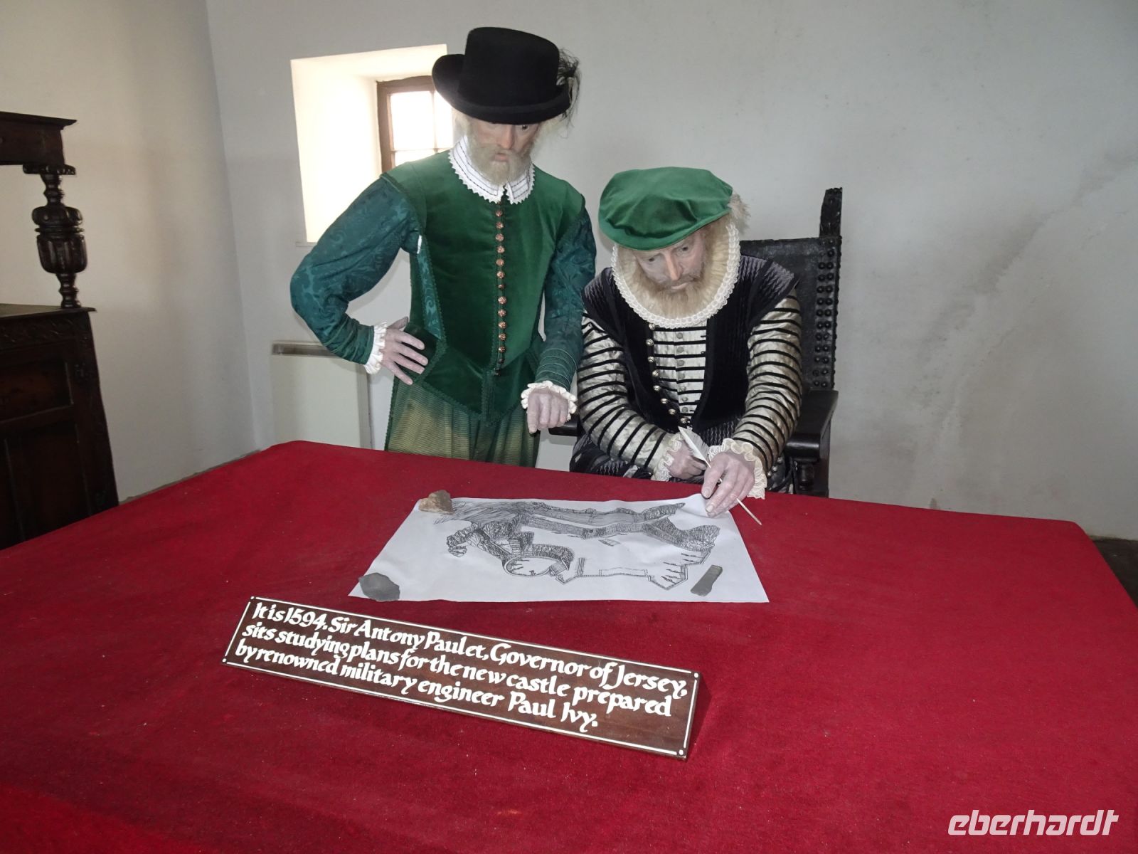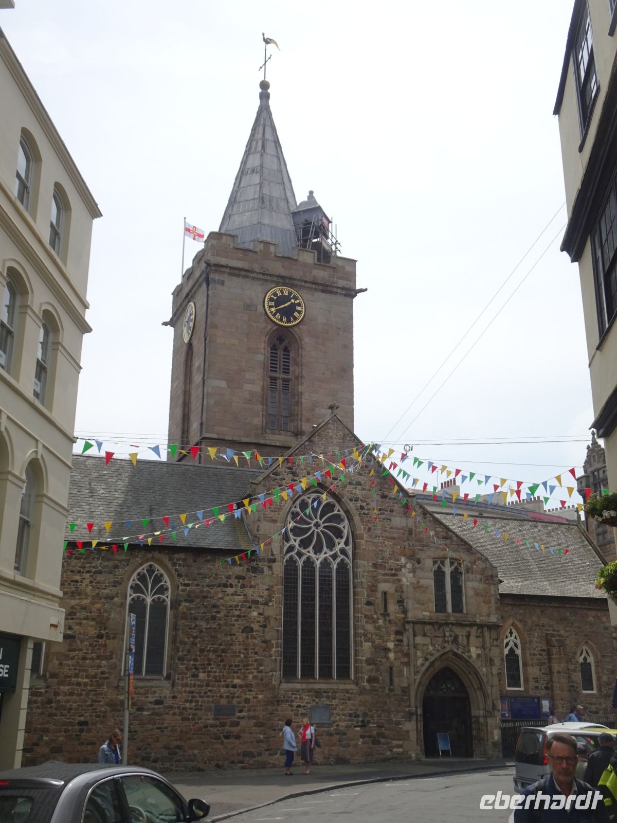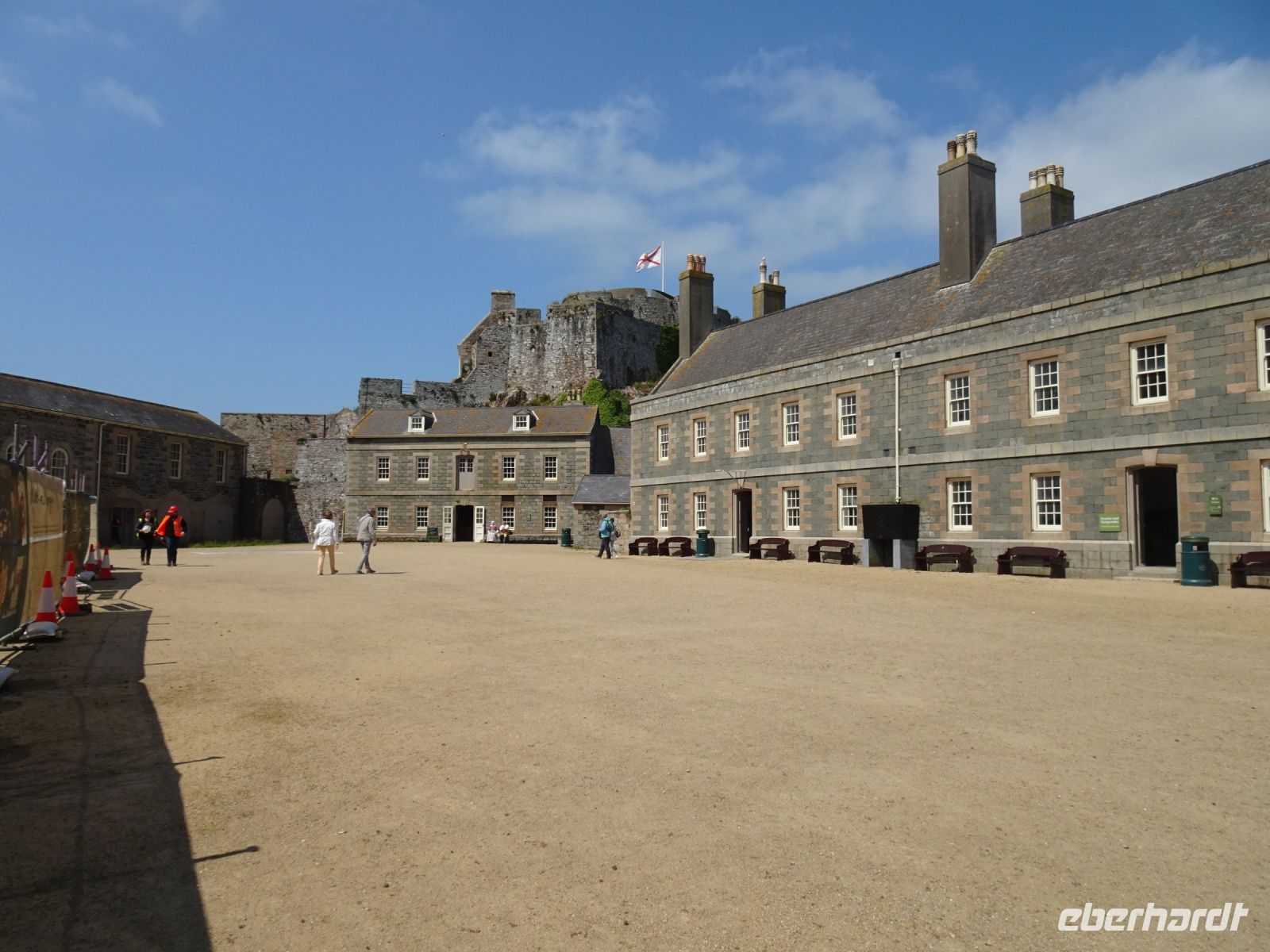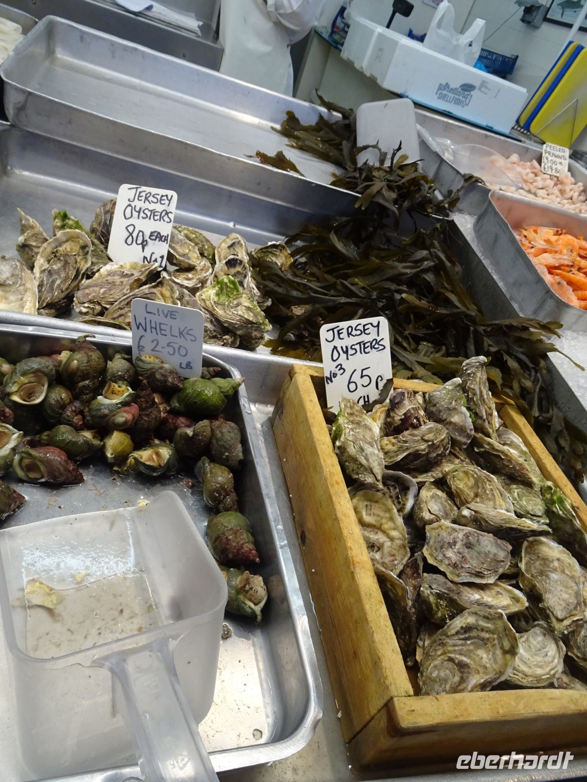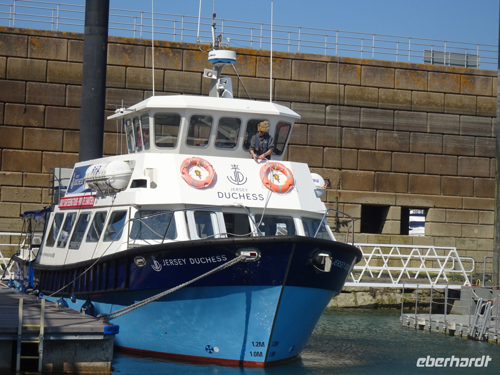 Der nächste Tag, Dienstag der 6 Juni, war freie Zeit. Unser Reiseleiter Hartwig unterbreitete uns trotzdem mit Unterstützung der Produktmanagerin Frau Schkade von Eberhardt Travel zwei sehr schöne Angebote für Aktivitäten in St. Helier: ein Ausflug mit dem als Paddledog bezeichneten Amphibienfahrzeug zum Elizabeth Castle und am Nachmittag einen 2stündigen Schiffsausflug entlang der Südküste. Der Mehrzahl der Reisegäste sagten diese Angebote zu. So ging es nach dem Frühstück zuerst einmal weiter mit unserem Stadtrundgang. Heute hatten der Central Market und der Fish Market geöffnet – welche Pracht! Die vielfältigen Angebote waren für alle interessant: von Austern bis zu Schweineohren waren alle Spezialitäten der Insel im Angebot. Selbstverständlich auch leckere Süßigkeiten beim Konditor und natürliche prächtige Obst- und Blumenangebote. Bei der anschließenden Fahrt mit dem Paddledog ging es durchs Wasser, deshalb mussten wir zuerst die Einweisung in die Nutzung der Schwimmwesten durch den historischen „Festungskommandanten“ mitmachen – sicher ist sicher. Auf Elizabeth Castle wurden wir von einer freundlichen Dame empfangen und über die Struktur der Festung und die Sehenswürdigkeiten informiert. Und so hatte jeder sein eigenes Programm: einige Reisegäste ließen sich vom Festungsarzt in die ehemaligen Medizinkünste einweisen, andere folgten den Ausführungen auf dem Paradeplatz. Wieder andere Reisegäste bestiegen die Türme und genossen die Aussicht… Es war für alle etwas dabei. Zurückgekehrt an Land ging es am frühen Nachmittag zu unserer Schiffstour. Prächtiges Wetter, niedriger Wasserstand – wunderbare Sichten und Bilder haben sich in unsern Speicherkarten und in unseren Erinnerungen festgesetzt. Dann am Leuchtturm Corbiére war der Wendepunkt. Mit ruhiger See und sehr guter Fahrt kamen wir wohlbehalten im Hafen von St. Helier an. Es war wiederum ein vielgestaltiger wunderbarer Tag.