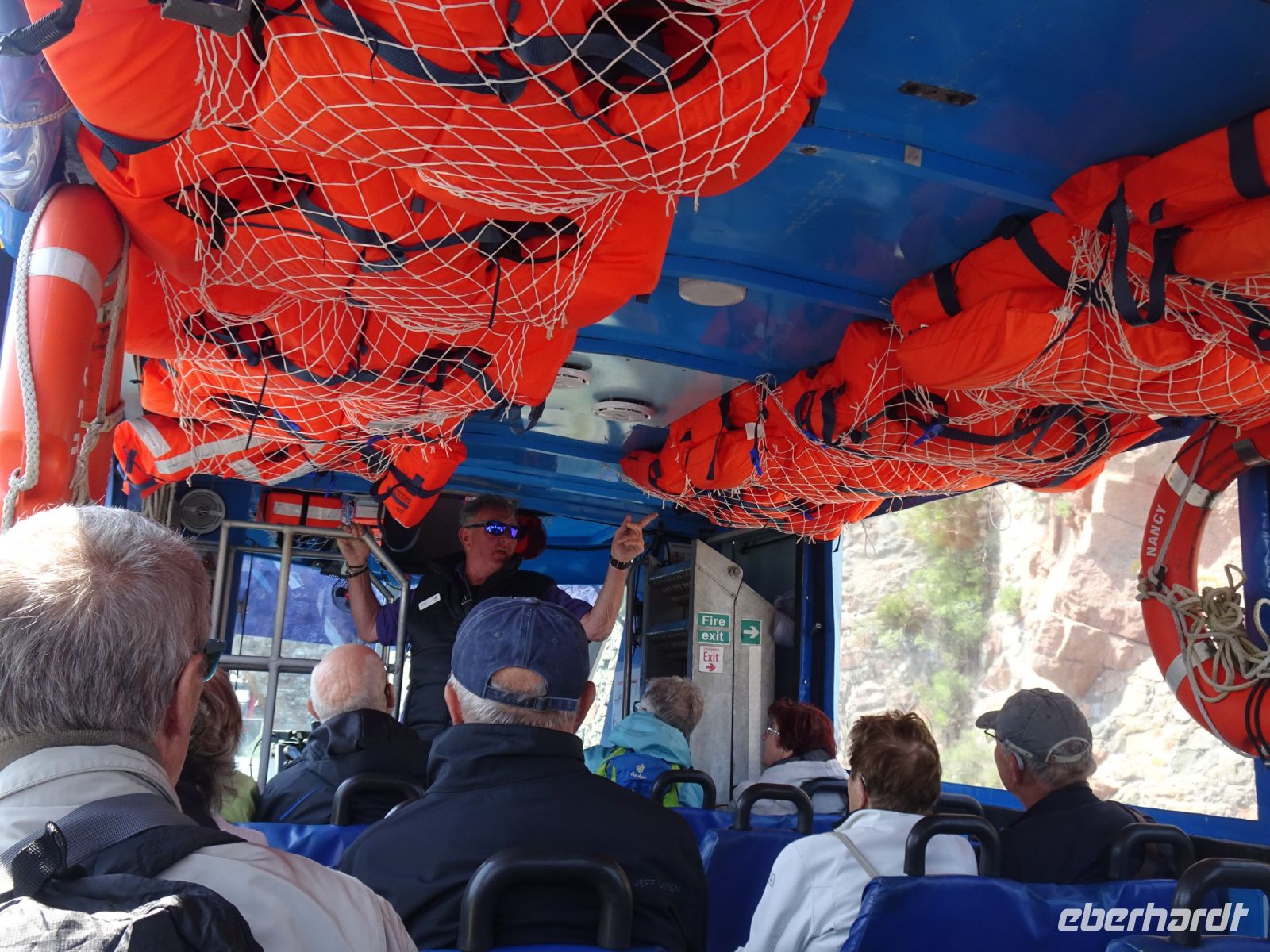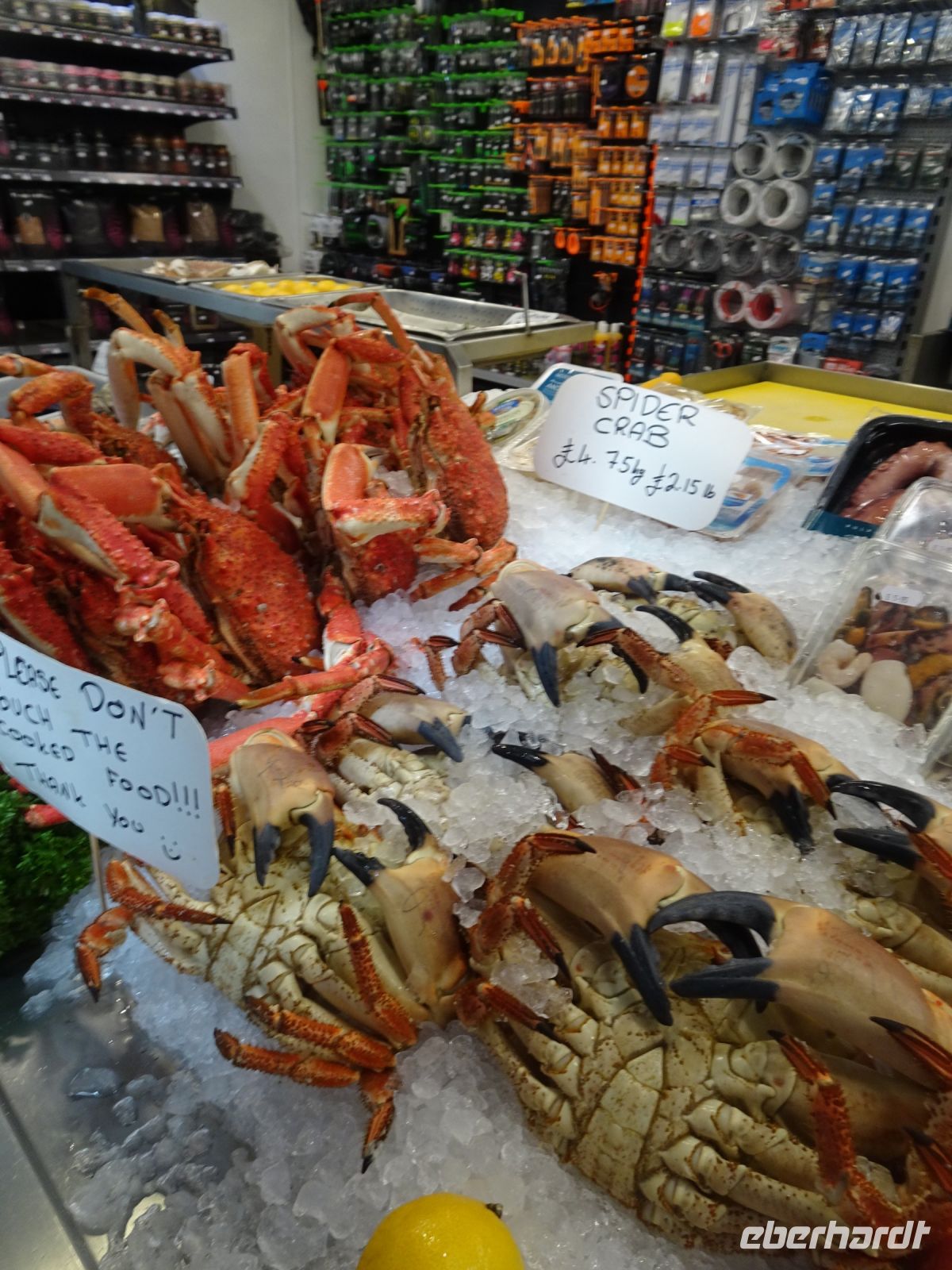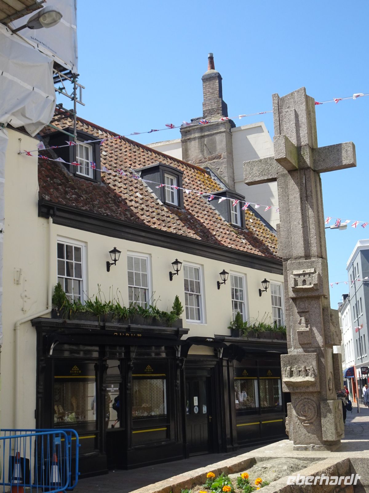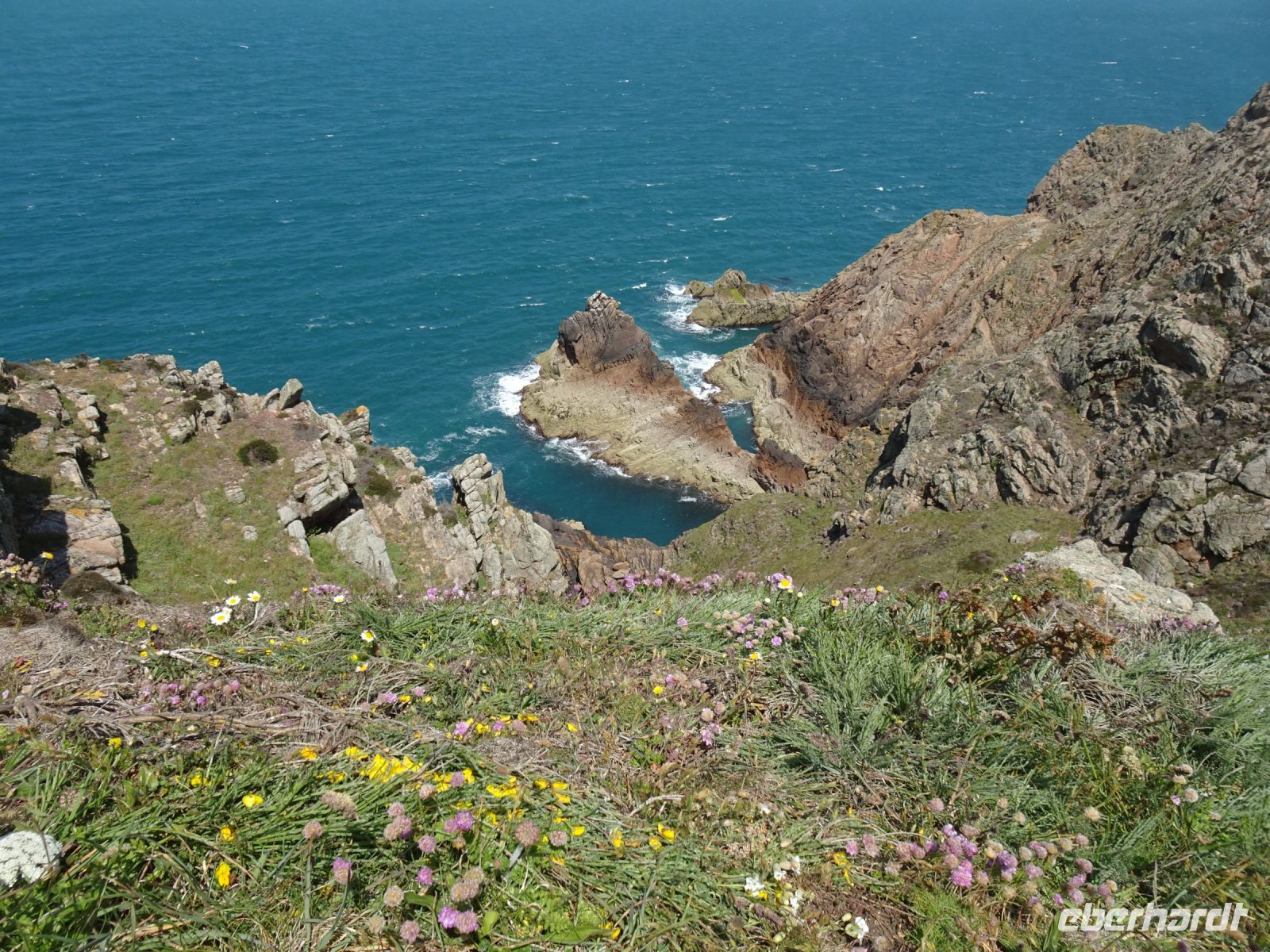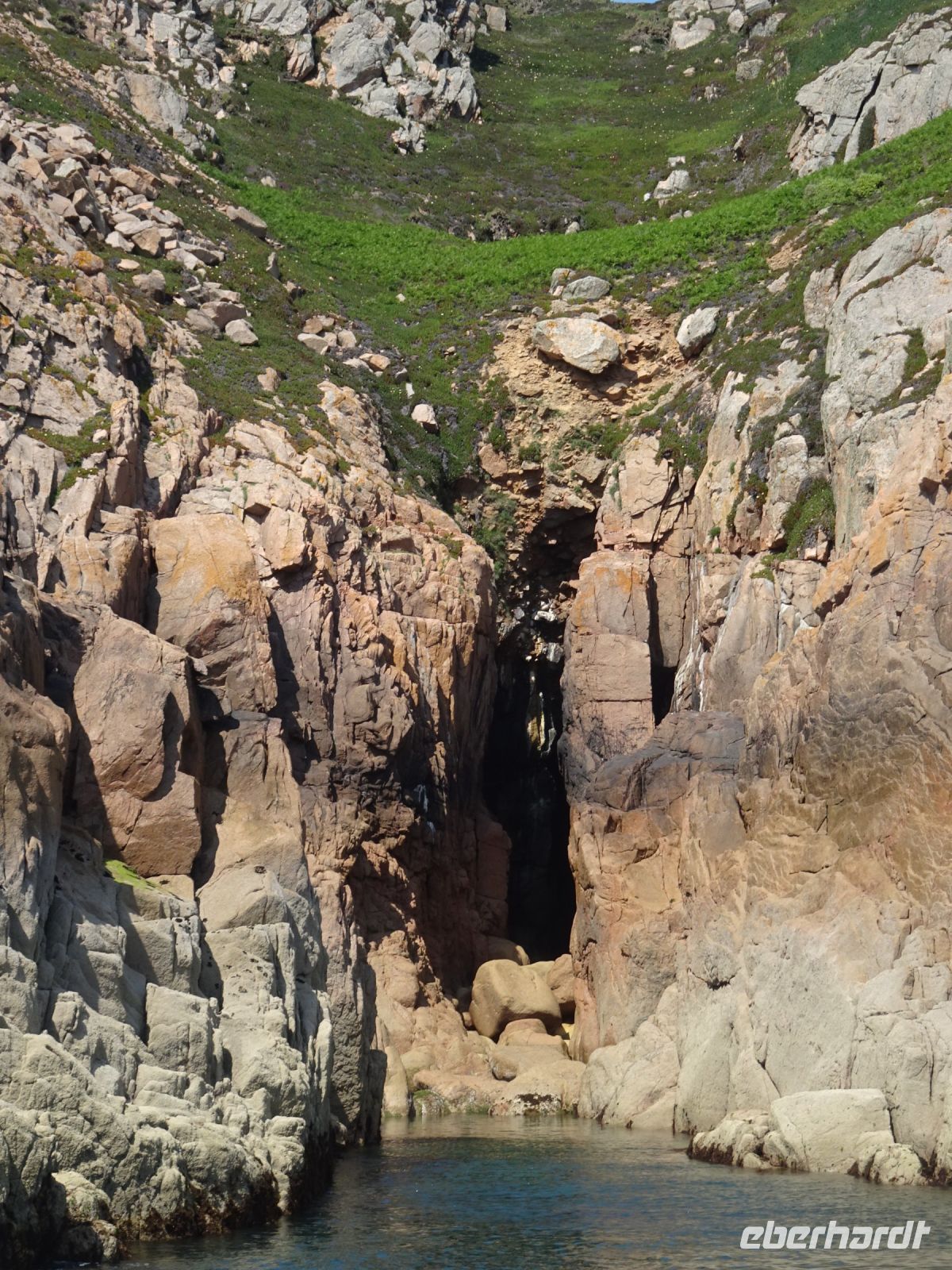 Der nächste Tag, Dienstag der 6 Juni, war freie Zeit. Unser Reiseleiter Hartwig unterbreitete uns trotzdem mit Unterstützung der Produktmanagerin Frau Schkade von Eberhardt Travel zwei sehr schöne Angebote für Aktivitäten in St. Helier: ein Ausflug mit dem als Paddledog bezeichneten Amphibienfahrzeug zum Elizabeth Castle und am Nachmittag einen 2stündigen Schiffsausflug entlang der Südküste. Der Mehrzahl der Reisegäste sagten diese Angebote zu. So ging es nach dem Frühstück zuerst einmal weiter mit unserem Stadtrundgang. Heute hatten der Central Market und der Fish Market geöffnet – welche Pracht! Die vielfältigen Angebote waren für alle interessant: von Austern bis zu Schweineohren waren alle Spezialitäten der Insel im Angebot. Selbstverständlich auch leckere Süßigkeiten beim Konditor und natürliche prächtige Obst- und Blumenangebote. Bei der anschließenden Fahrt mit dem Paddledog ging es durchs Wasser, deshalb mussten wir zuerst die Einweisung in die Nutzung der Schwimmwesten durch den historischen „Festungskommandanten“ mitmachen – sicher ist sicher. Auf Elizabeth Castle wurden wir von einer freundlichen Dame empfangen und über die Struktur der Festung und die Sehenswürdigkeiten informiert. Und so hatte jeder sein eigenes Programm: einige Reisegäste ließen sich vom Festungsarzt in die ehemaligen Medizinkünste einweisen, andere folgten den Ausführungen auf dem Paradeplatz. Wieder andere Reisegäste bestiegen die Türme und genossen die Aussicht… Es war für alle etwas dabei. Zurückgekehrt an Land ging es am frühen Nachmittag zu unserer Schiffstour. Prächtiges Wetter, niedriger Wasserstand – wunderbare Sichten und Bilder haben sich in unsern Speicherkarten und in unseren Erinnerungen festgesetzt. Dann am Leuchtturm Corbiére war der Wendepunkt. Mit ruhiger See und sehr guter Fahrt kamen wir wohlbehalten im Hafen von St. Helier an. Es war wiederum ein vielgestaltiger wunderbarer Tag.