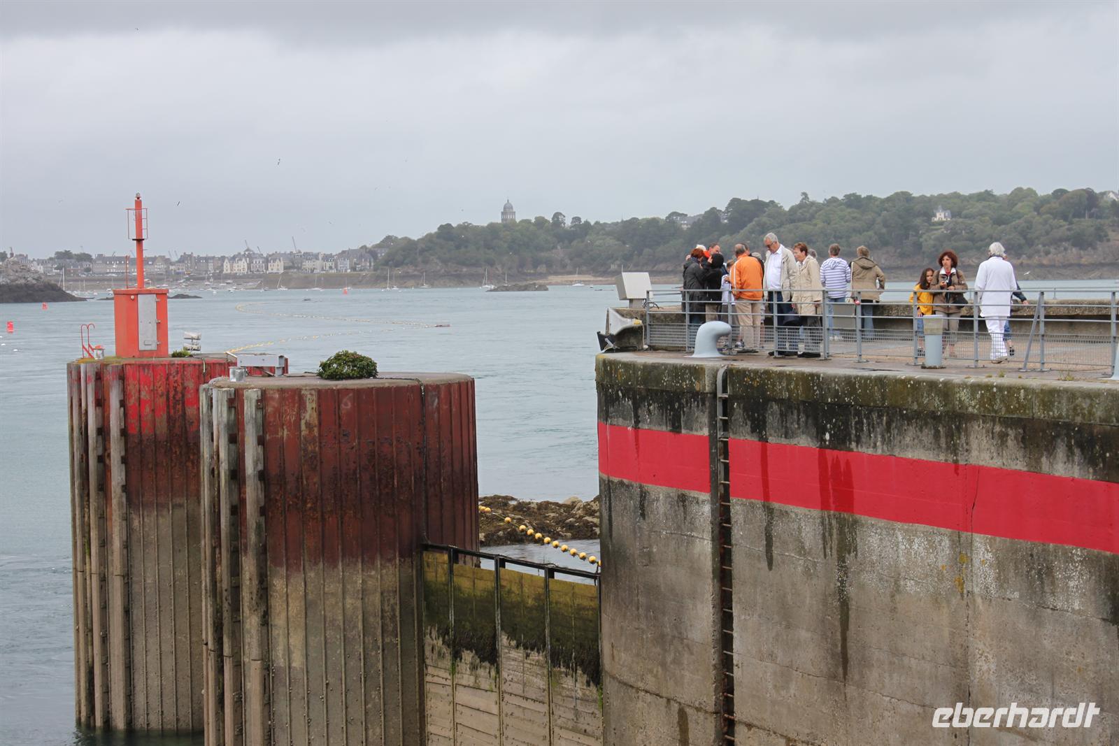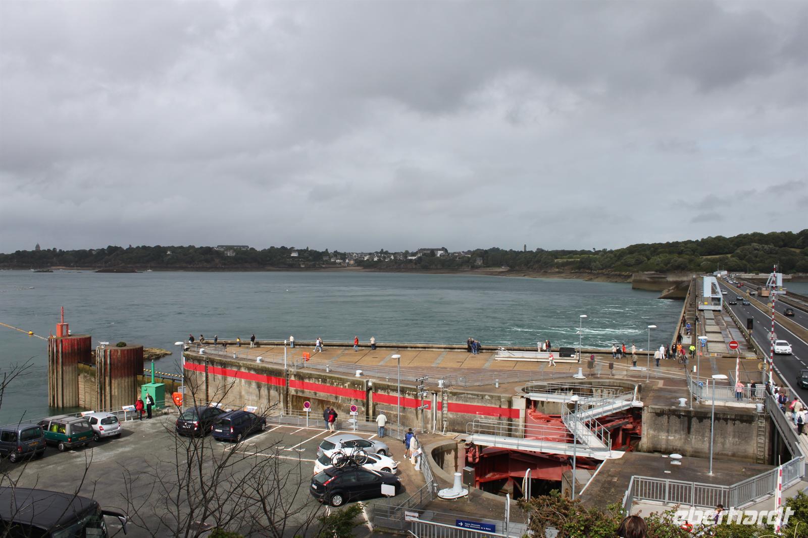 Da wir ja auf den Kanalinseln örtliche Reiseleiter hatten, beschränkte sich mein Reiseleiterpart (leider) nur auf den französischen Teil der An- und Abreise (und natürlich auf die Wanderung am letzten Tag auf den Inseln, welche uns vom Leuchtturm Corbière bis hinüber nach St. Helier führte!). Ich hoffe natürlich, dass Ihnen dieser Abschnitt der Reise zumindest Frankreich ein wenig näher gebracht hat. Die Strecke an sich, ist bei der Anreise nicht soooo spannend, jedoch hat unsere Fähre „glücklicherweise“ Verspätung gehabt: nur so konnten wir das Gezeitenkraftwerk der Rance noch besuchen und sehen, wie die Klappbrücke hochgeklappt ausschaut! Ein Dank an dieser Stelle an Matthias, unseren Busfahrer für die Flexibilität - ohne Zögern fuhr er uns zum Besichtigungspunkt und zurück.