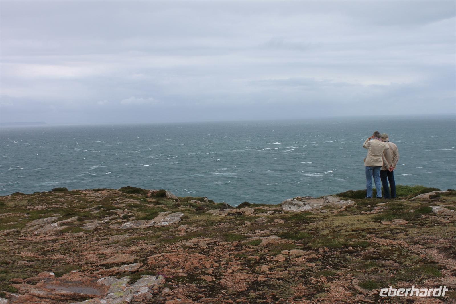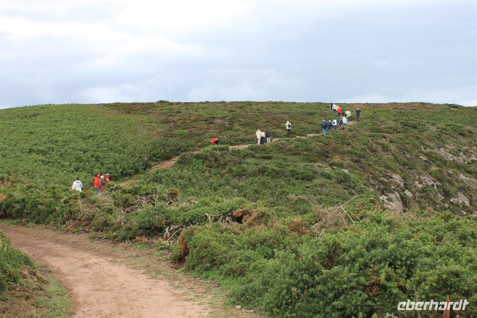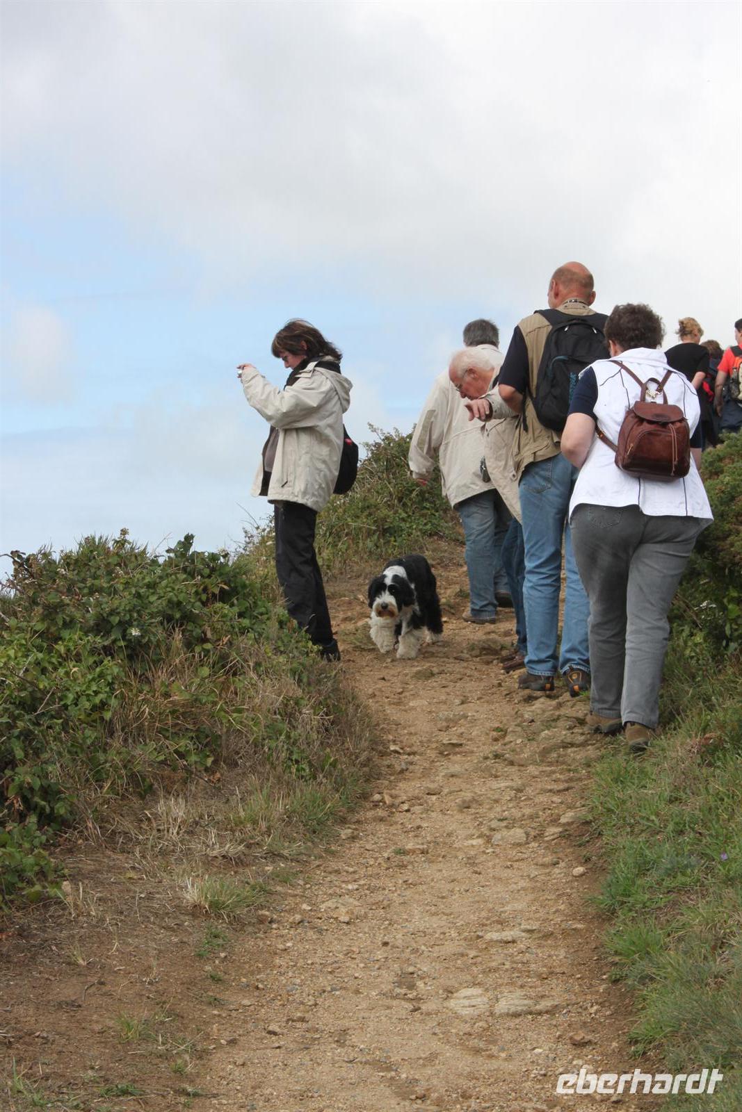 Natürlich gab es auch Höhepunkte an den Tagen zuvor. Das Wetter hat sich da leider aber nicht positiv hervorgetan, denn es regnete sehr ausgiebig - vor allem auf Sark. An dieser Stelle ein großes Lob an alle meine Reisegäste, dass Sie trotz der Witterung so eisern durchgehalten haben. Die standhaftesten unter Ihnen (13 Gäste an der Zahl) sind sogar von der Seigneurie noch bis zum „Window in the rock“ gewandert - haben gegen Schlammpfützen und strömenden Regen angekämpft. Großen Dank an die Wetterfee, dass der unsagbar dicke Nebel erst etwa eine Stunde später aufzog, sonst hätten wir diesen Blick über die Bucht nicht genießen können - dieser hat die Mühen schließlich belohnt. Dennoch war auch der Tag schön, zumindest unvergesslich. Für mich vor allem wegen des Wellenganges auf dem Hinweg per Fähre! Ich bin sicher, ich hatte eine gesunde Blässe angenommen.