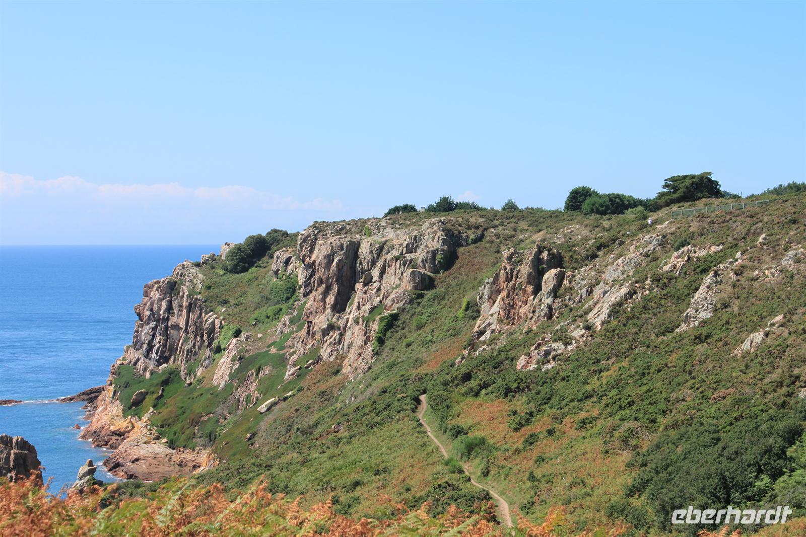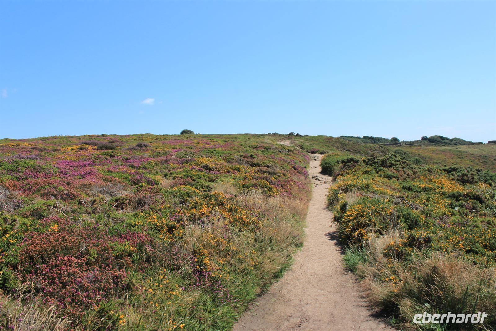 Auf Jersey entdeckten wir bei unserem ersten großen Ausflug vor allem die Küsten der Insel. Wobei jede Himmelsrichtung wahrhaftig seinen eigenen Reiz hatte. Durch regelmäßige Stopps hatten war die Möglichkeit stets ein Stück weit zu laufen und die Natur zu erleben. Im Norden die zerklüftete Felslandschaft, im Westen die tolle Heide und im Süden die langen Strände.