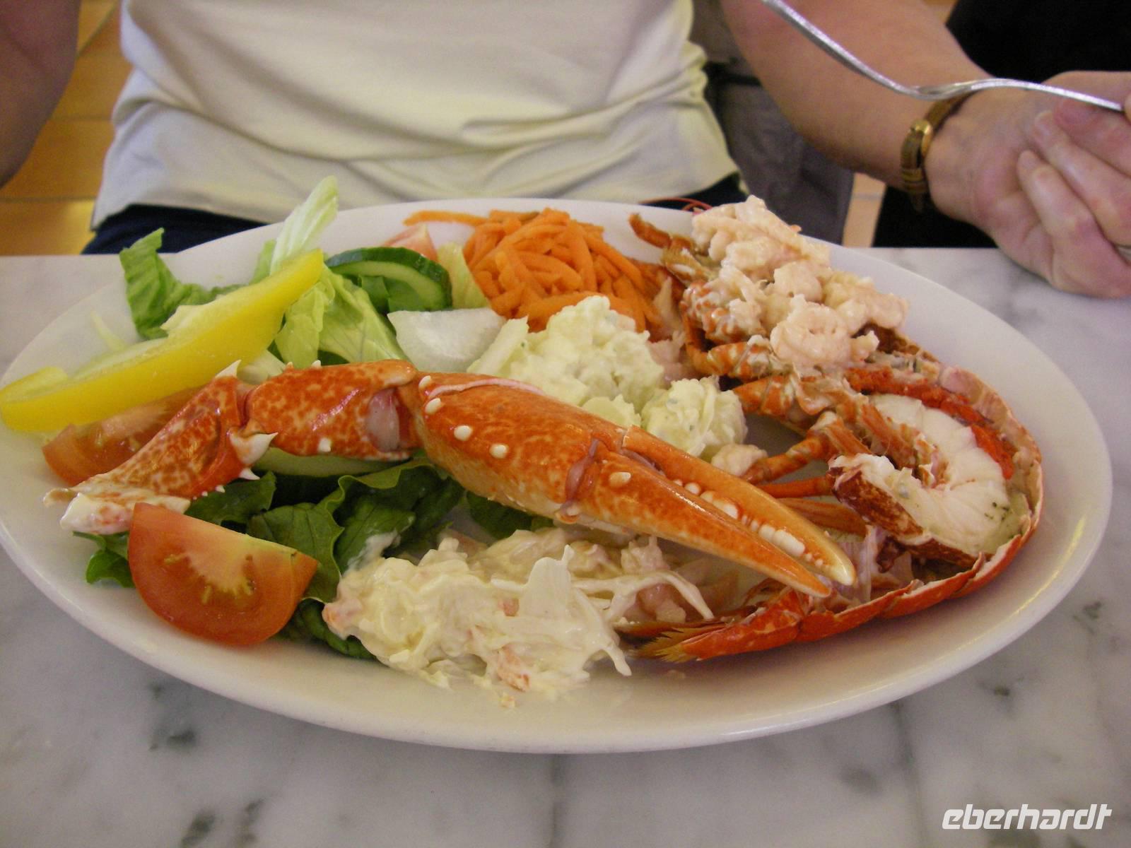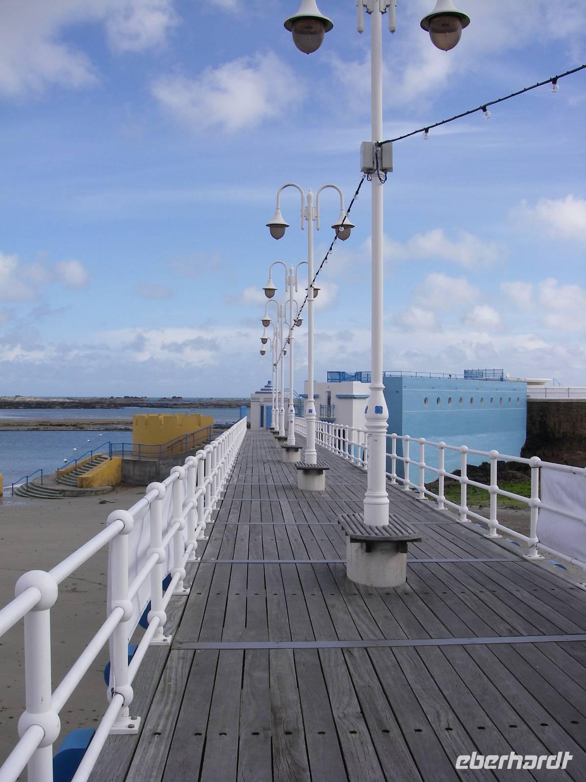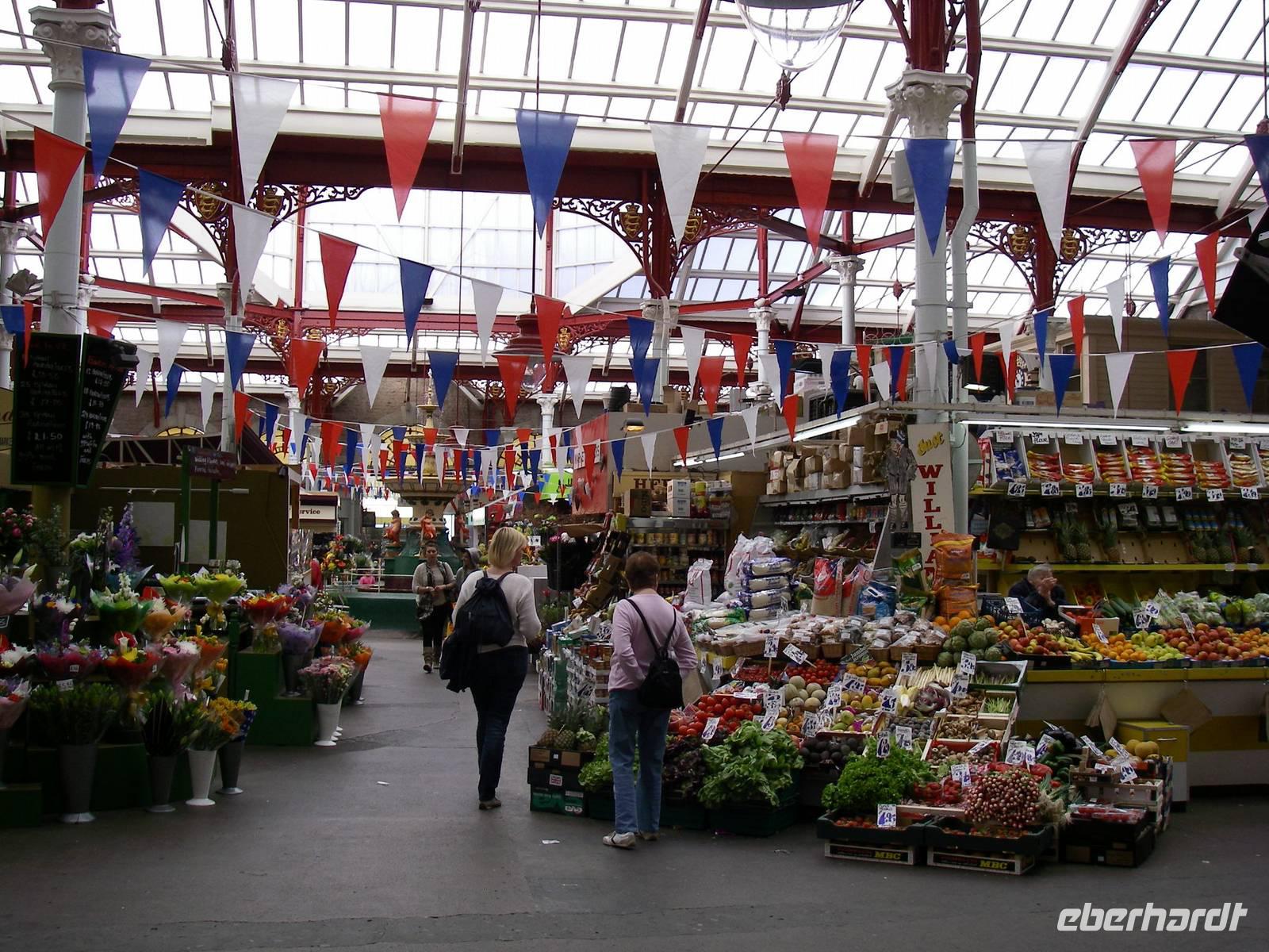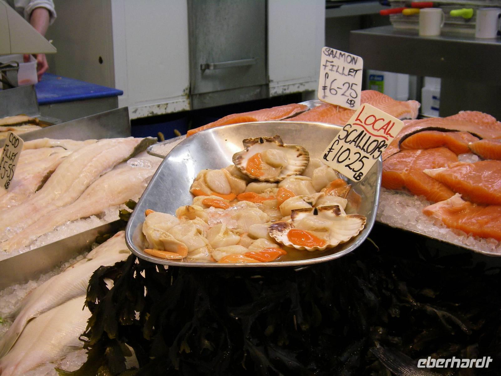 Auf unserer Rundfahrt umfahren wir die gesamte Insel entgegen dem Uhrzeigersinn. So fahren wir zunächst entlang der Ostküste bis nach Gorey, wo wir uns kurz die älteste Burg von Jersey, das Mont Orgueil Castle, und den Hafen anschauen. Weiter geht es dann entlang der St. Catherine's Bay und der Rozel Bay bis zur Bouley Bay. Bei einem Stopp in dieser Bucht erinnern wir uns an den gestrigen Tag und können leider wieder nicht auf Jakobsmuscheln-Jagd gehen. Vorbei an der Bonne Nuit Bay und durch die Parishes St. John und St. Mary erreichen wir Greve de Lecq. Hier machen wir heute unsere Mittagspause im Rosmany Restaurant. Dieses bietet einen günstigen und köstlichen Hummersalat, der von allen Gästen probiert wird. Wieder im Bus fahren längs der Plémont Bay bis zur Ruine des Grosnez Castles, wo im Großen und Ganzen nur noch die Toreinfahrt mit den umgebenen Mauern erhalten ist. An diesem nordwestlichen Punkt von Jersey haben wir einen guten Blick auf die Nachbarinseln. Entlang der Westküste gelangen wir zum Corbière Leuchtturm, der im Jahre 1873 gebaut wurde. Es ist gerade Ebbe, so dass die Gelegenheit bestünde rüber zum Leuchtturm zu laufen. Da dieser aber nicht für die Öffentlichkeit zugänglich ist, entschließen sich die Gäste dagegen und genießen den tollen Anblick von der Ferne. Hier befindet sich auch ein Denkmal, welches an ein Unglück von 1995 erinnert. Bei diesem Vorfall kam eine Fähre von Jersey nach Sark in Seenot. Jedoch konnten alle Passagiere an Bord gerettet werden. Nach diesem Highlight unserer Rundfahrt geht es weiter zu der begehrtesten Bucht von Jersey, der St. Brelade Bay. Mit einem leckeren Jersey-Eis in der Hand unternehmen viele Gäste hier einen kleinen Spaziergang entlang der Strandpromenade bzw. am Strand und genießen das herrliche Sommerwetter. Auf geht es dann schließlich zu unserem letzten Stopp für heute - zum Noirmont Point. Hier befindet sich eine ehemalige deutsche Bunkerstation. Dies nimmt Ernst zum Anlass uns über die Besatzungszeit auf Jersey zu berichten. Langsam neigt sich unsere Inselrundfahrt dem Ende zu. Wieder angekommen in St. Helier steigen wir alle am Liberation Square aus und bummeln durch die Stadt bis zu der 1881 erbauten, viktorianischen Markthalle. Hier gibt es unter anderem frisches Obst und tolle Blumensträuße zu kaufen. Wir schlendern einmal durch die Halle und gelangen auf der anderen Seite auf die Beresford Street, wo sich schon gleich der Fischmarkt befindet. Dieser bietet an verschiedenen Ständen unterschiedlichsten fangfrischen Fisch, Meeresfrüchte und Krustentiere an. Nach unserem gemeinsamen Bummel über die Märkte verbringt jeder den restlichen Nachmittag nach seinen eigenen Vorstellungen und wir treffen uns erst am Abend zum Essen im Hotelrestaurant wieder.