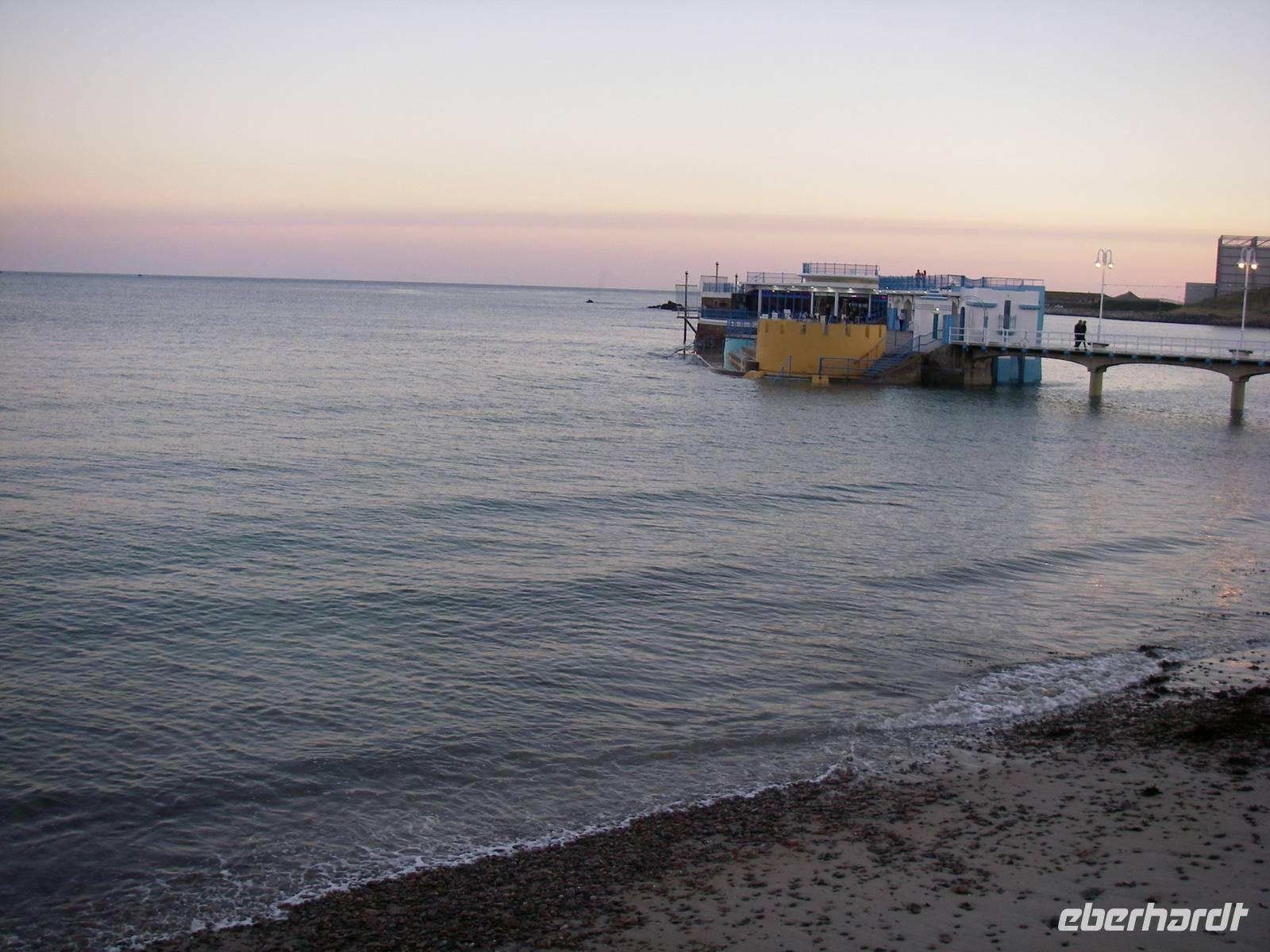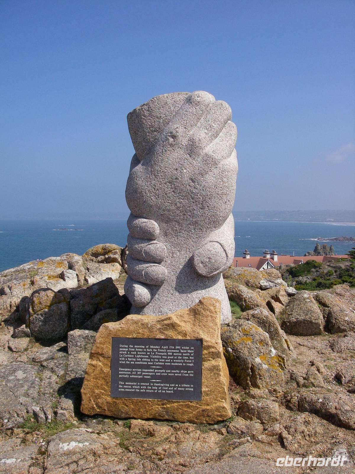 Von La Coupée erblicken wir auch schon in der Ferne das Pilcher Monument, das an den Londoner Geschäftsmann Jeremiah Giles Pilcher erinnert, der 1868 durch ein Unwetter vor Sark ums Leben kam. Da wir noch ausreichend Zeit haben bis die Fähre wieder ablegt, beschließen wir uns auch dieses noch näher anzuschauen. Bei einer kleinen Pause in der Nähe des Monuments lassen wir die unvergesslichen Ausblick auf uns wirken und gehen anschließend zurück ins Dorf. Nach einer kurzen Bummeltour durch die Avenue machen wir uns auf den Weg zum Hafen, wo uns Heidi bereits schon wieder für die Rückfahrt nach Jersey eincheckt. Bis die Fähre ablegt, haben wir jedoch noch etwas Zeit, so dass wir uns den alten Hafen noch anschauen. Mit vielen schönen Eindrücken fahren wir auf dem ruhigen Meer zurück nach Jersey, wo wir 18:15 Uhr wieder am Albert Pier anlegen. Nachdem uns Heidi zurück ins Hotel gefahren und wir uns etwas frisch gemacht haben, treffen wir uns 19:15 Uhr zu unserem gemeinsamen Abendessen.