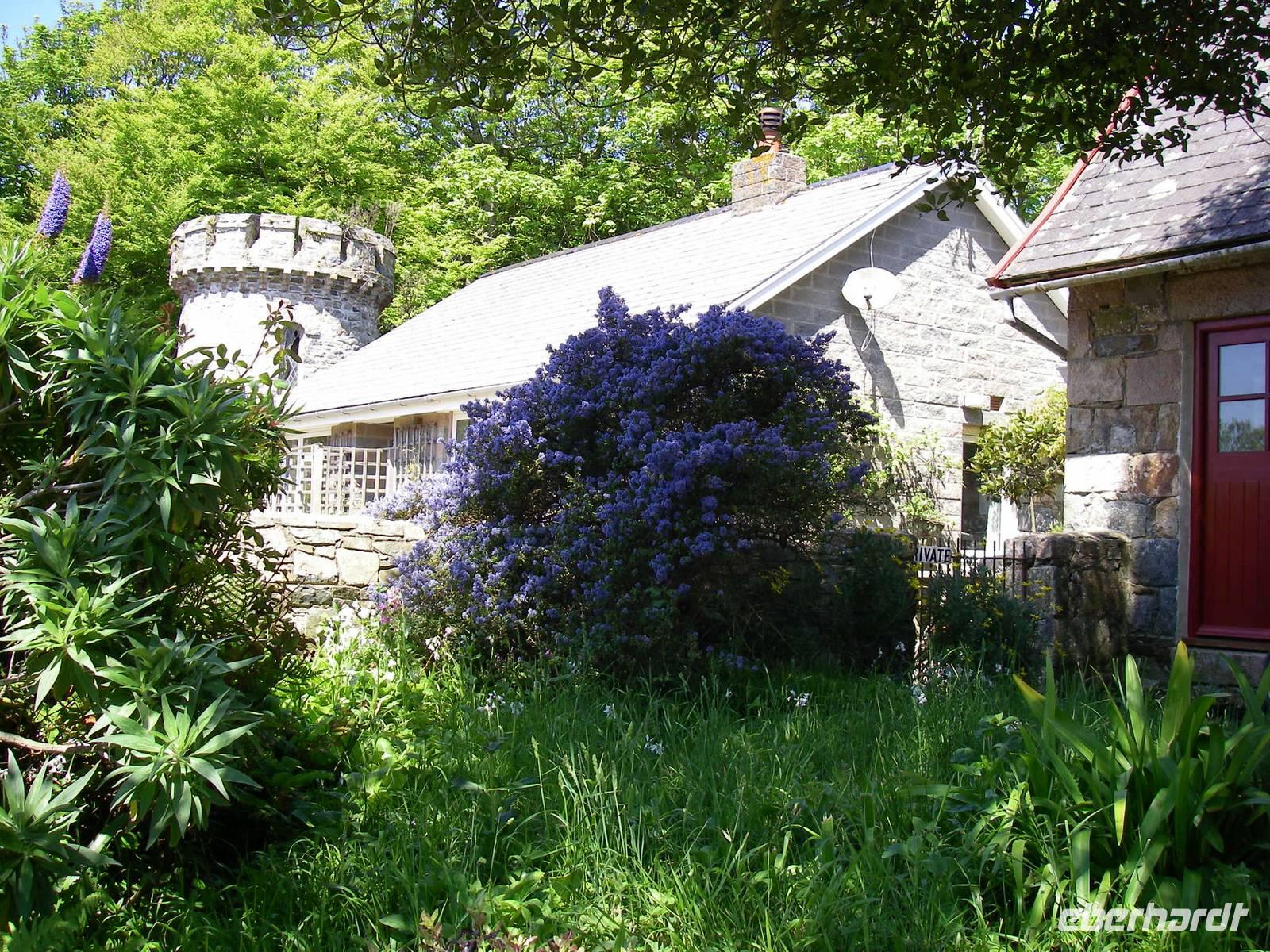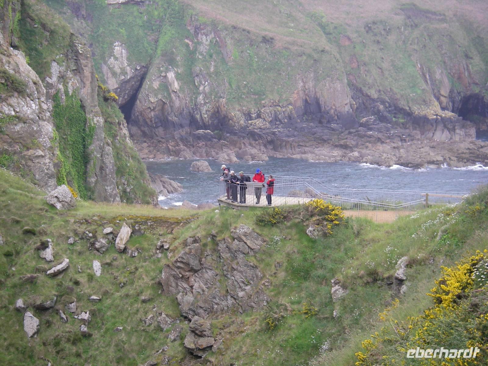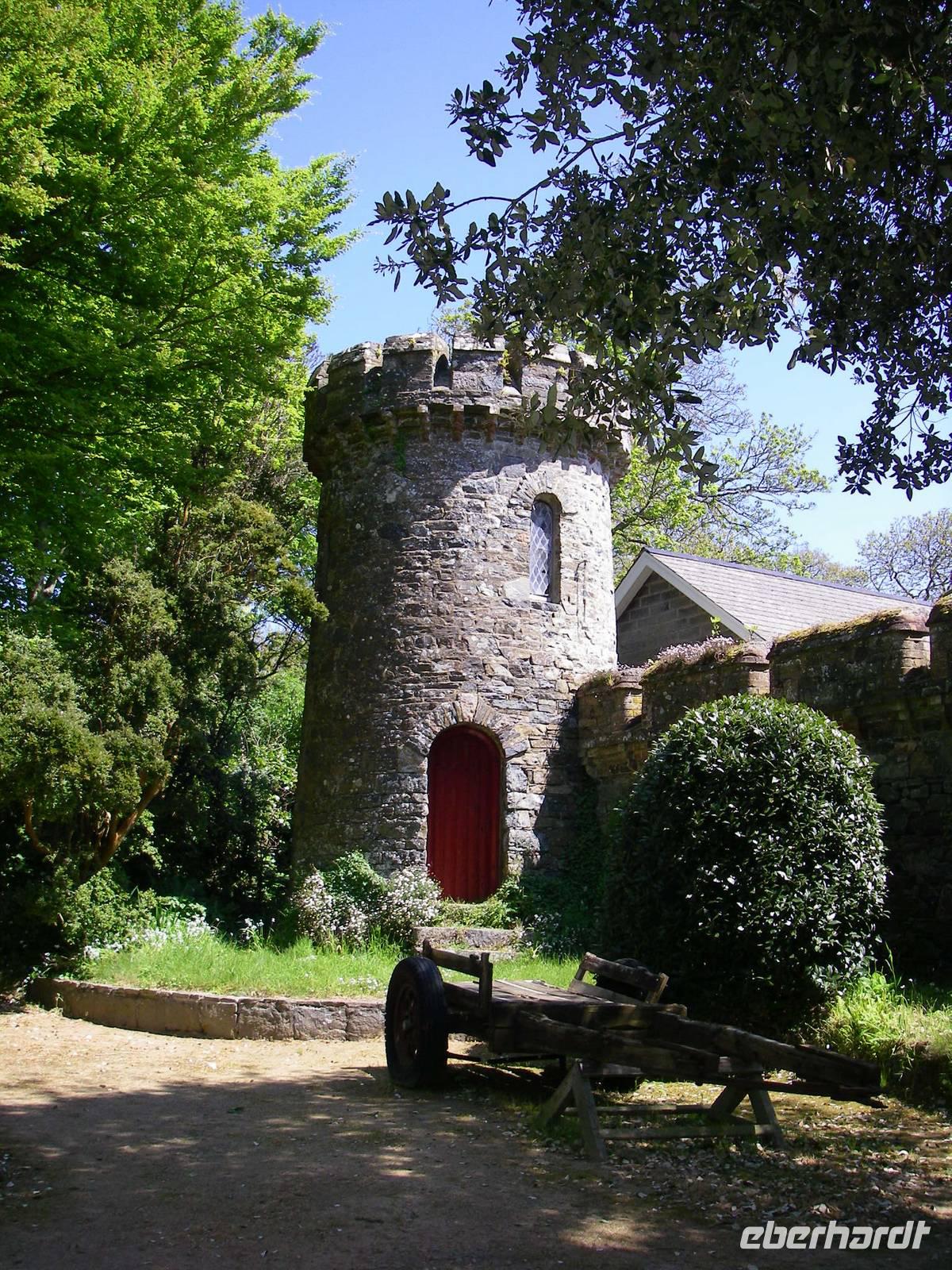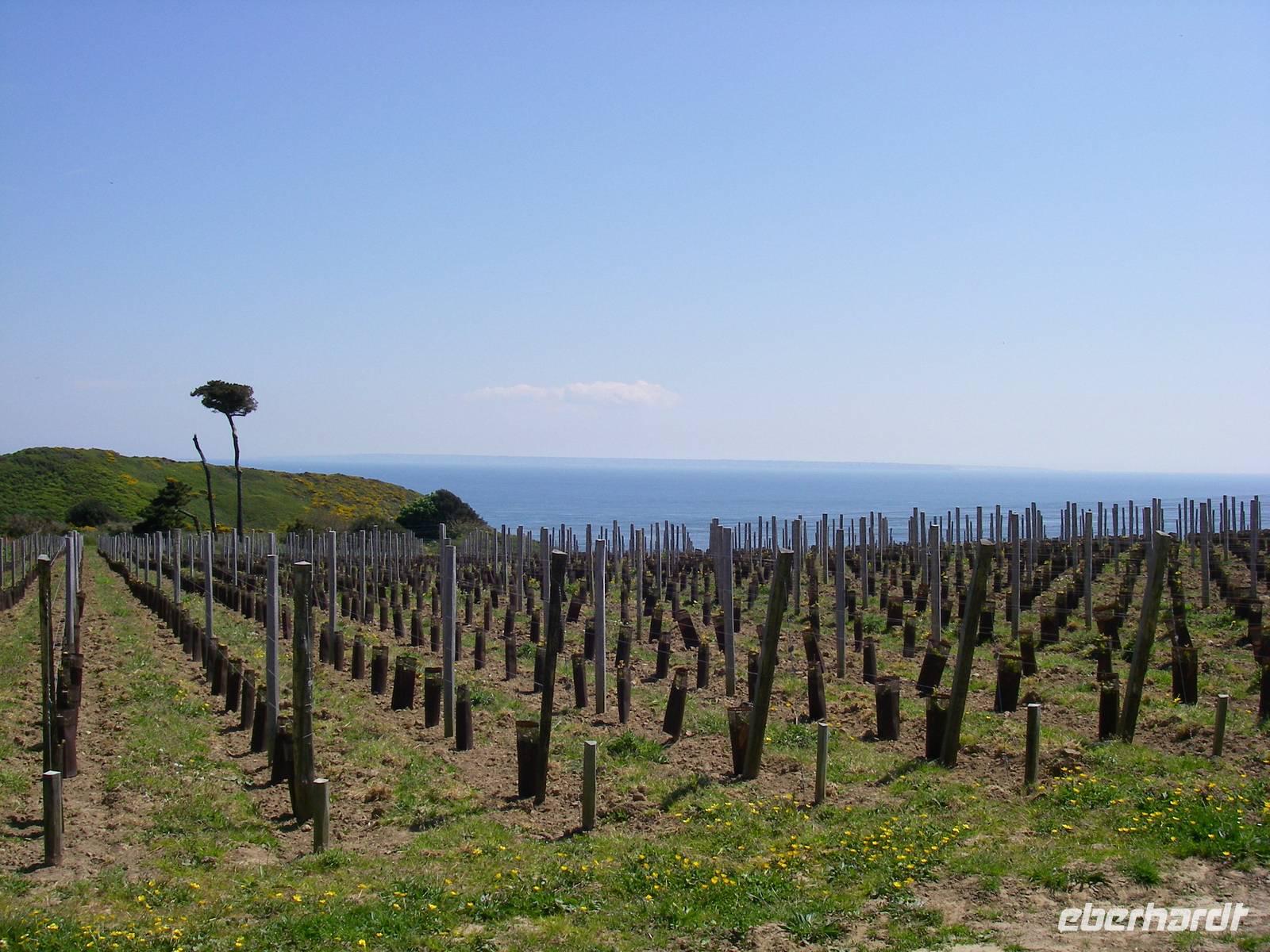 Angekommen am Maseline Hafen auf Sark beginnen wir unsere Wandertour mit einem Aufstieg auf den Harbour Hill bis zum Dorf. Unterwegs kommen wir an verschiedenen Figuren vorbei, die extra für den an diesem Wochenende stattfindende Vogelseuchenwettbewerb aufgestellt wurden. Vom Dorf laufen wir zur La Seigneurie, wo wir uns die prächtigen Gärten anschauen und durch einen Irrgarten kämpfen. Alles blüht herrlich und wir verweilen etwas. Anschließend wandern wir zum Window in the Rock, welches ein unnatürlicher Durchgang durch eine Felswand ist, durch den früher Güter von dem darunterliegenden Hafen hochgezogen wurden. Hier bietet sich uns ein einzigartiger Ausblick, welchen wir mit unzähligen Fotos festhalten. Nun geht es zurück zum Dorf. Unterwegs kommen wir an der Kirche von Sark vorbei, die wir besuchen und sogar den Pfarrer kurz kennenlernen, der uns in deutscher Sprache recht herzlich willkommen heißt. Etwas erschöpft, gönnen wir uns eine Mittagspause. In dem Garten eines kleinen Café setzen wir uns und stärken uns bei herrlichem Sonnenschein mit kleinen Snacks. Frisch gestärkt wandern wir über Weiden, Weinanbaufelder und einem Küstenpfad zum La Coupée. Dies ist eine Verbindungsbrücke zwischen Great und Little Sark, welche von den Deutschen als Kriegsgefangene betoniert wurde. Unterwegs genießen wir die tollen Ausblicke und sehen in der Ferne die Nachbarinseln von Sark.