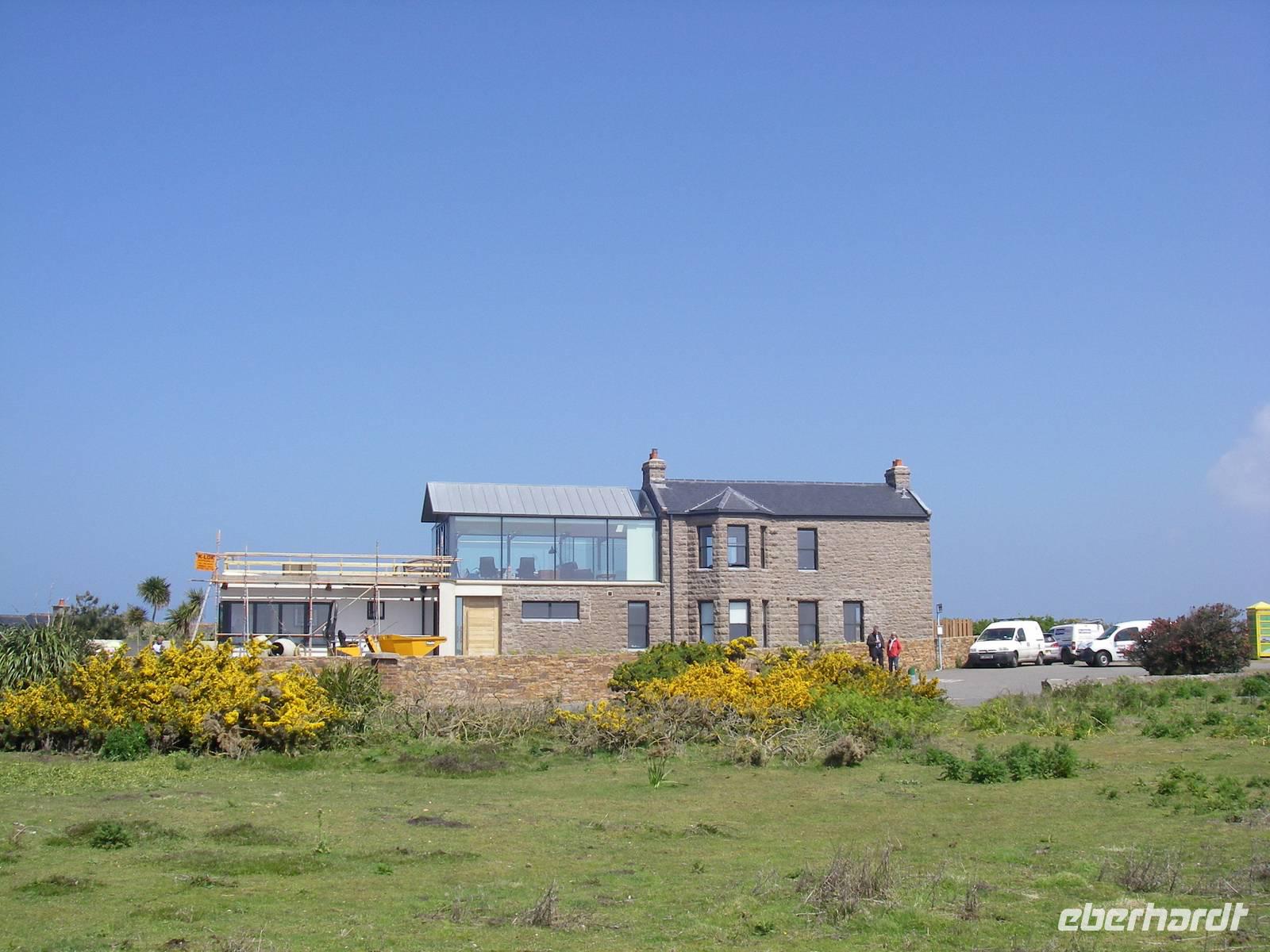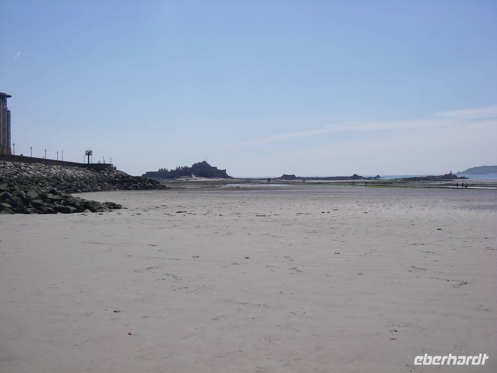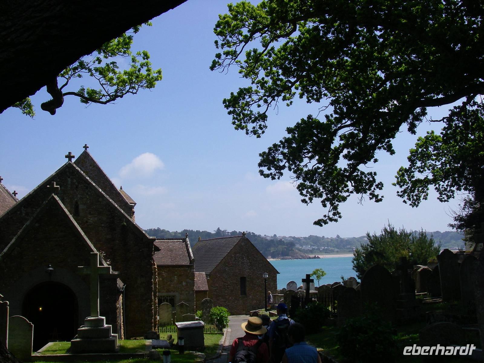 Auf unserem heutigen Programm steht eine Wanderung zu einem der eindrucksvollsten Punkte von Jersey - dem Corbière Leuchtturm. Dies ist die längste Wanderung unserer Reise, aber für uns kein Problem mehr. Vom Hotel geht es über die Miniautobahn von Jersey bis zum Hafen von St. Aubin, wo wir heute unsere Wanderung beginnen. Zwei Gäste nutzen diesen letzten vollen Tag auf Jersey um hinter die Tore privater Gärten zu schauen und nehmen deshalb an der von Ernst geführten Natur & Gartentour teil. Der Rest wandert mit Heidi von dem Hafen in St. Aubin, wo sich übrigens auch ein ehemaliger Bahnhof befindet, entlang einer früheren Eisenbahntrasse bis zum Corbière Leuchtturm. Die Flut ist schon wieder langsam im Kommen, so dass wir heute nicht die Möglichkeit haben rüber zum Leuchtturm zu laufen. Entlang der Küste wandern wir schließlich wieder bergauf und bergab und entlang dem traumhaften Beauport bis zur St. Brelade Bay, wo wir uns Fisherman's Chapel sowie den Friedhof herum anschauen. Ein Besuch der Parish Church von St. Brelade bleibt uns heute leider verwehrt, da gerade eine Hochzeit stattfindet. In einem kleinen Café in der Bucht legen wir eine Mittagspause ein. Die Sonne scheint herrlich, so dass der Strand hier heute gut besucht ist. Mit frischer Kraft wandern wir über einen Berg zur nächsten Bucht, der Ouaisné Bay. Über den Strand geht es weiter bis wir schließlich wieder hoch auf ein Plateau müssen. Dort oben befindet sich das Portelet Common, wo wir einen kleinen Rundgang durch ein Naturschutzgebiet machen. Anschließend wandern wir längs der Portelet Bay in dessen Mitte sich die Île au Guerdain mit dem Grab des Kapitäns Philippe Valey dit Janvrin befindet. Weiter im Landesinnern laufen wir wieder zurück nach St. Aubin, wo wir bereits von Weitem von dem Fort St. Aubin begrüßt werden. Nach kurzer Freizeit treffen auch schon Ernst und die zwei Gäste, welche an der Gartentour teilgenommen haben, am Hafen ein. Gemeinsam machen wir uns auf den Weg zurück zum Hotel in St. Helier. Wir bedanken uns herzlich bei Heidi und Ernst für diese wunderschöne Zeit. Beim letzten Abendessen im Hotelrestaurant und einem anschließend Absacker in der Lobby lassen wir die Woche noch einmal Revue passieren.