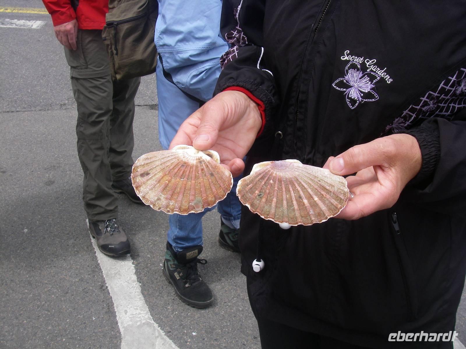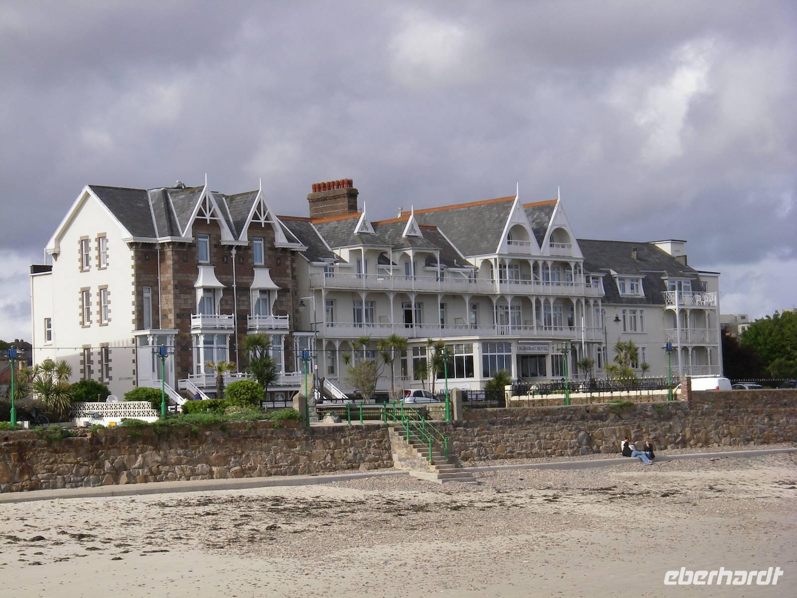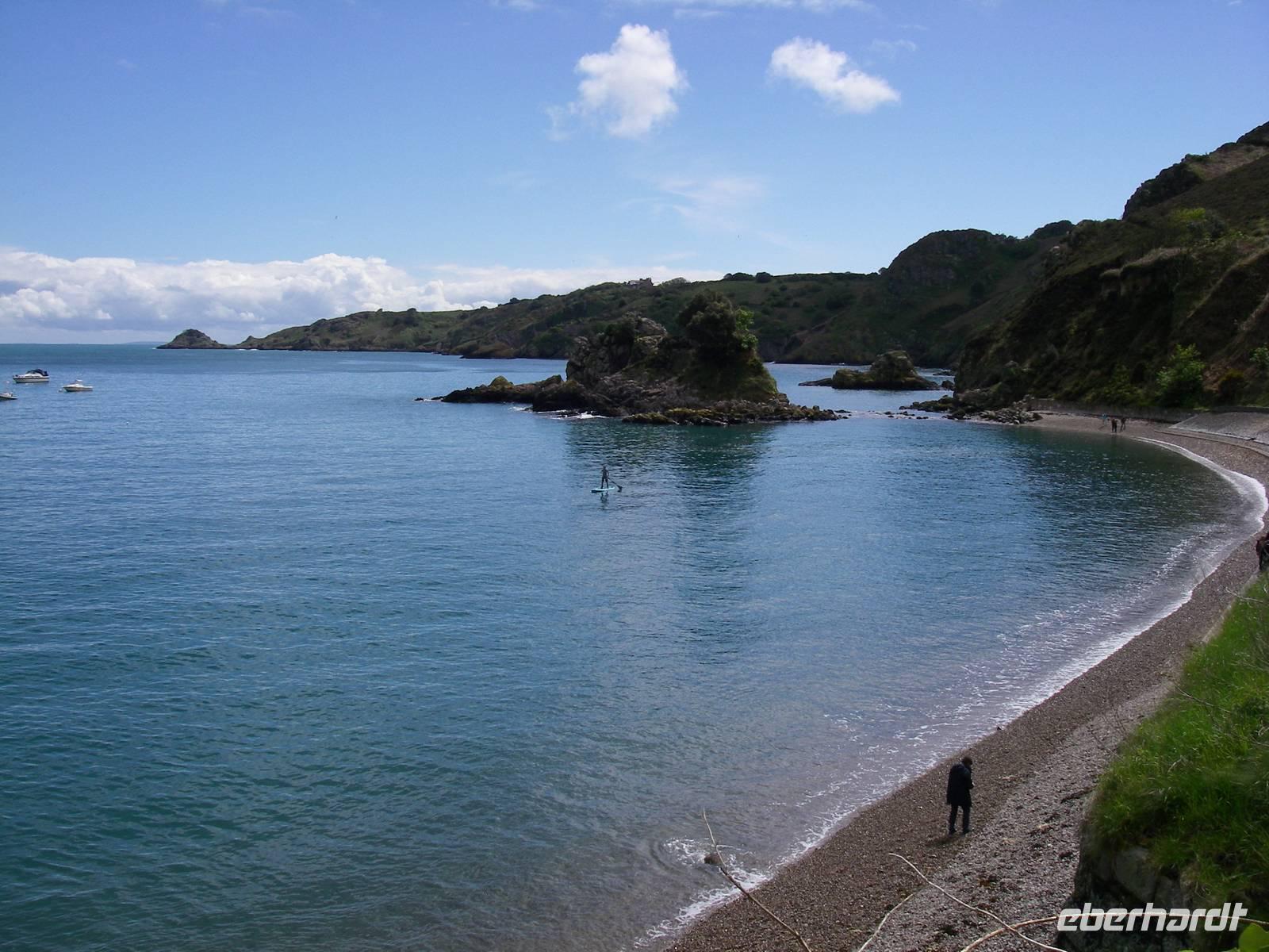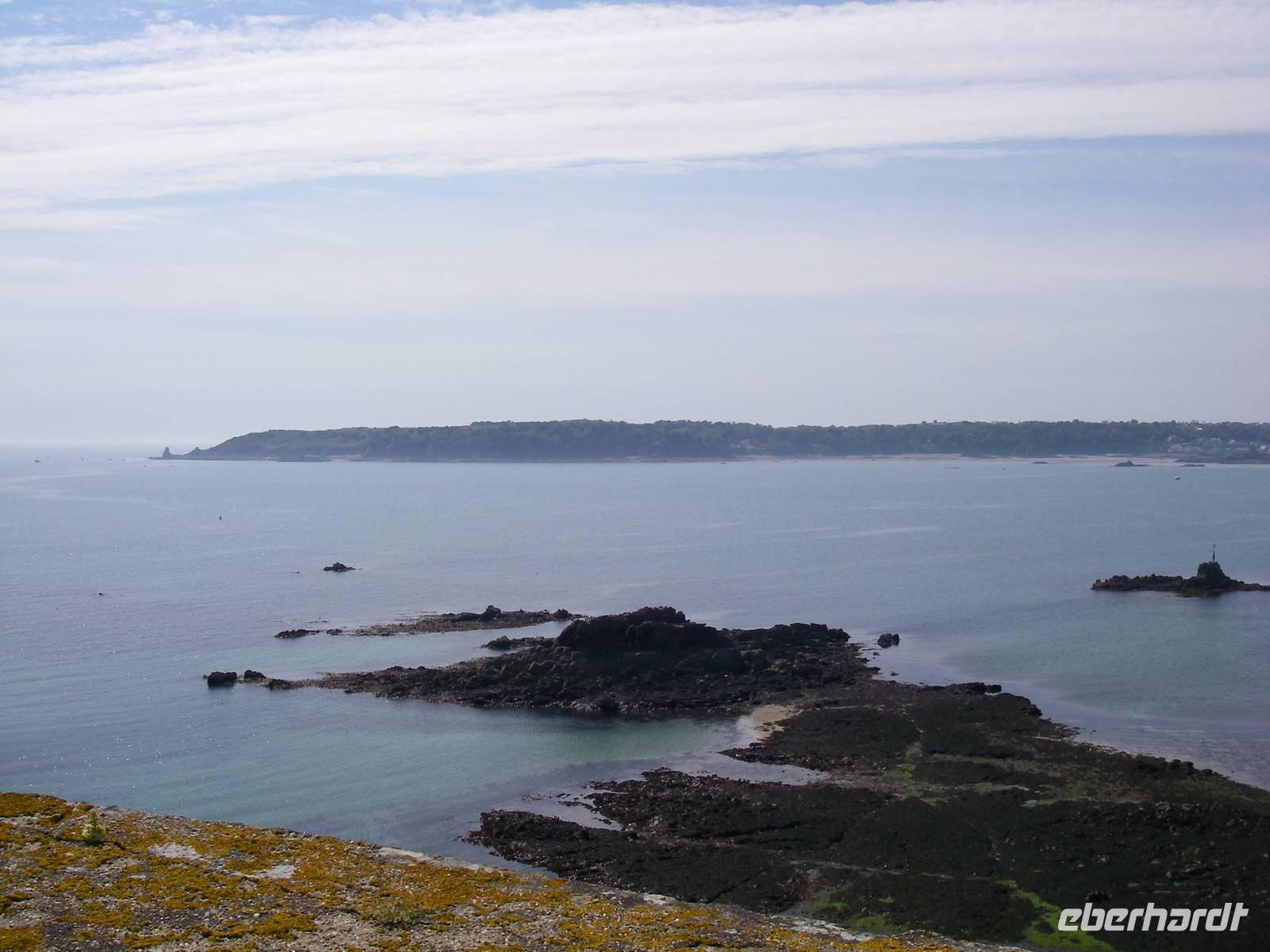Wie vorhergesagt, regnet es heute. Aber wir geben die Hoffnung auf besseres Wetter nicht auf. Mit einem wie immer reichlichen Frühstück starten wir in den Tag und werden gegen 9:30 Uhr von Heidi und Ernst, der unser Chauffeur für den heutigen Tag ist, abgeholt. Von St. Helier fahren wir durch das Landesinnere nach Norden bis wir nach ca. 20 Minuten wieder die Küste erreichen. An der Bonne Nuit Bay steigen wir bei trockenen Wetter aus dem Bus und beginnen unsere Wanderung Richtung Osten. Entlang eines schmalen Küstenpfades wandern wir bei einem Mix aus Sonne und Wolken an der Giffard Bay bis zur Bouley Bay. Die Aussichten auf das Meer und die Buchten sind unvergesslich und die Vegetation ist prächtig. Unterwegs geht es immer wieder bergauf und bergab, so dass es nicht langweilig wird. Auch müssen wir ein kurzes Stück durch einen Wald bis wir schließlich Bouley Bay erreichen. Hier gehen wir alle gemeinsam ins Pub und lassen uns von der lokalen Küche verwöhnen. Da immer noch recht viel Wasser in der Bouley Bay ist, haben wir heute leider keine Chance Jakobsmuscheln zu finden, welche hier immer von den Tauchern hinterlassen werden. Nach dieser Erholungspause setzen wir unseren Weg entlang der Küste bis zur Rozel Bay fort. Unterwegs kommen wir an den Überresten des L'Etacquerel Forts vorbei. Auch haben wir heute unseren ersten Probealarm in Sachen schnelles Regenkleidung anziehen. Da es kurz anfängt etwas stärker zu regnen, machen wir einen kurzen Stopp um unsere Regenmontur anzulegen. Die Regenwolke zieht jedoch schnell vorbei, so dass wir nach kurzer Zeit wieder alles ablegen können. An der Rozel Bay ist bereits schon Ebbe, so dass wir bei einem kurzen Strandspaziergang ein paar Muscheln finden. Anschließend genießen wir zum Abschluss unserer Wanderung noch eine kleine Überraschung im Schlosshotel „Chateau la Chaire". Ernst holt uns dann wieder mit dem Bus ab und bringt uns zurück zum Hotel. Nach unserem gemeinsamen Abendessen gehen einige Gäste mit mir noch in den Stadt, um einen Absacker im Pub „Lamplighter", wo es eine große Auswahl an verschiedenen Biersorten gibt, zu haben.