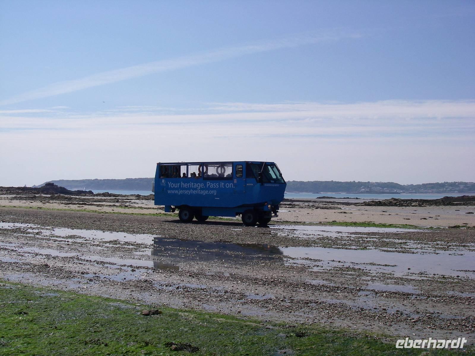 Der heutige Tag steht zur freien Verfügung. Deshalb entscheiden sich zwei Gäste die Innenstadt von St. Helier etwas unsicher zu machen und anschließend mit dem öffentlichen Bus in den Durrell Wildlife Zoo zu fahren, welcher mit seinen ca. 1000 Tieren bekannt für seine äußert tierfreundliche Anlage ist. Der Rest der Gruppe beschließt an der Inselküstenrundfahrt teilzunehmen. Zur Abwechslung zu den anderen Tagen nutzen wir heute mal den Bus. Pünktlich um 9:50 Uhr werden wir von Ernst abgeholt. Er lebt schon viele Jahre hier auf Jersey und kennt sich auf der Insel somit bestens aus. Trotz der oftmals engen Straßen lenkt er den Bus sicher und gibt uns allerhand interessante Informationen über Jersey, das Leben auf der Insel und die Menschen, welche hier leben.