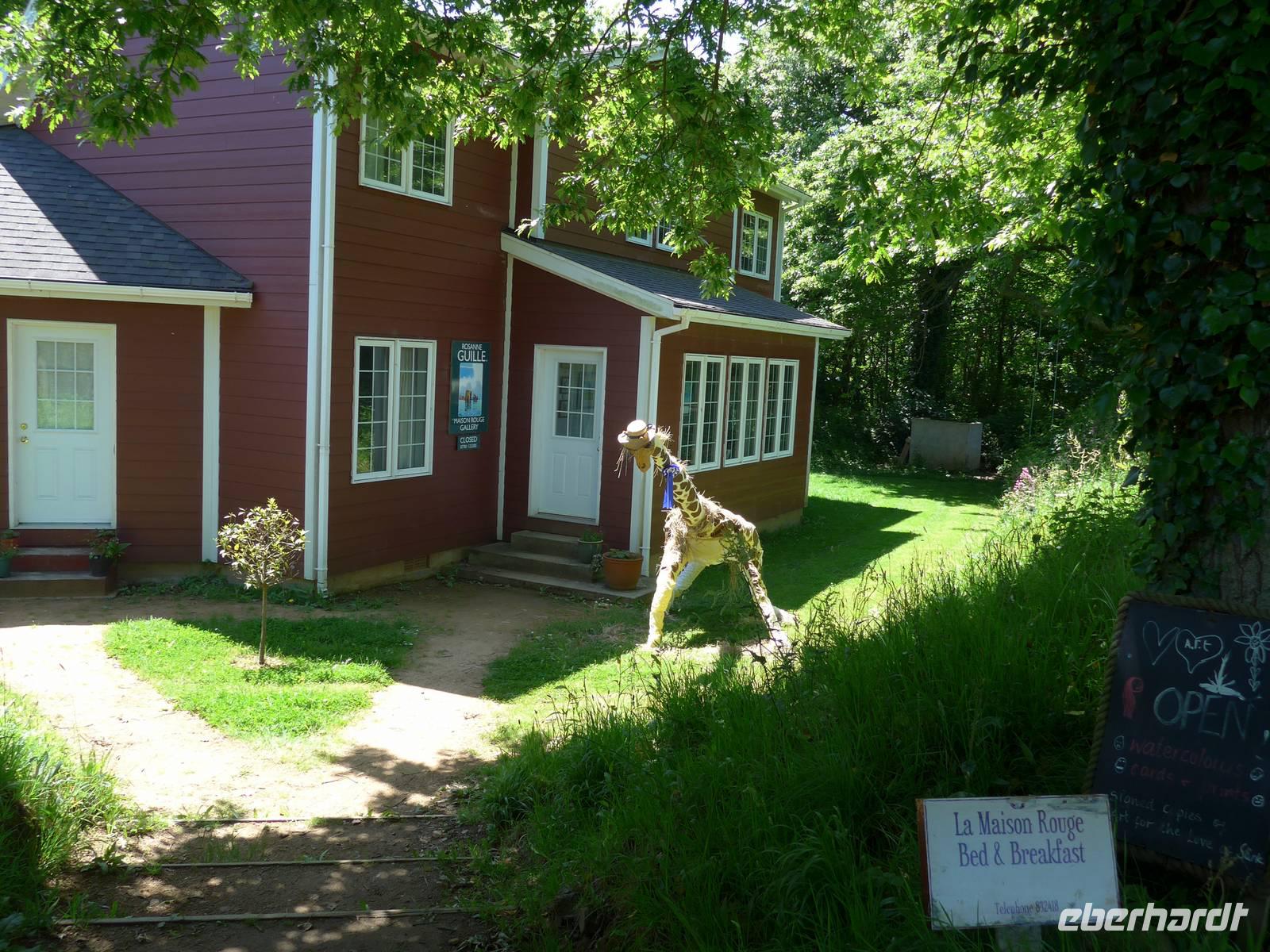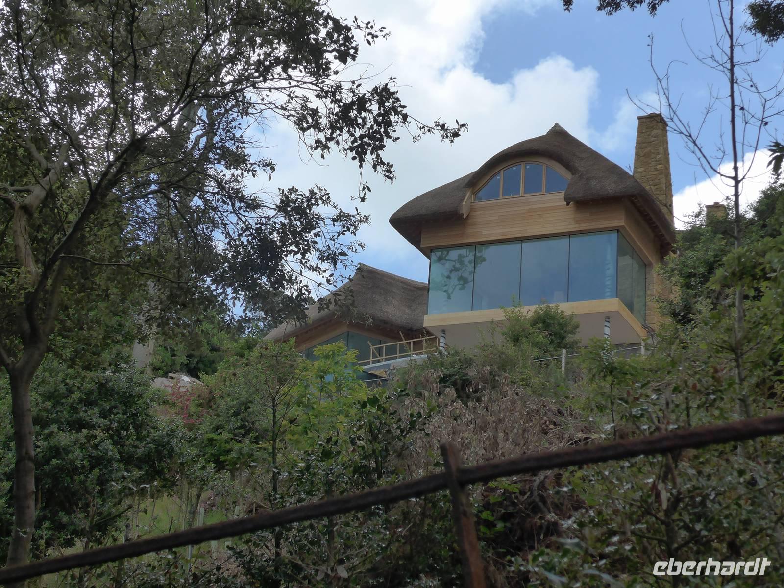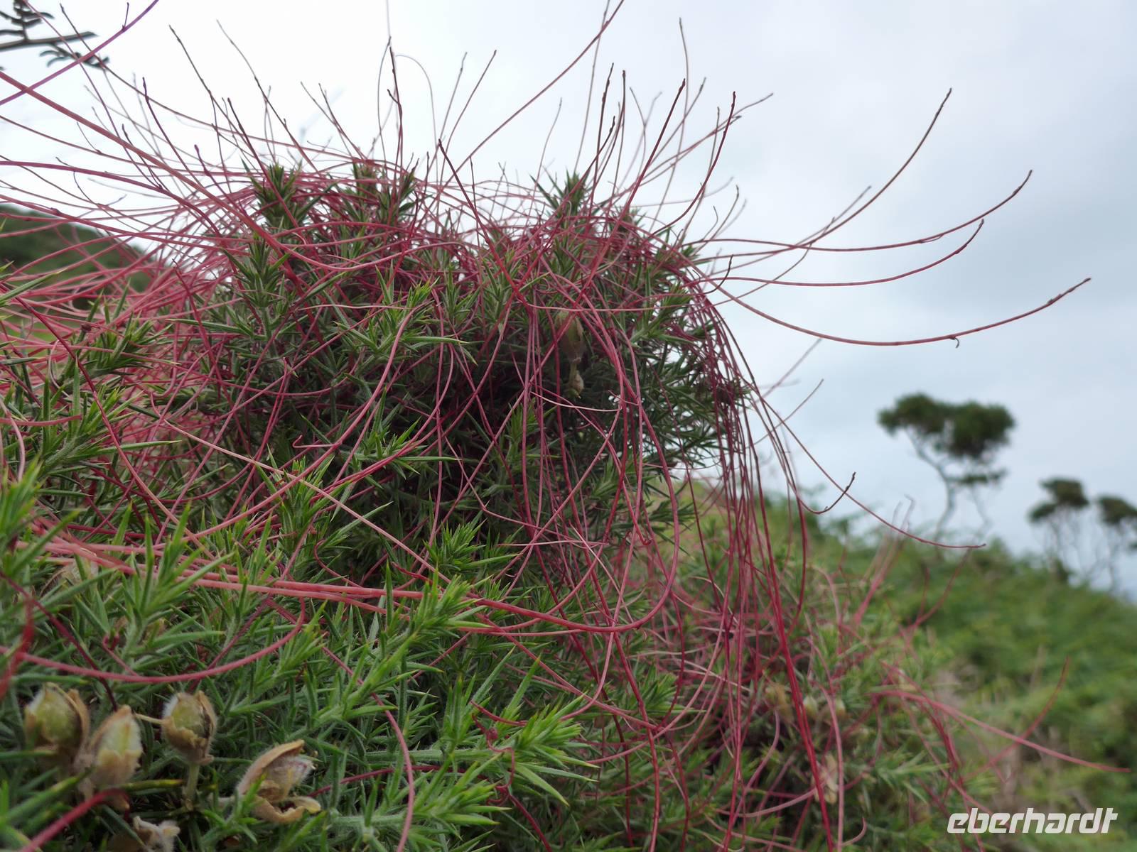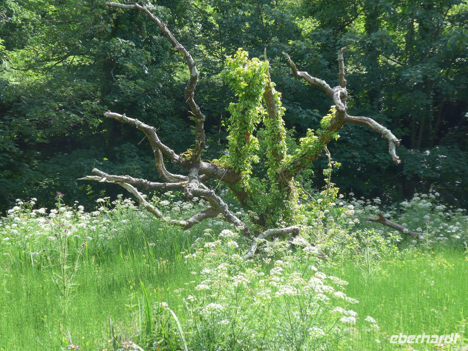 Koniferen waren von Teufelszwirn eingewebt. Zur besten Kaffeezeit erreichten wir 15 Uhr Rozel und kehrten im Chateau la Chaire auf einen Cream Tee mit Scones ein. Es tat gut, zu sitzen und diese Köstlichkeiten zu probieren. Danach spazierten wir das Tal hinauf und bestaunten einen blühenden rießigen Taschentuchbaum. Ernst brachte uns entlang der Ostküste, die bei Ebbe eine sehr interessante Landschaft freigibt, zurück ins Hotel. Trotz Ebbe war der riesige Meerwasserpool gegenüber von unserem Hotel mit Wasser gefüllt und so wagten einige von uns bei 14 Grad Wassertemperatur ein Bad.