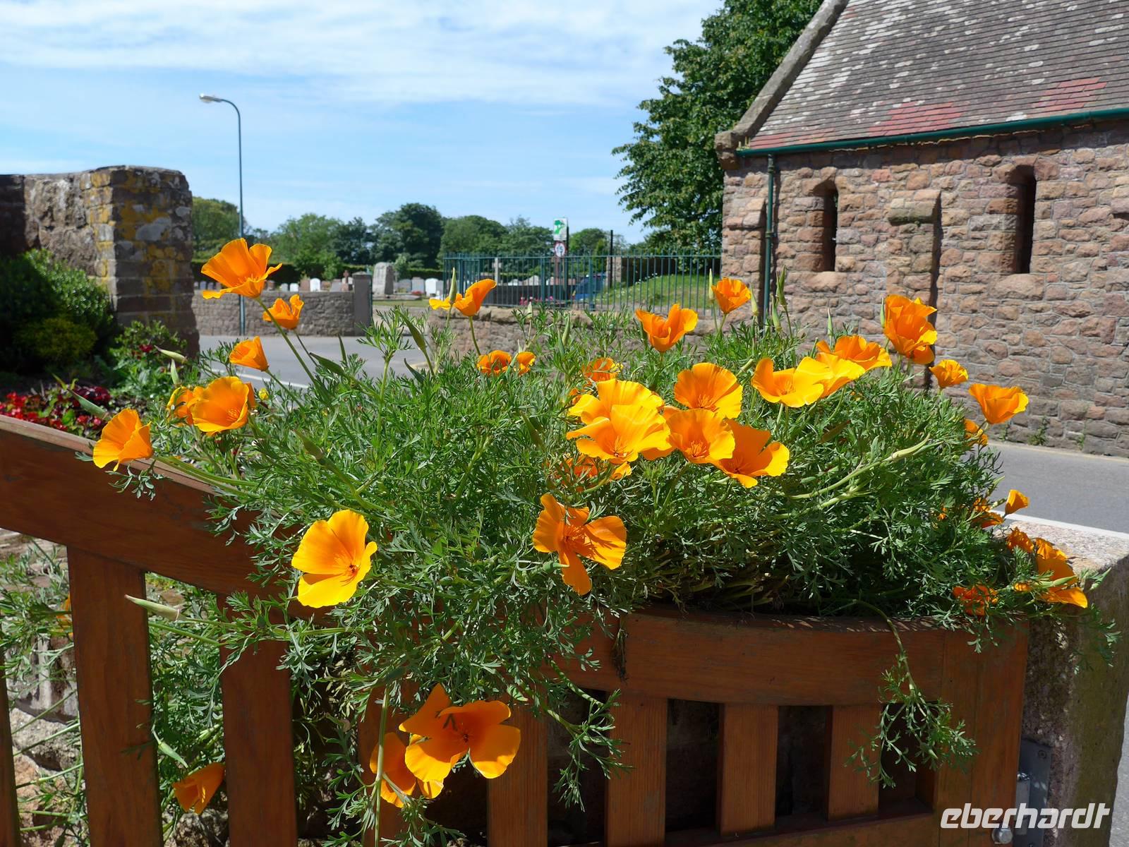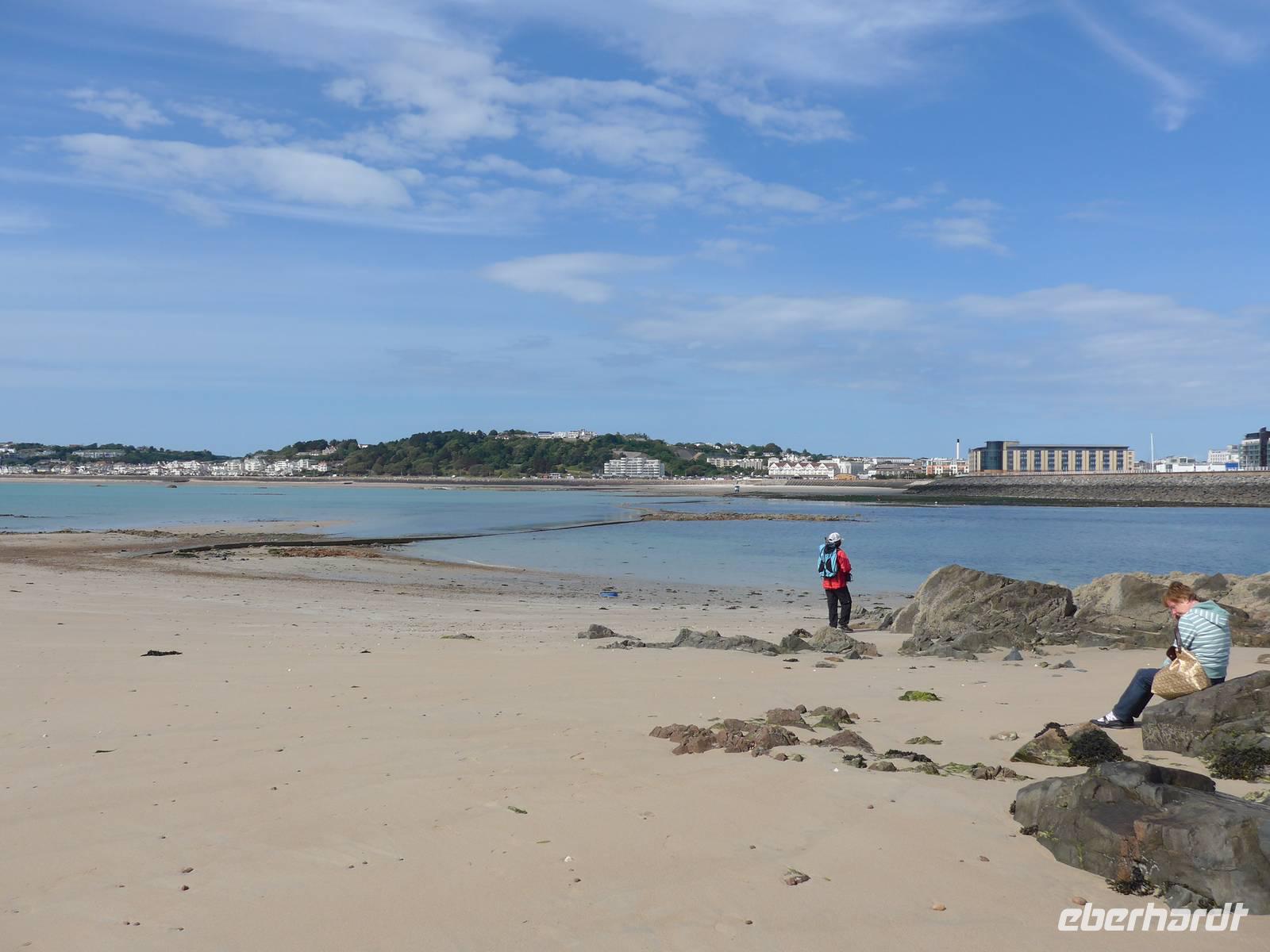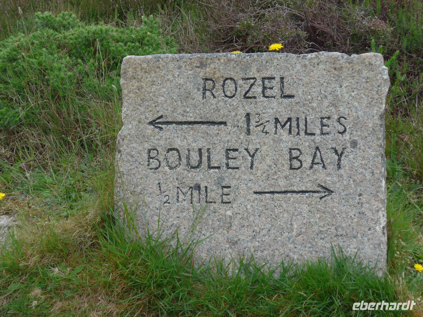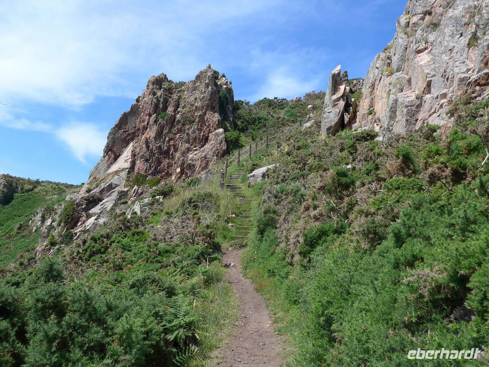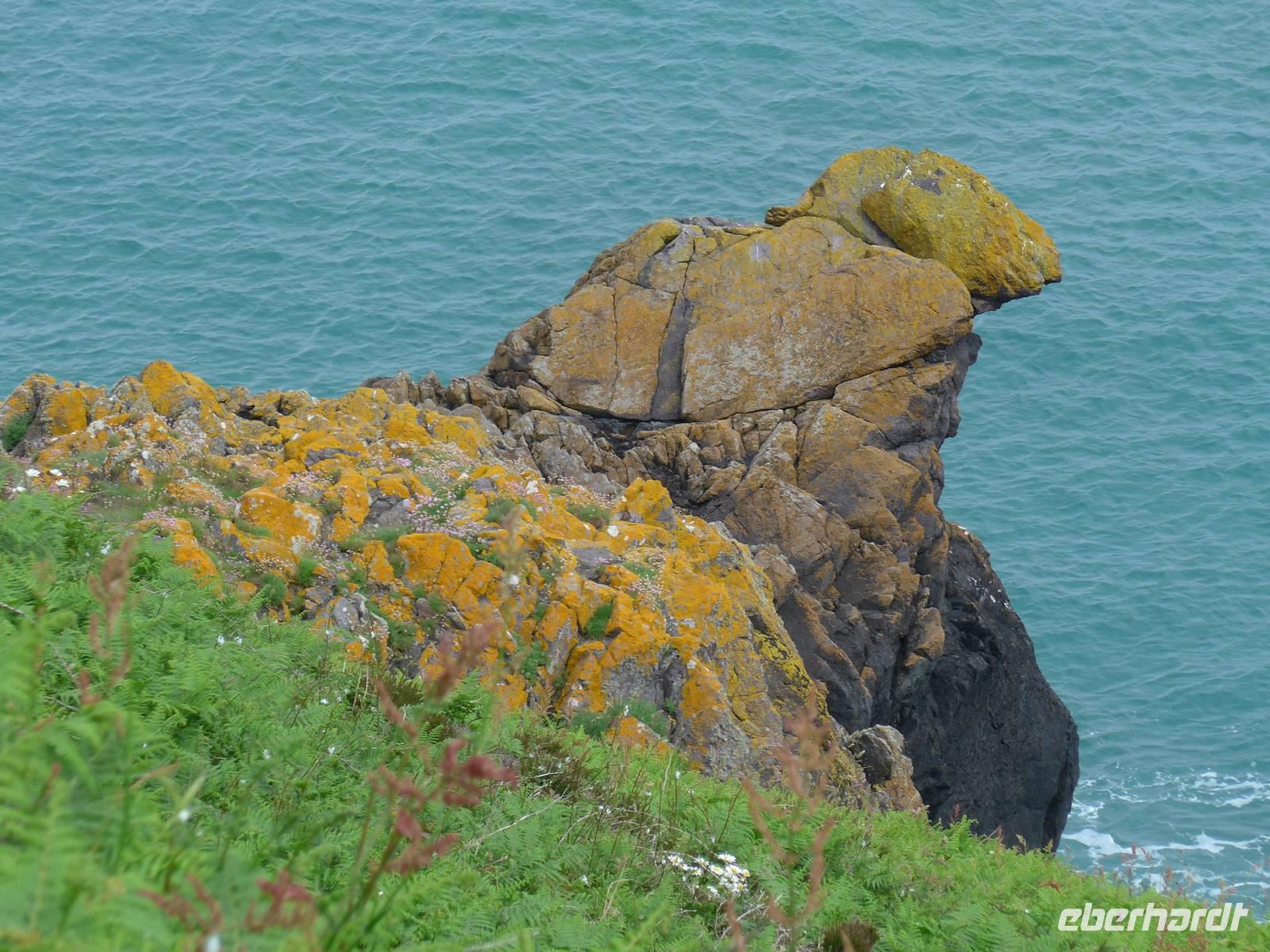 Für die Wanderungen auf Jersey war Eberhard unser Wanderleiter. Mit ihm fuhren wir quer über die Insel zur Nordküste. Der Wanderweg war gesäumt mit vielen verschiedenen Blumen und verlief dicht an der Küste immer auf und ab mit tollen Ausblicken auf die Nachbarinseln. Unsere Mittagspause machten wir in der Bouly Bay, wo wir Jakobsmuscheln fanden und bei Mad Marry einen kleinen Imbiß einnahmen. Weiter ging es wieder auf und ab immer an der Küste entlang. Wir sahen Fasane und kamen an vielen Kartoffelfeldern vorbei.