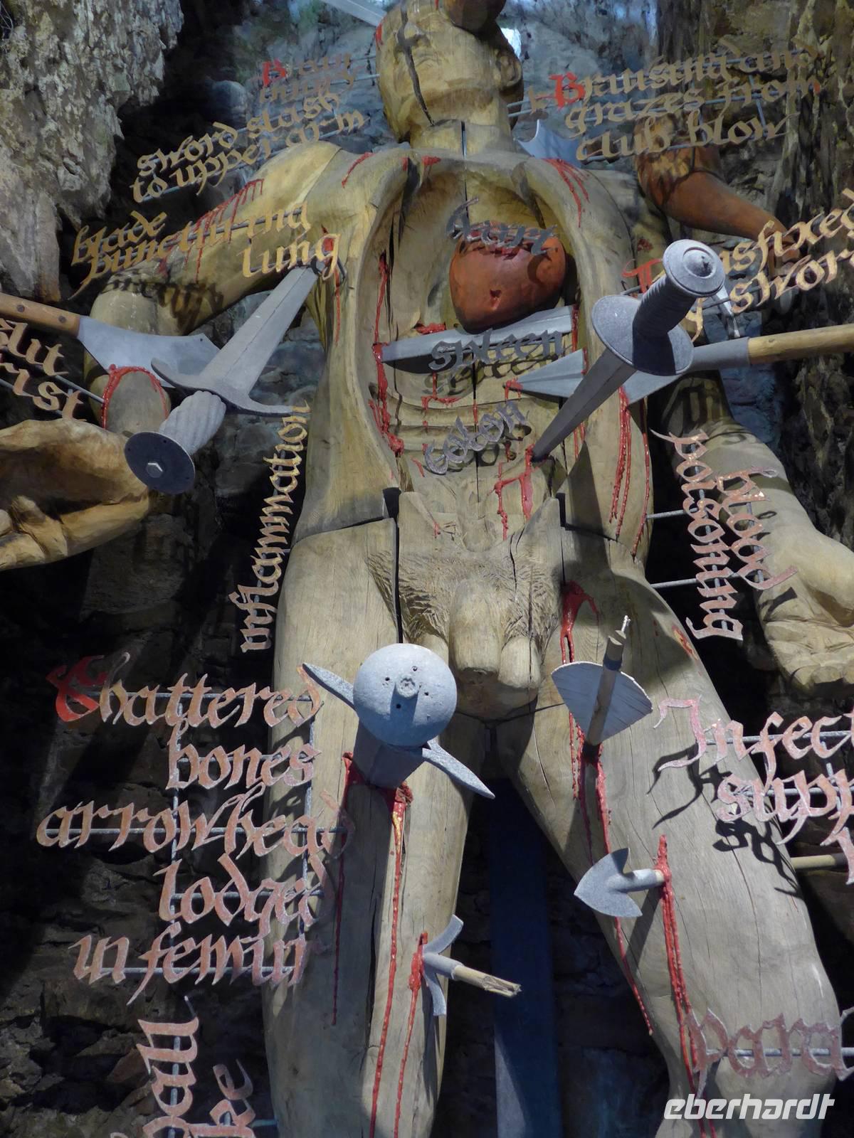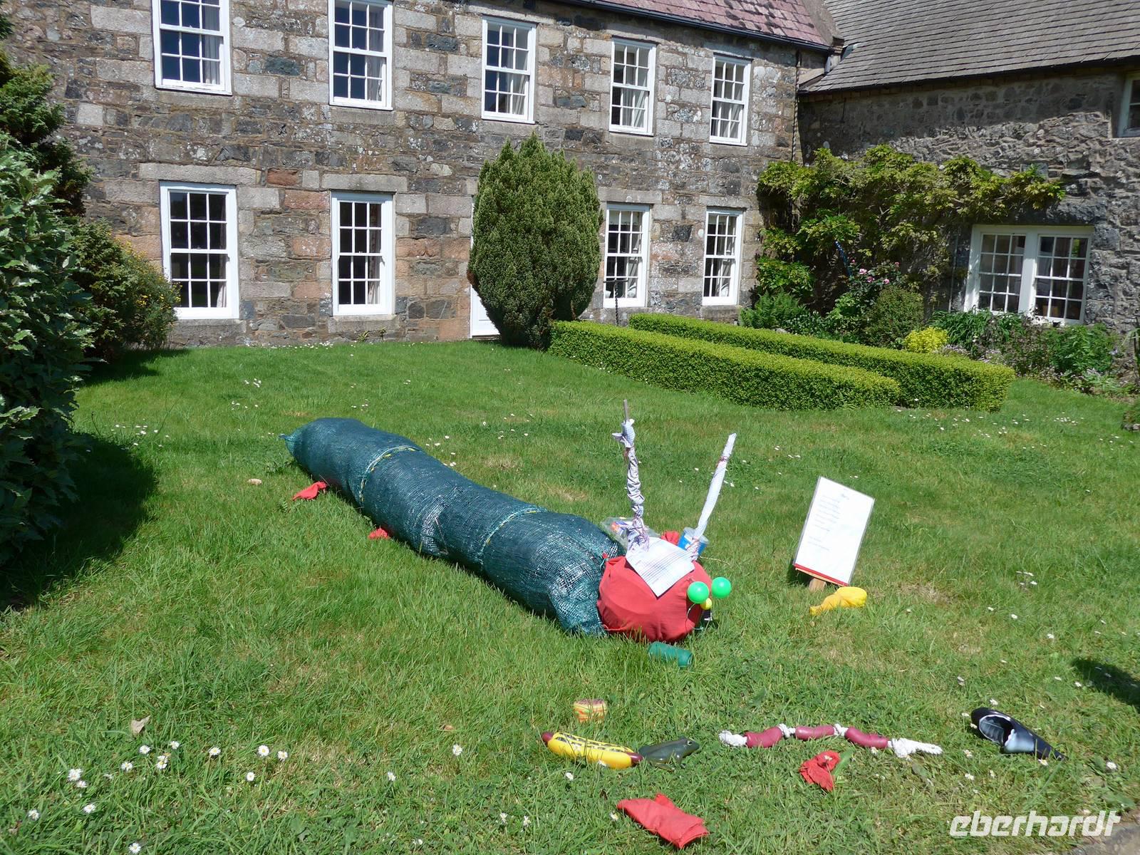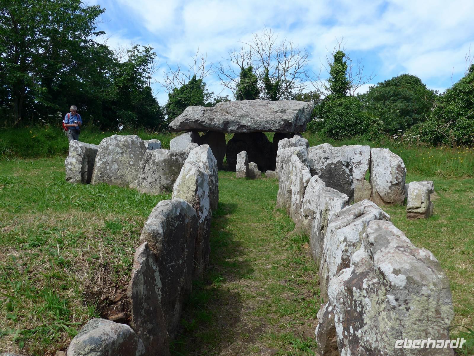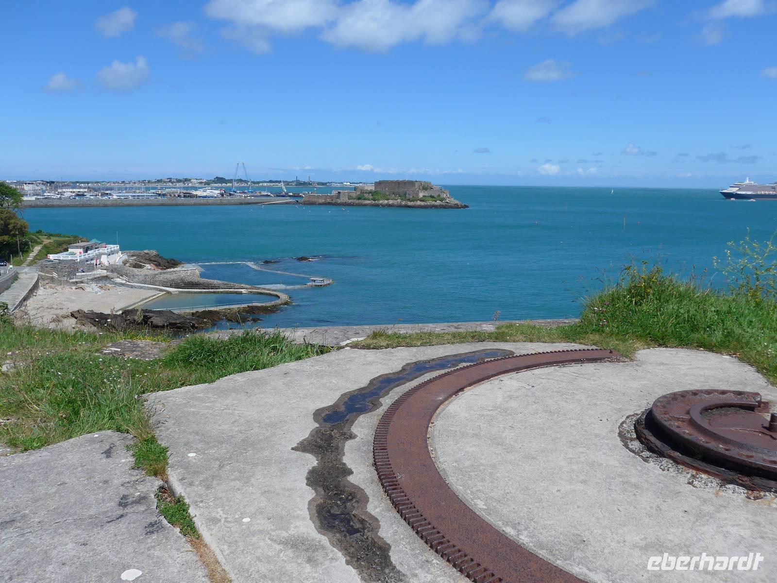 Nach dem Frühstück bezahlten alle die Hotelrechnung und Fam.Bogenrieder wurde verabschiedet. Beide hatten einen Flug nach Düsseldorf. Alle anderen hatten Zeit bis 15 Uhr und so gingen einige nochmals in die Stadt und 8 Gäste fuhren mit dem Bus zusammen mit der Reiseleiterin nach Gorey. Vom Hafen in Gorey führte der Weg hinauf zum Faldouet Dolmen, einem steinzeitlichen Ganggrab, welches auch als Opferstätte genutzt wurde. Danach wurde Gorey Castle besucht. Diese eindrucksvolle Burg aus dem Jahr 1204 wurde bis 1600 zur Verteidigung genutzt und zu Beginn der 2000er Jahre umfassend renoviert. Vom höchsten Punkt war ein toller Blick hinüber zur Küste der Normandie. In der Burg wird das Leben im Mittelalter sehr gut gezeigt und Künstler haben Themen wie den Stammbaum oder die Hexenprozesse sehr eindrucksvoll gestaltet. Gegen 14 Uhr fuhr der Bus zurück ins Hotel.
