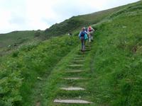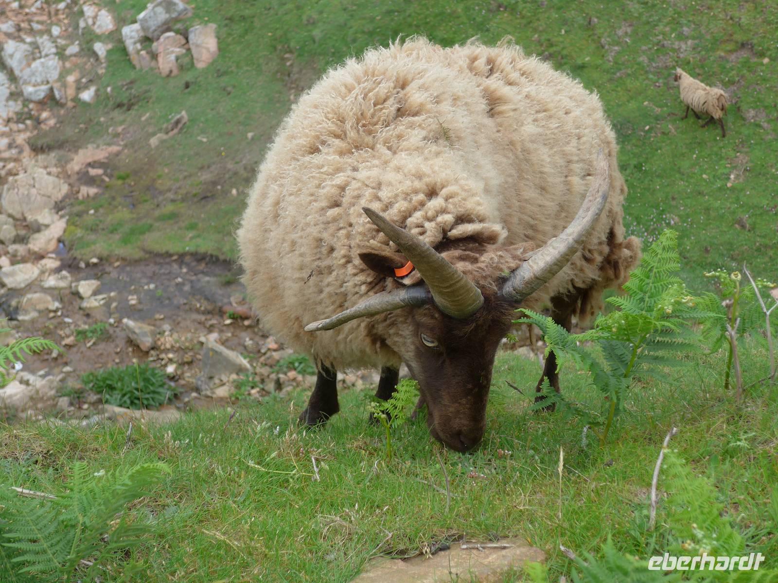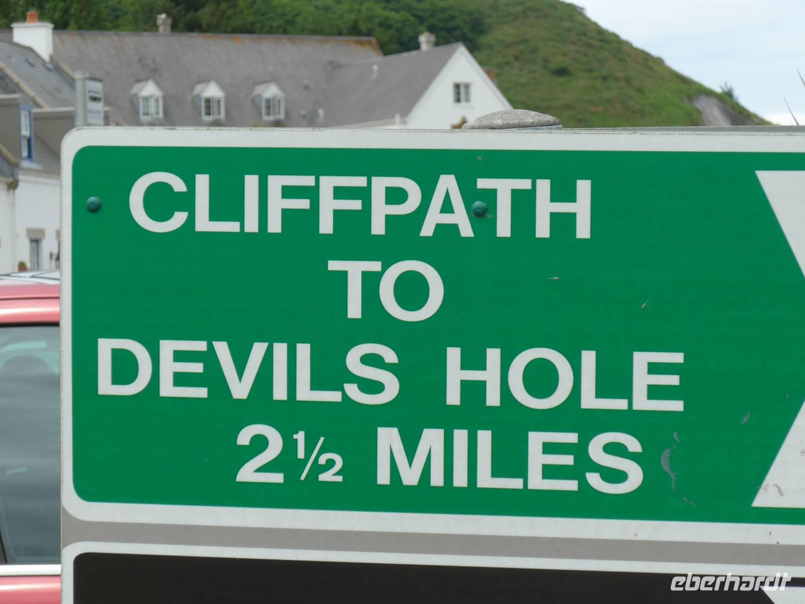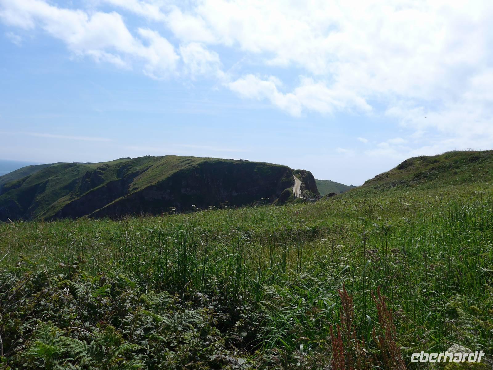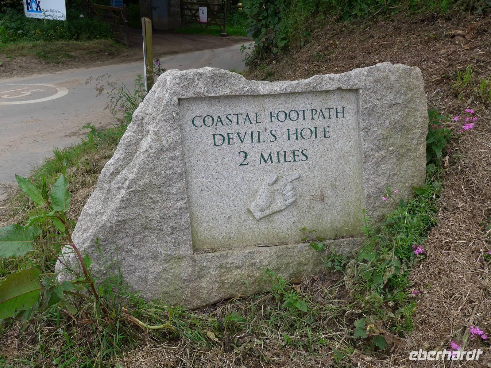 Wie schon am Vortag fuhren wir mit dem Bus zur Nordküste. Am Grosnez Castle machten wir unser Gruppenfoto und schauten uns die Ruinen der alten Festung an. Dann führte der Wanderweg wieder entlang der Küste auf und ab. Wir kamen an der Stelle vorbei, wo das Kabel vom Festland Jersey erreicht. Thomas war beim Geochaching wieder erfolgreich und fand mehrere Verstecke. Inzwischen interessierte das auch andere Gäste unserer Gruppe und wir hattn beim Suchen viel Spaß und freuten uns mit Thomas über jeden Erfolg. Wir kamen an mehreren Grundstücken vorbei, die dem Jersey National Trust gehörten und Eberhard erklärte uns, welche gekauft und welche gestiftet wurden. Am Weg standen viele blaue Sandrapunzel (wilder Schnittlauch). In der Bucht von Greve de Lecq machten wir Mittagspause. Danach ging es wieder bergan und auf einem schönen Küstenweg bis zum Devil´s Hole. Der Weg hinunter führte an einem Teich mit riesigem Teufel vorbei ans Meer. Unten grasten Schafe mit 4 Hörnern - schon ein bißchen teuflich aussehend und es sollte auch Katzen ohne Schwanz geben. Leider konnten wir, weil Ebbe, das Wasser nicht durch den Felsen kommen sehen. Aber es war auch so schön. Gegen 16 Uhr holte uns Ernst wieder ab und brachte uns ins Hotel zurück.