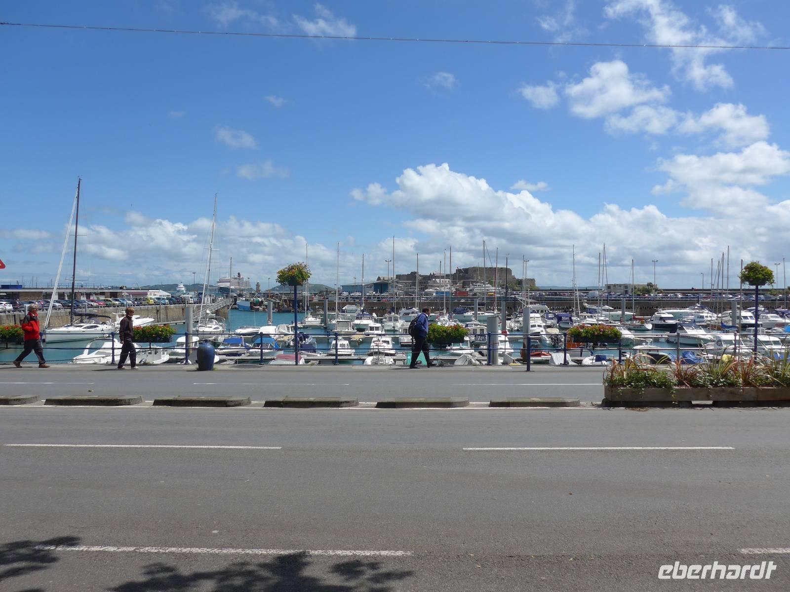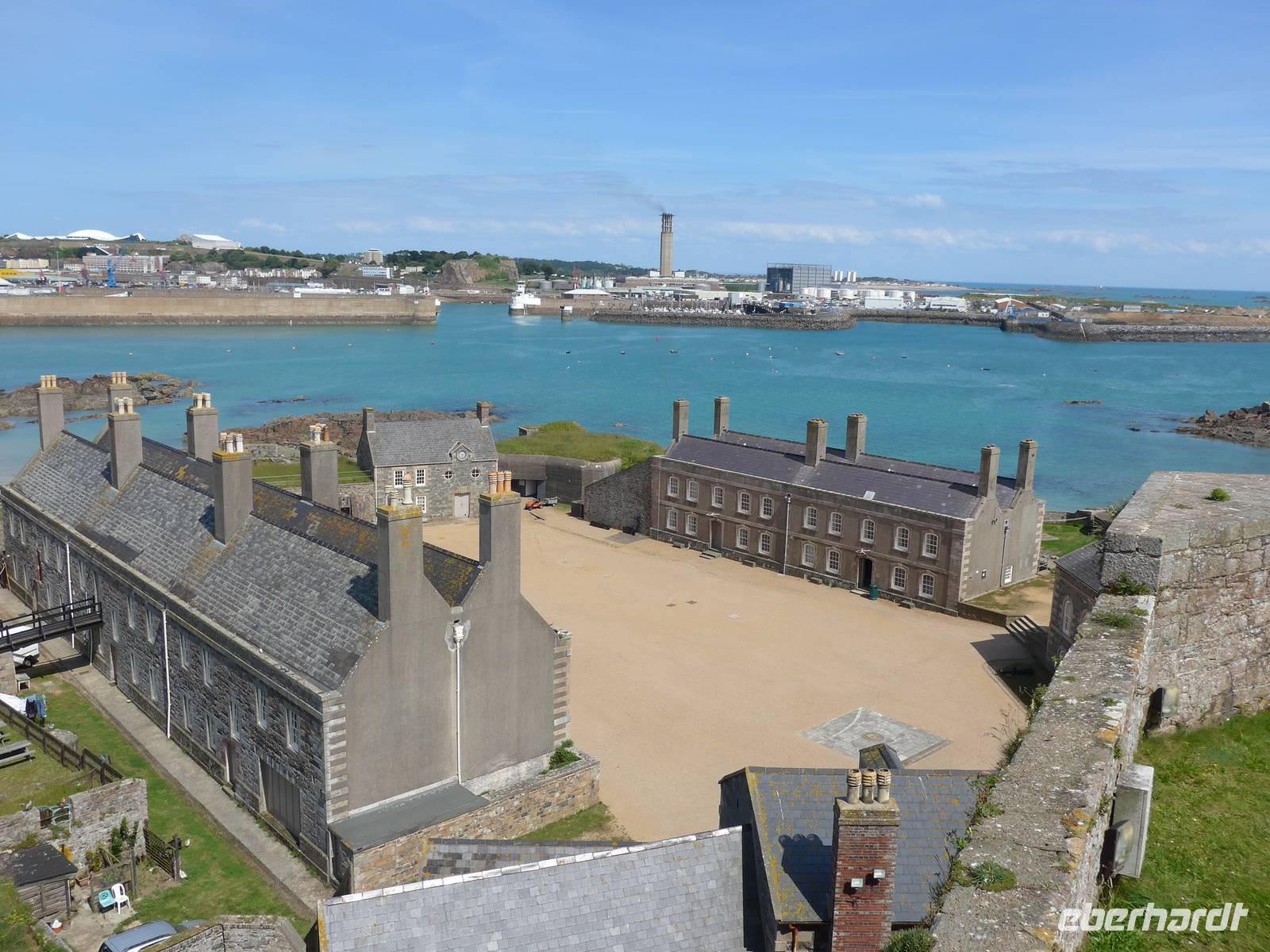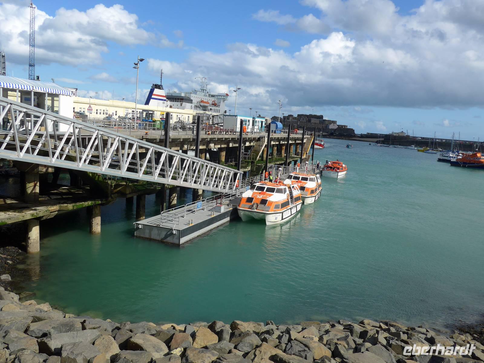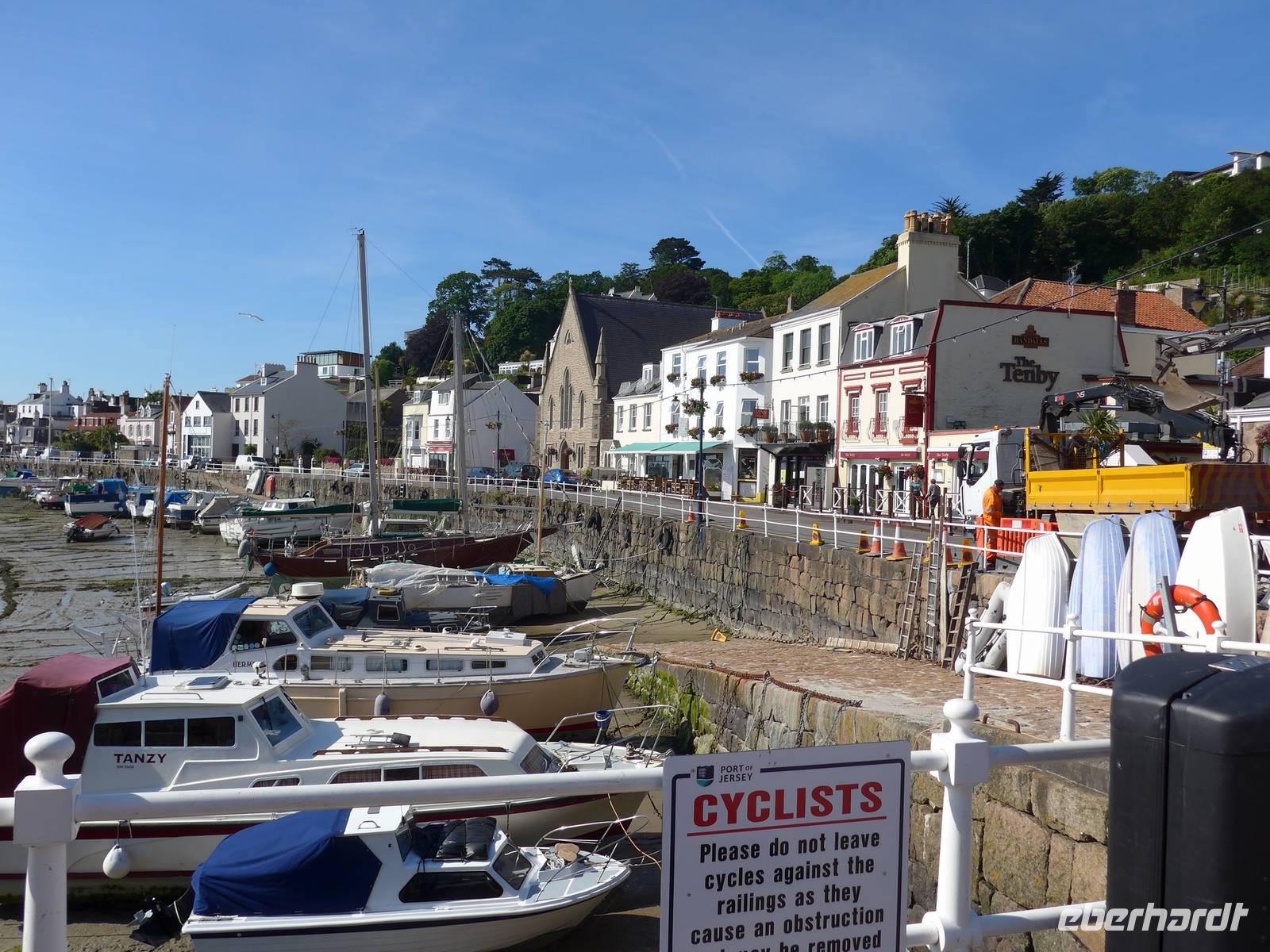 Nach dem Frühstück erwartete uns schon unsere Reiseleiterin Franziska und wir fuhren zum Hafen in St.Helier. Während sie unsere Fährtickets besorgte, gingen wir auf die Hafenmauer und genossen den herrlichen Blick auf den Hafen, die Stadt und das Elizabeth Castle. Die Fährüberfahrt verlief bei ruhiger See entlang der Südküste von Jersey und nach einer knappen Stunde erreichten wir die Insel Sark. Als Wanderer nahmen wir den Fußweg hinauf nach Sark, während die mitgereiste Single-Gruppe von Eberhardt-Travel mit einem Traktor nach oben gebracht wurde. Franziska spazierte mit uns durch das "Zentrum" der Insel und zeigte uns die wichtigsten Gebäude. Leider war die Kirche nicht geöffnet und so konnten wir die herrlich bestickten Sitzkissen nur durchs Fenster bestaunen. Es folgte der Besuch der Seigneurie mit dem wunderschönen Garten, dem Taubenturm und der Apfelpresse. Der Spaziergang zum Windows in the Rock bescherte uns einen tollen Blick auf die Nachbarinseln Herm und Guernsey. Nach der Mittagspause wanderten wir entlang der Steilküste zum La Coupee und hinüber nach Little Sark. Pflanzen wie der Venusnabel, Natternköpfe oder die Pendelsegge haben uns begeistert. Die Rückfahrt fand bei Ebbe statt und so mußten wir viele Stufen zur Fähre hinunter steigen und in St.Helier wieder viele Stufen hinauf.