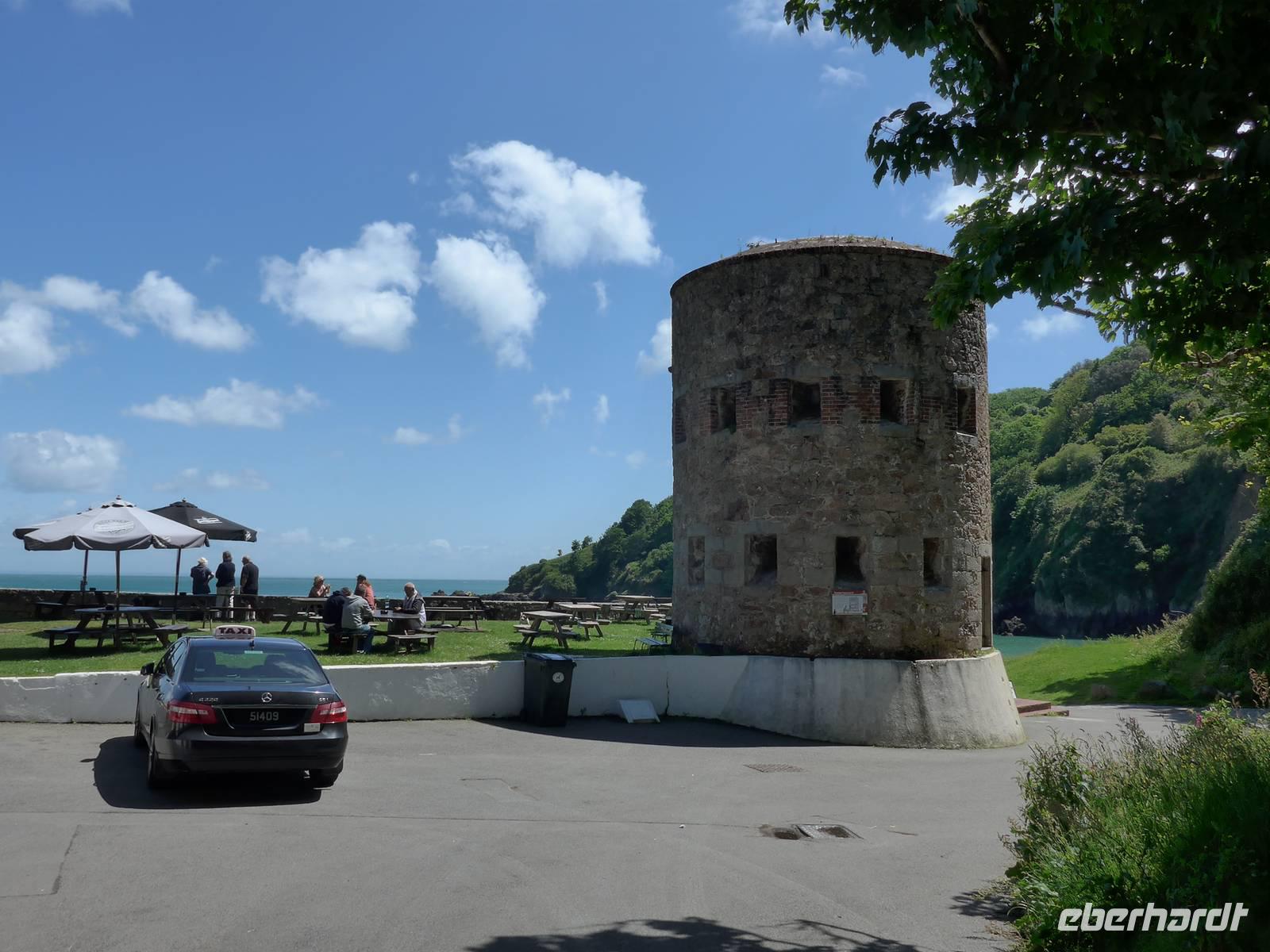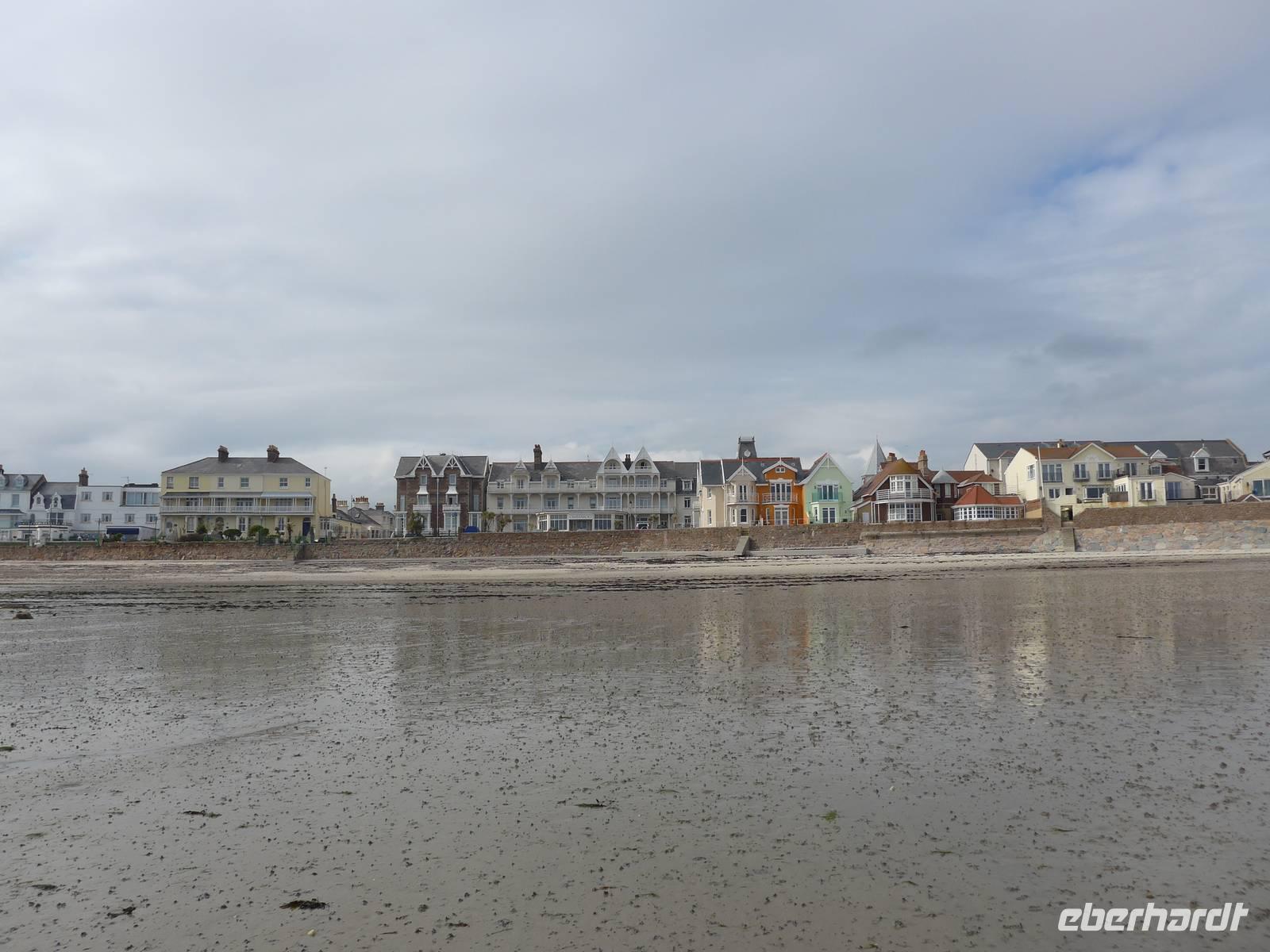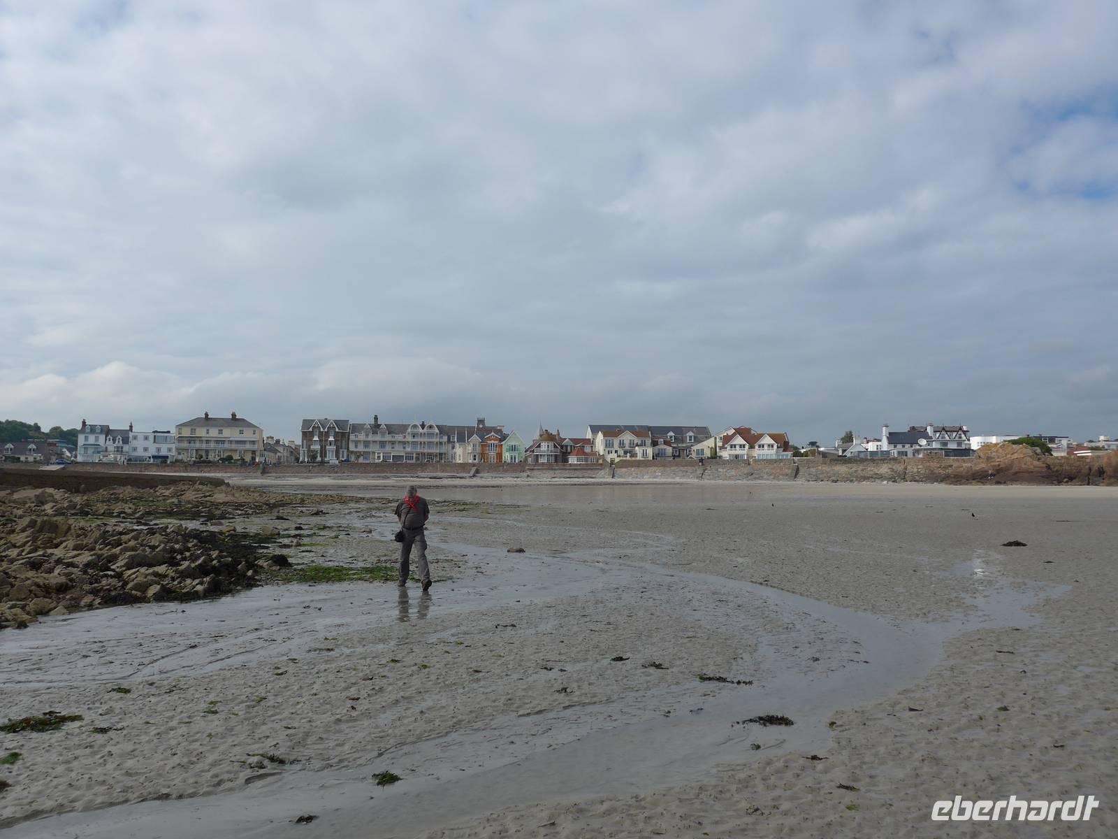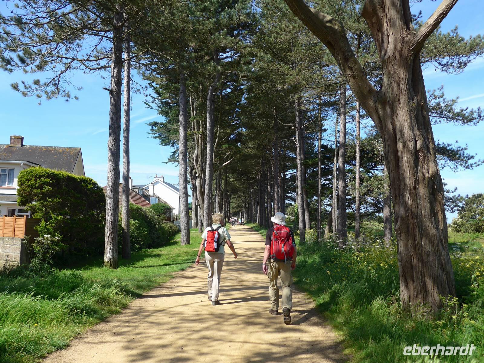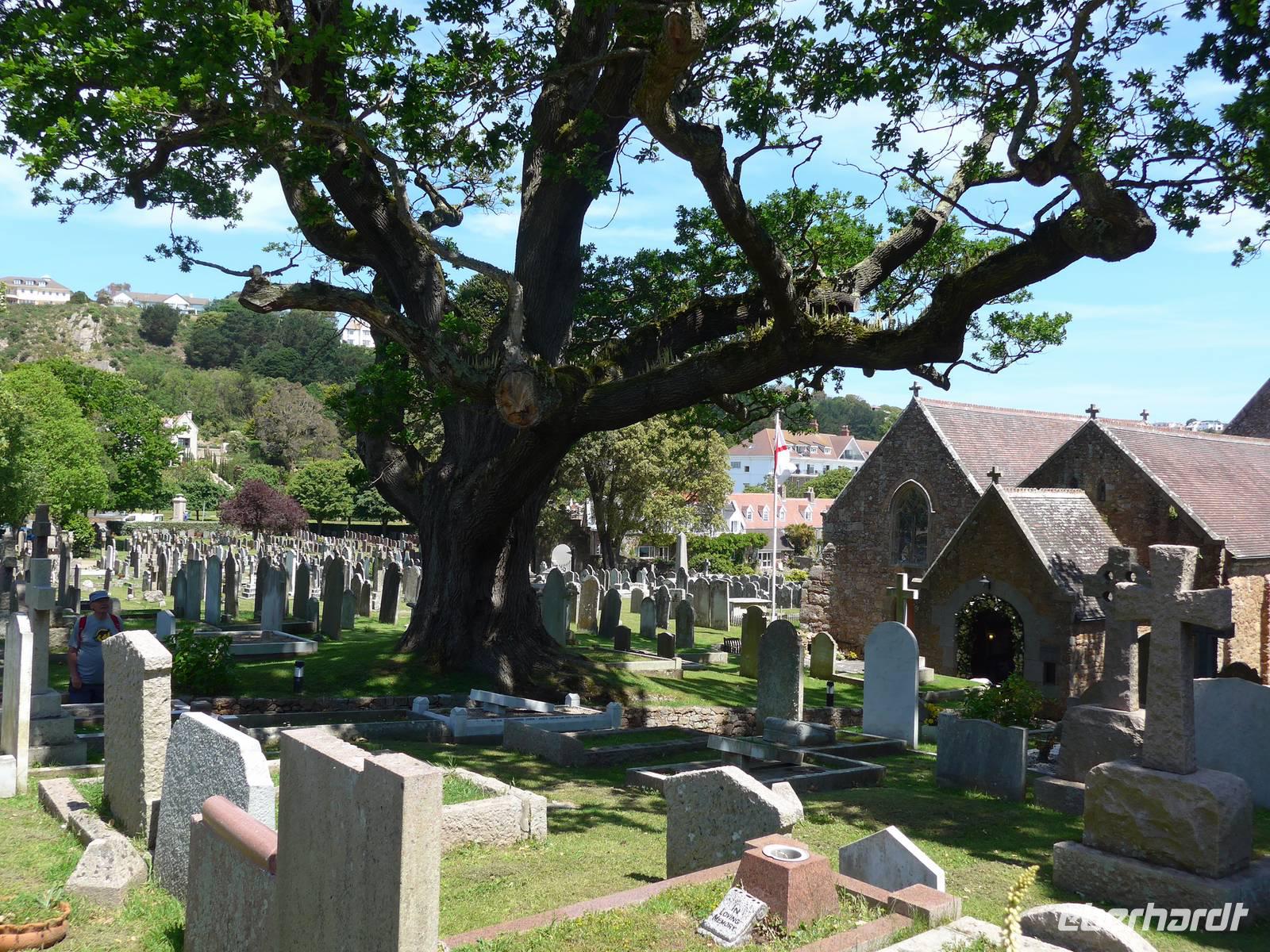 Diesmal holte uns Ernst ab und fuhr uns nach St.Aubin. Dort liefen wir auf dem Corbiere Walk, dem wohl bekanntesten Wanderweg von Jersey, bis zum Leuchtturm im Meer. Von 1884 bis 1936 fuhr auf dieser Strecke der Zug. Man entfernte die Gleise und legte diesen herrlichen Weg über 6 km an. Am Leuchtturm war leider schon zu viel Wasser, um hinüber zu laufen und so genossen wir nur den schönen Anblick. Nun folgte in aussichtsreicher Weg an der Südküste bis nach St. Brelades. Es ging oft über Stufen hinunter und hinauf und wir kamen an einer Wasserentsalzungsanlage und an der Wetterstation vorbei. In St.Brelades besuchten wir die berühmte Fishermans Chapel, die Pfarrkirche und den Friedhof mit den schiefen Grabsteinen. Die Bucht von St.Brelades mit dem langen Sandstrand war schon zu sehen und es war nicht mehr weit bis zu unserer Mittagspause. Es war ein wunderschöner Platz zum Ausruhen, Baden oder etwas Essen. 14 Uhr starteten wir zur letzten Etappe nach St.Aubin. Leider führte der Weg fast ausschließlich über Strassen und Green Lanes. In St.Aubin war Zeit zum Einkehren und ein Teilnehmer lief in unser Hotel zurück. Ernst holte uns wieder ab und brachte uns ins Hotel zurück.