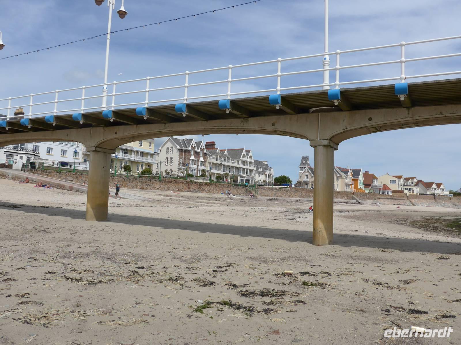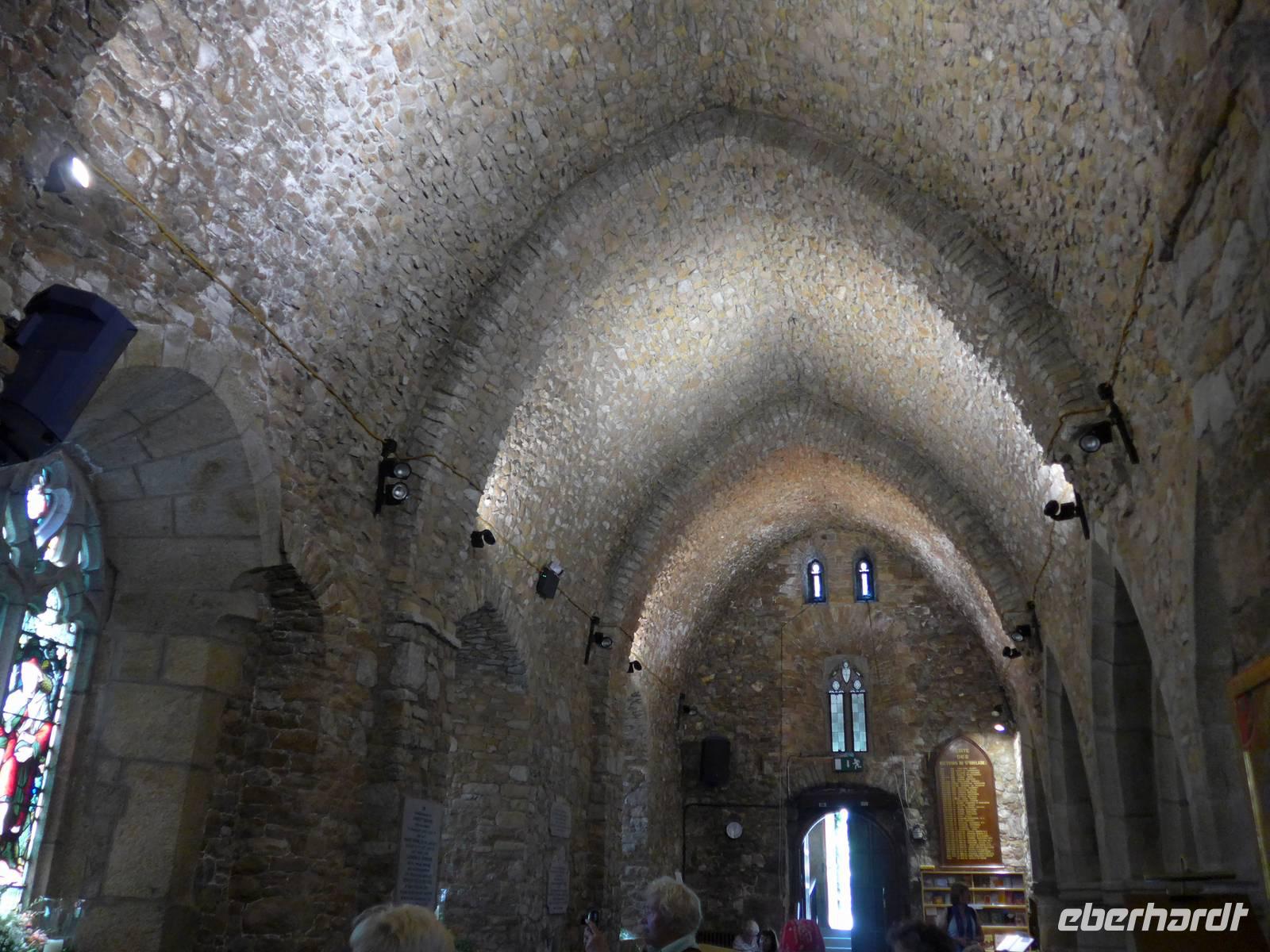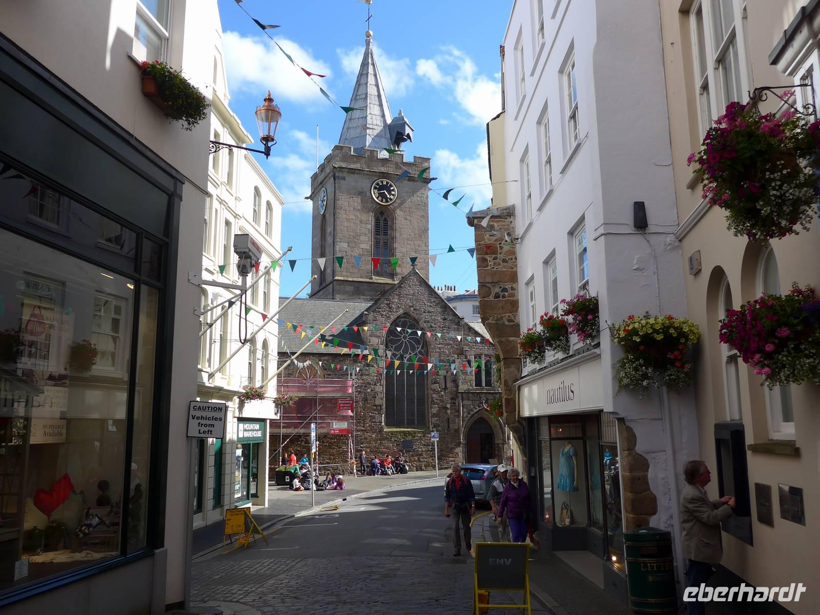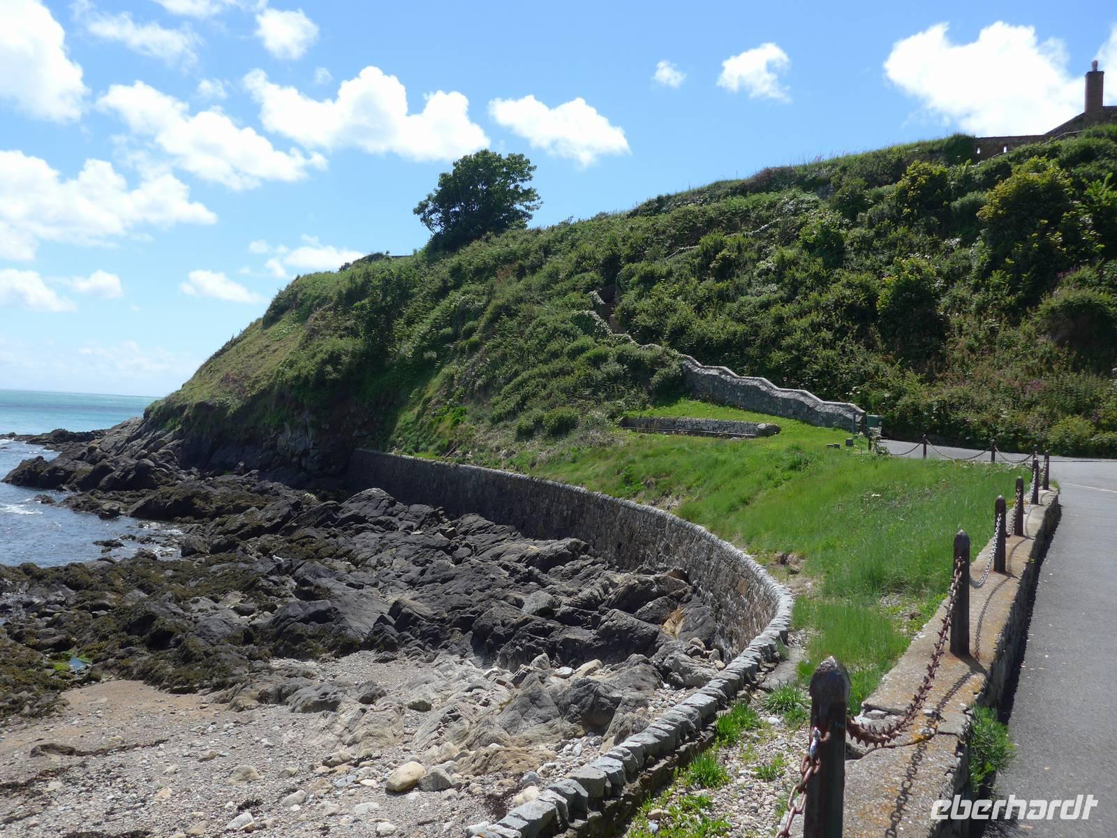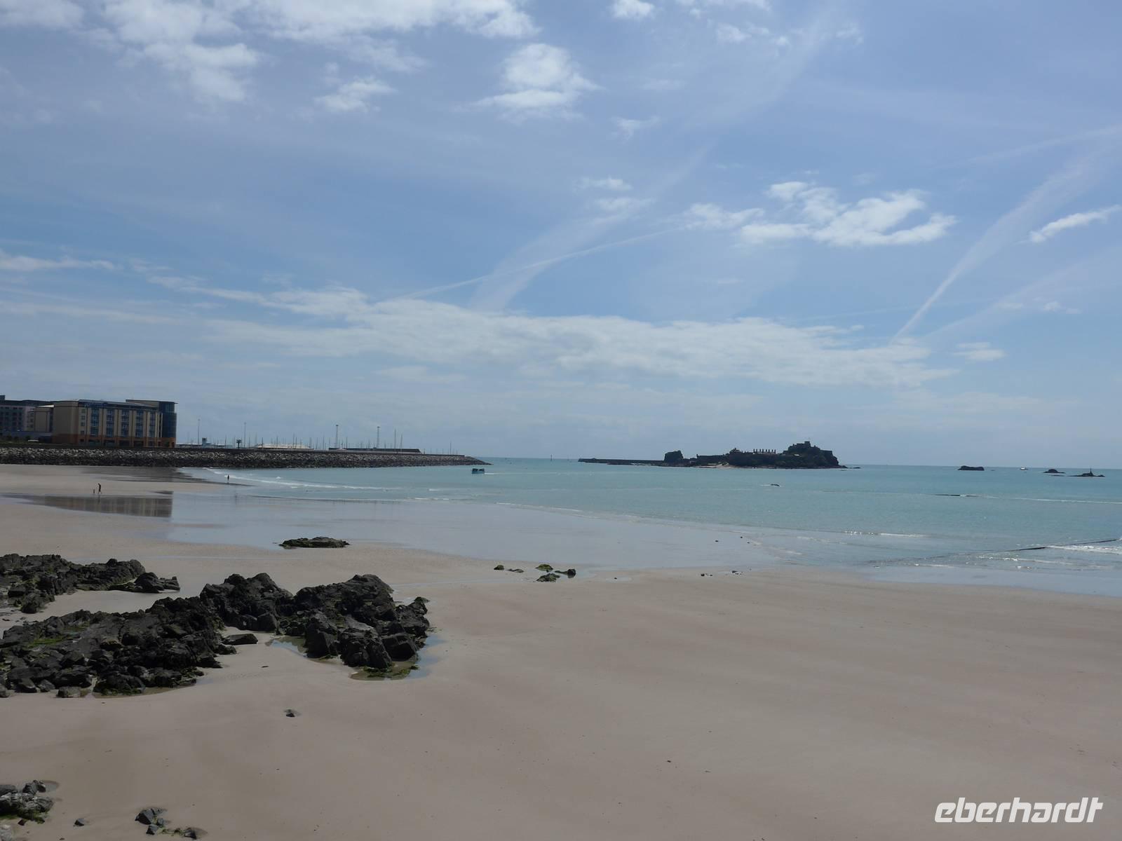 Diesmal holte uns Ernst ab und fuhr uns nach St.Aubin. Dort liefen wir auf dem Corbiere Walk, dem wohl bekanntesten Wanderweg von Jersey, bis zum Leuchtturm im Meer. Von 1884 bis 1936 fuhr auf dieser Strecke der Zug. Man entfernte die Gleise und legte diesen herrlichen Weg über 6 km an. Am Leuchtturm war leider schon zu viel Wasser, um hinüber zu laufen und so genossen wir nur den schönen Anblick. Nun folgte in aussichtsreicher Weg an der Südküste bis nach St. Brelades. Es ging oft über Stufen hinunter und hinauf und wir kamen an einer Wasserentsalzungsanlage und an der Wetterstation vorbei. In St.Brelades besuchten wir die berühmte Fishermans Chapel, die Pfarrkirche und den Friedhof mit den schiefen Grabsteinen. Die Bucht von St.Brelades mit dem langen Sandstrand war schon zu sehen und es war nicht mehr weit bis zu unserer Mittagspause. Es war ein wunderschöner Platz zum Ausruhen, Baden oder etwas Essen. 14 Uhr starteten wir zur letzten Etappe nach St.Aubin. Leider führte der Weg fast ausschließlich über Strassen und Green Lanes. In St.Aubin war Zeit zum Einkehren und ein Teilnehmer lief in unser Hotel zurück. Ernst holte uns wieder ab und brachte uns ins Hotel zurück.