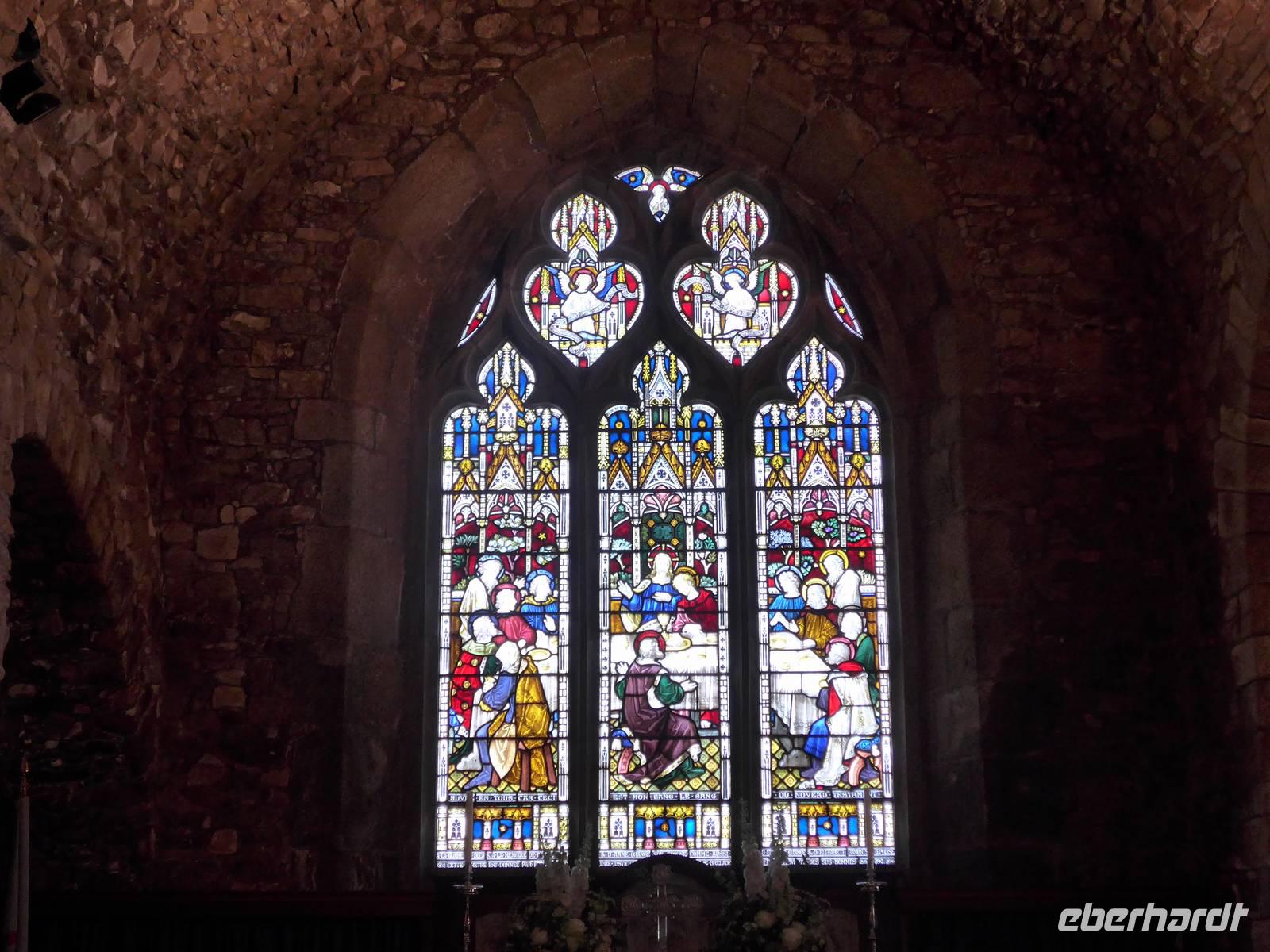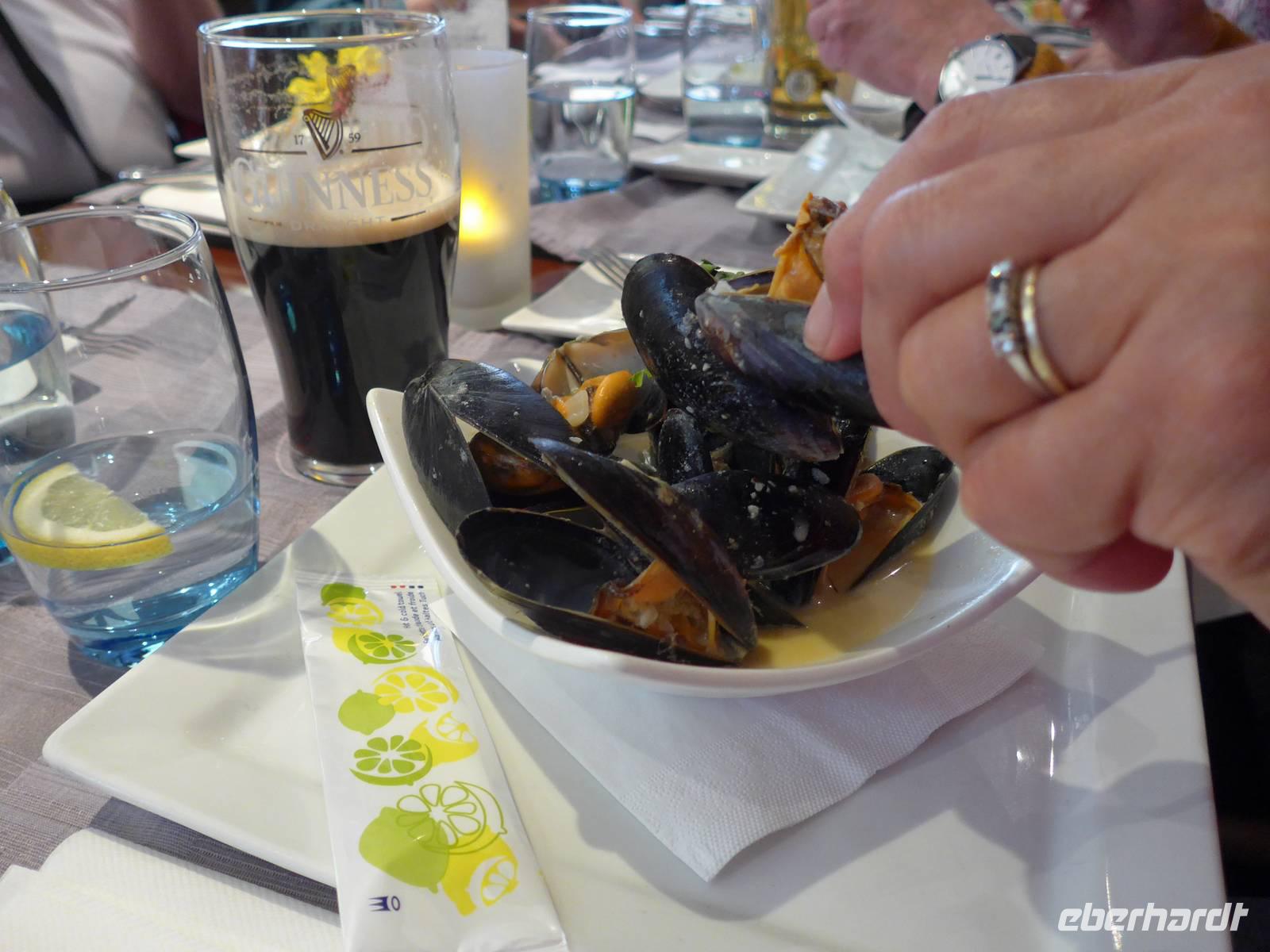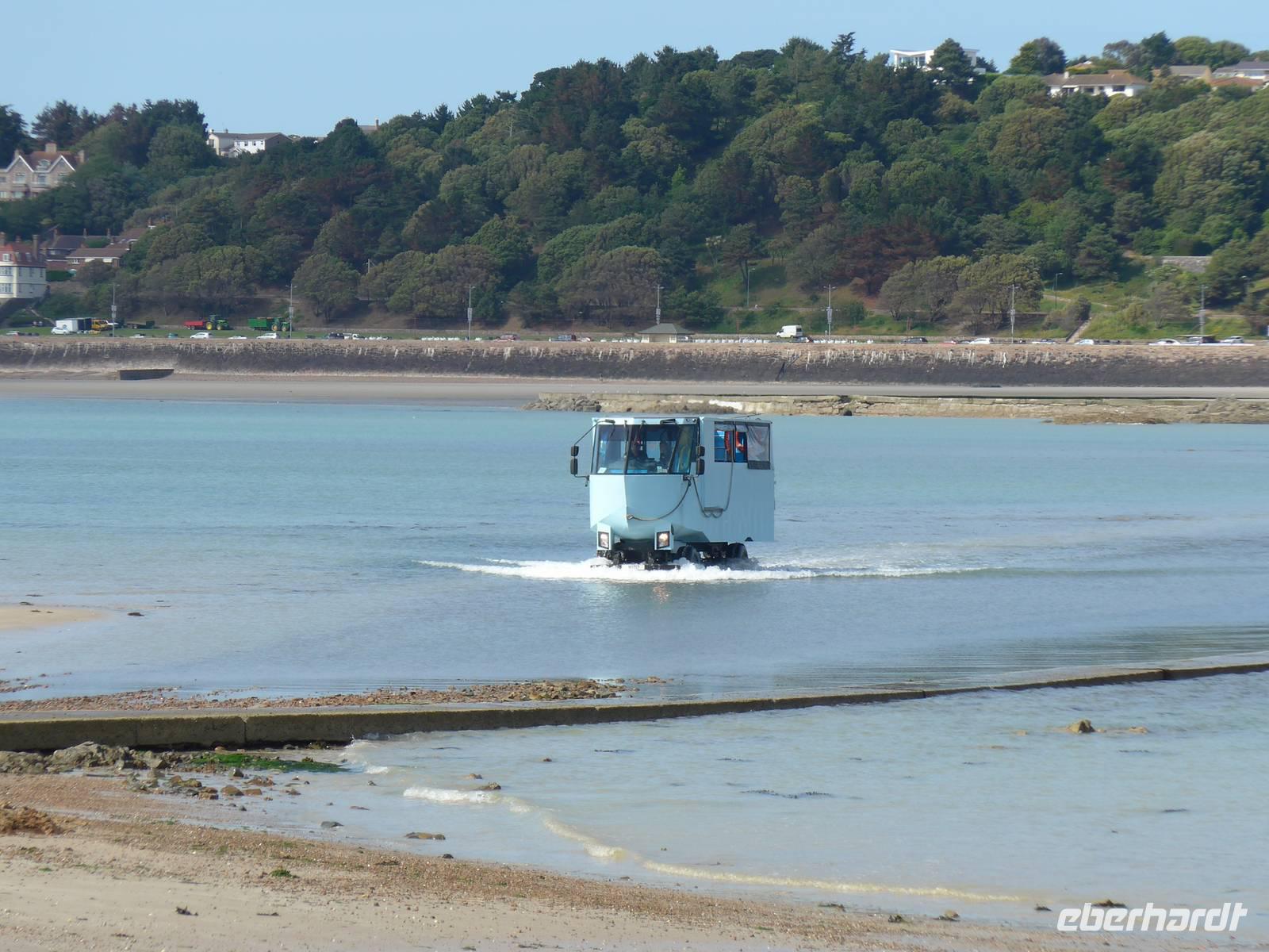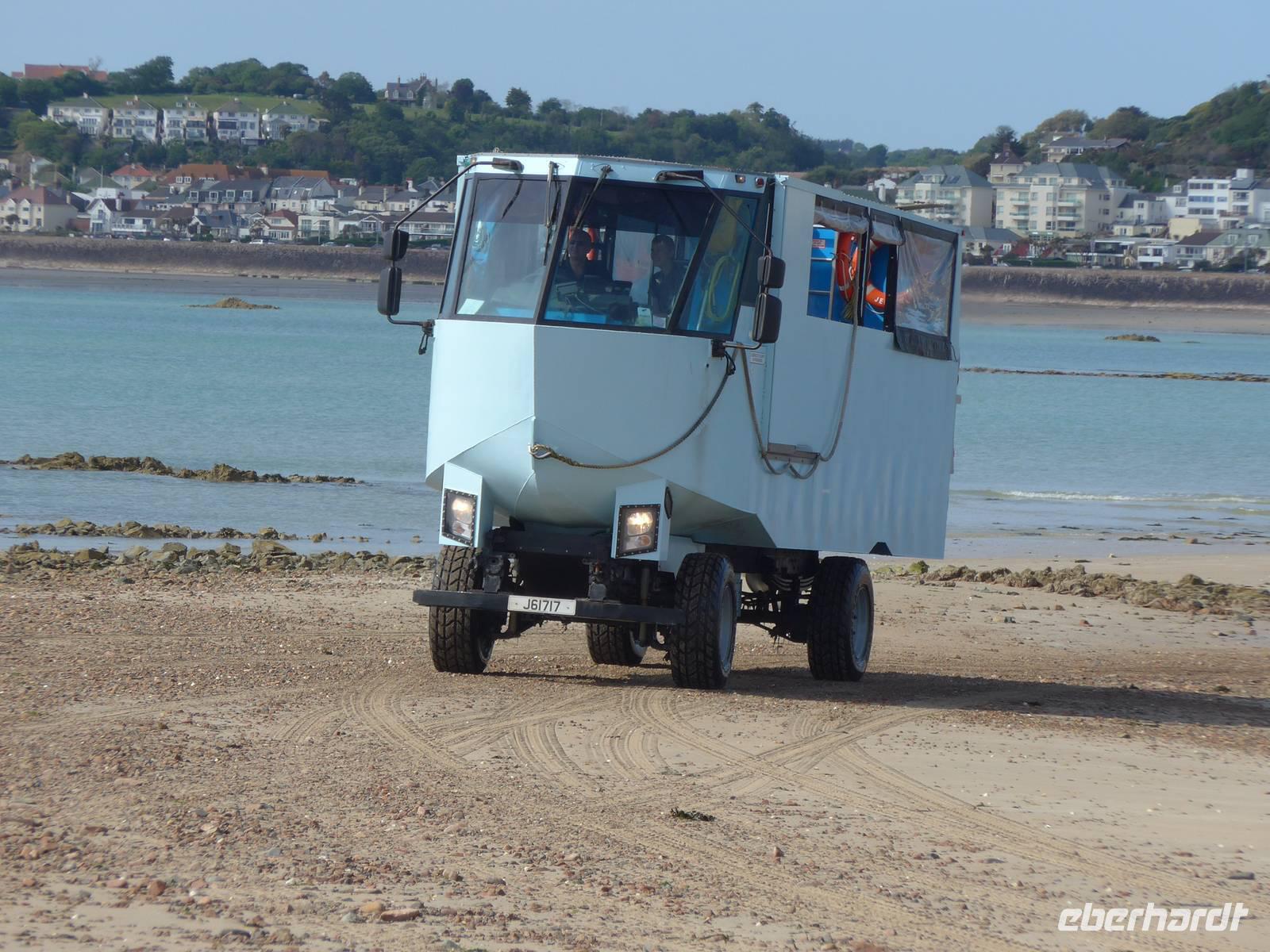 Wir fuhren mit Heidi bis zur Glaskirche St.Matthew´s. Die Kirche von 1840 wurde bei der Renovierung 1934 vom französischen Art-Deco-Künstler Rene Lalique in Glas neu gestaltet und ist einmalig. Dann begann unsere Wanderung hinein ins Water Works Valley bis zum Millenium Stein. Leider mußten wir auf der Staße laufen, weil wegen der starken Regenfälle in der Nacht der Wanderweg schlammig war. Dann öffnete uns Eberhard ein Tor und wir stiegen einen steilen Hang hinauf im Garten von Mrs.+Mr.Binney. Die Hausherrin erwartete uns oben und führte uns durch ihr Paradies. Das Anwesen ist seit 1967 im Besitz der Familie und sie haben es mit viel Liebe umgestaltet und zu dem gemacht, was es heute ist. Auf einer Bildtafel konnten wir sehen, wie die Umgestaltung erfolgte. Im Gartenteil, wo im Sommer Opern und Operetten gespielt werden, machten wir ein weiteres Gruppenfoto und Herr Greif spielte Mrs.Binney auf der Mundharmonika ein Lied. Unsere weitere Wanderung führte über Green Lanes zu herrlichen Cottages und schließlich ans Meer bei St.Aubin. Dort kehrten wir zu Mittag im "Goose Inn" ein, wo es 2 Essen zum Preis von einem gab. Auf der Uferpromenade ging es dann zum Elizabeth Castle. Für den Hinweg nahmen wir ein Amphibienboot -puddle duck genannt. Gemeinsam spazierten wir auf der Festung bis zum höchsten Punkt und verabredeten uns zum Zurücklaufen um 16.30 Uhr. Da hatte das Wasser den Fußweg durch das Watt freigegeben. Zurück zum Hotel brachte uns Heidi mit dem Bus. Das Essen für diesen Abend hatten wir schon 3 Tage zuvor ausgesucht und so gingen wir zu Fuß zum Atlantique Fischrestaurant im Zentrum von St.Helier. Wir waren mutig und probierten bis dahin Unbekanntes und wir wurden nicht enttäuscht. Es schmeckte sehr gut.