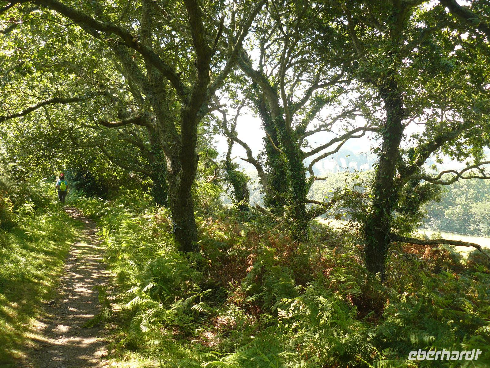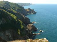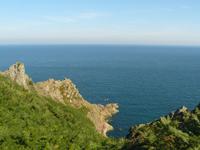 Die Wanderer starteten am windumbrausten Grosnez Castle. Unser erstes Ziel war die Bucht von Plemont. Wir hatten Glück, denn wir erreichten die Bucht bei Ebbe, was uns ermöglichte, eine Gezeitenhöhle mit Wasserfall zu erforschen und Seeanemonen zu suchen. Und natürlich zu baden. Was für eine herrliche Bucht! Da waren sich alle einig. Auf der nun folgenden Wanderung durch Farnwiesen hoch über der Küste küsste ein Gast den Boden, was aber zum Glück keine bleibenden Schäden verursachte und nach der Mittagspause in Greve de Lecq war er wieder fit. An einer kleinen Felsnadel und an hübschen Felsen mit Höhlen wanderten wir vorüber bis zum Devil's Hole, dem Teufelsloch. Uns erwartete ein Teufel aus Metall in einem Tümpel. Früher bestand der Teufel aus der umgearbeiteten Galionsfigur eines gestrandeten Schiffes. Und auch an diesem Abend erwartete uns wieder ein schöner Sonnenuntergang und ein herrliches Essen im Hotel.