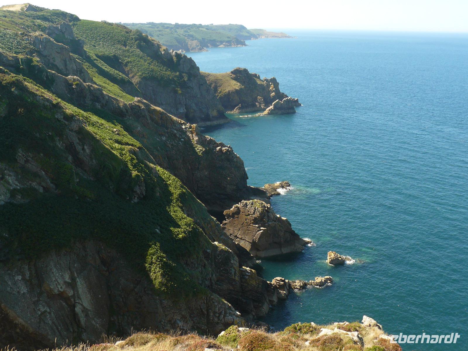 Wilde Felsenküste, feine Sandstrände, herrliche Blumengärten, blitzblauen Himmel und eine Wasserfärbung wie in der Karibik - wir hatten Glück auf unserer Jerseyreise!