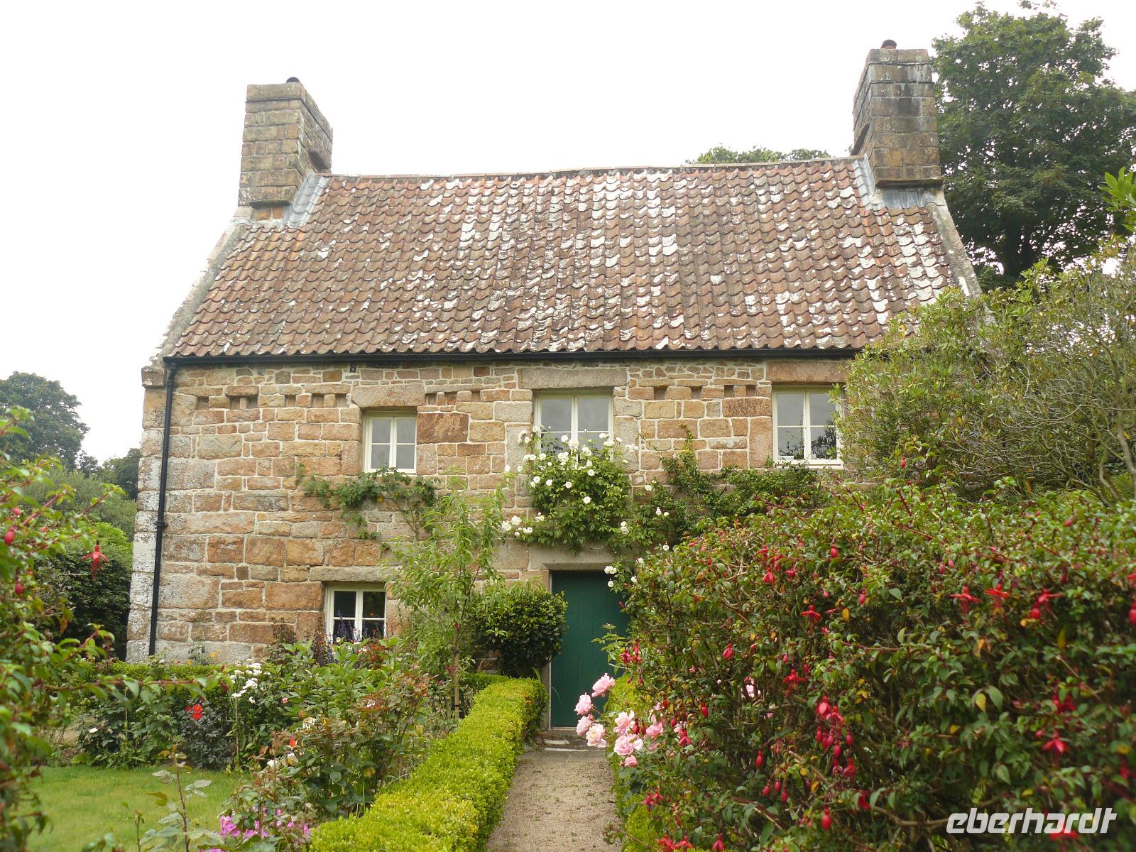 Am ersten Morgen mussten wir alle Würmer fangen - die Fähre nach Sark wartete nun mal nicht und so saßen wir alle schon um 7 Uhr am Frühstückstisch. Das Wetter war herrlich und schon kurz nach 10 Uhr erreichten wir diese malerische kleine Insel. Am Hafen trennten wir uns: Die Rundreisler zogen mit Heidi, der örtlichen Reiseleiterin, los und ließen sich per Traktor auf die Hochfläche befördern. Die Wanderer gingen mit mir zu Fuß zu zwei Aussichtspunkten und dann runter an den Strand der Dixcard Bay. „Ach was ist das schön hier, haben wir hier nicht auch so viel Zeit ins Wasser zu gehen...?". Wandern war das eine Hobby meiner Gäste, dicht gefolgt vom Baden. Ein Urlaubstag ohne Bad im Meer ist wie ein Himmel ohne Sterne, musste ich lernen. Es hatte viele Sterne auf unserer Reise. Eine Mittagspause legten die Wanderer in einem hübschen Teegarten in Little Sark ein und nachmittags folgten dann, nachdem wir La Coupee bewundert hatten und uns auf verwunschenen Pfaden durch das Inselinnere gearbeitet hatten, ein Abstecher zum Window in the Rock und ein Besuch des wunderschönen Gartens der Seigneurie. Vor der Kirche lag ein Schmusetiger in der Sonne, miaute und schnurrte kräftig und am Hafen trafen wir wieder auf die Rundreisler, die uns am Nachmittag schon einmal begegnet waren - Sark ist überschaubar und man trifft sich immer wieder. Im Abendlicht saßen wir auf dem Deck des Ausflugschiffes und ließen uns den Wind durch die Haare wehen und tauschten Erfahrungen aus, denn auch die Rundreisler hatten ein straffes Programm hinter sich gebracht mit ungewöhnlich viel Bewegung für eine Rundreise. Aber auf Sark gibt es keine Autos, die Pferde hatten gerade Erholungsurlaub und auch die Traktoren wurden andernorts gebraucht - da bleiben eben nur die eigenen Beine oder Fahrräder übrig.
