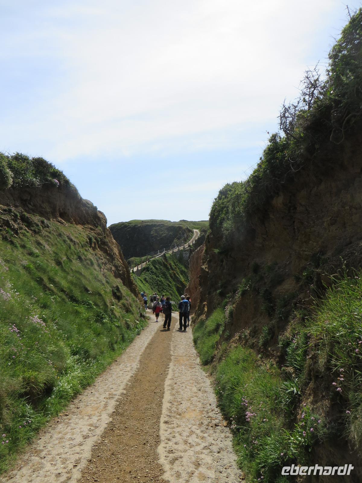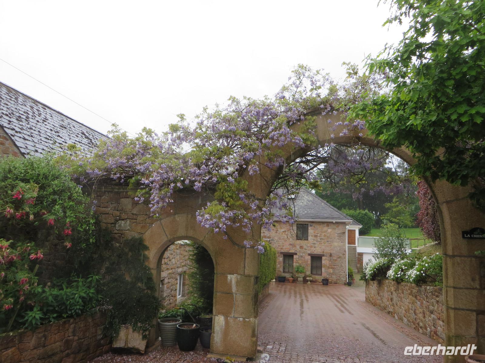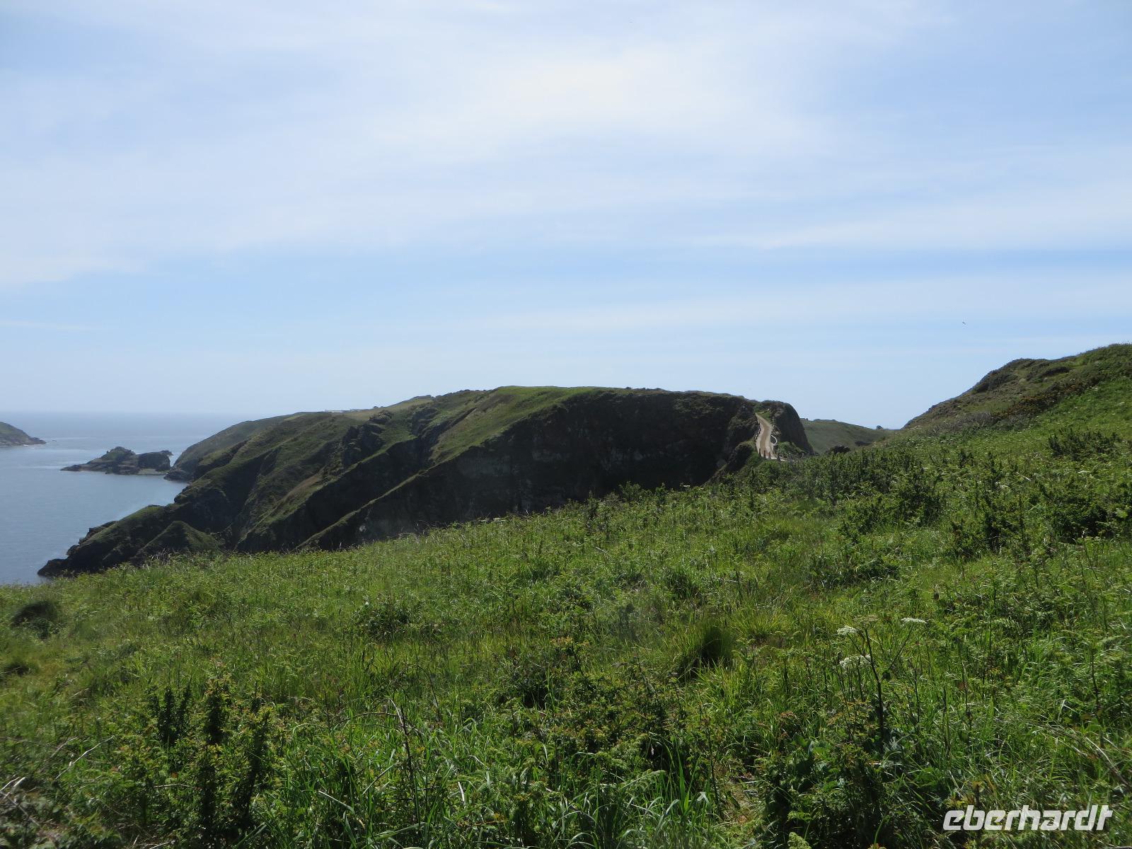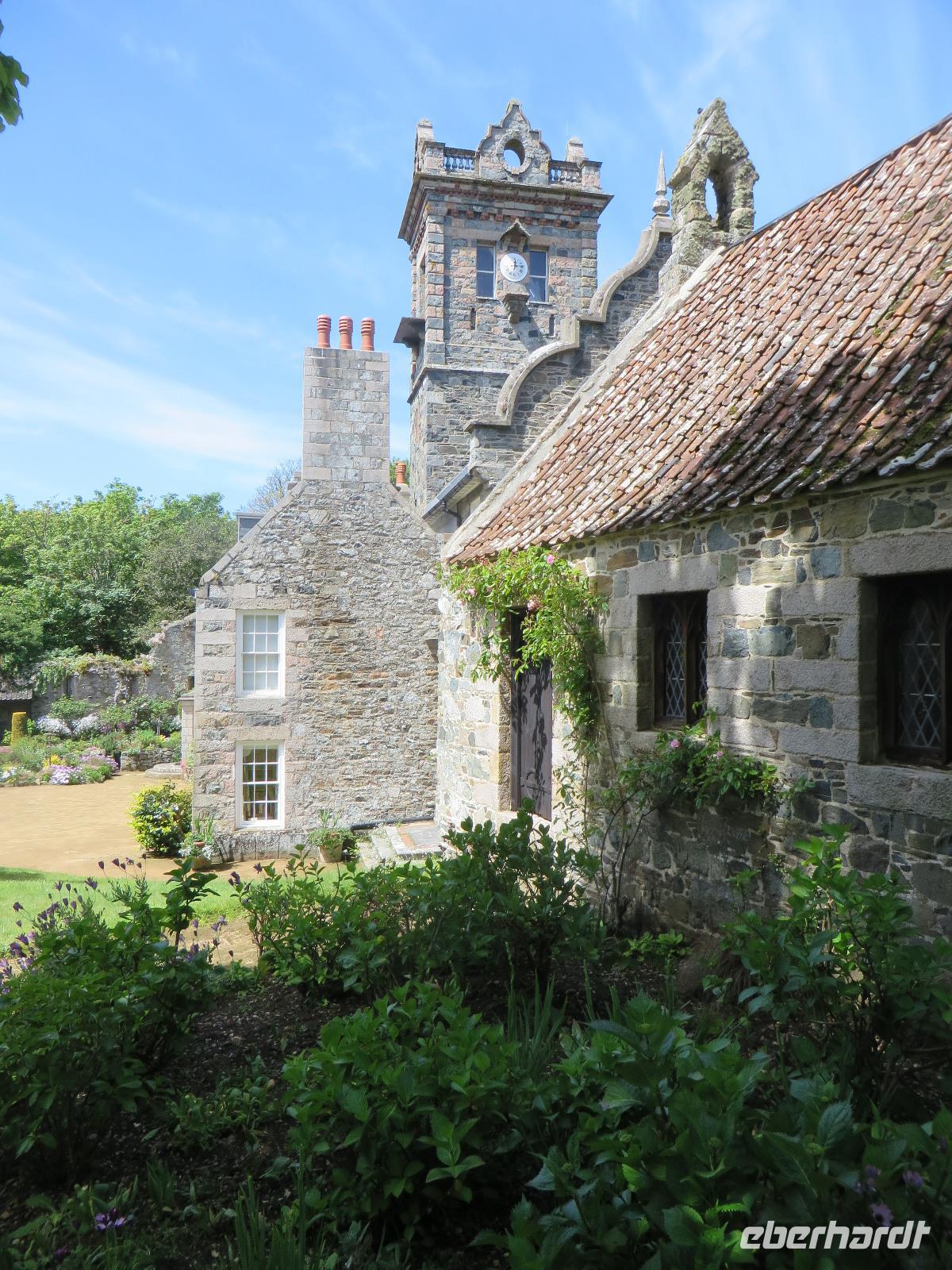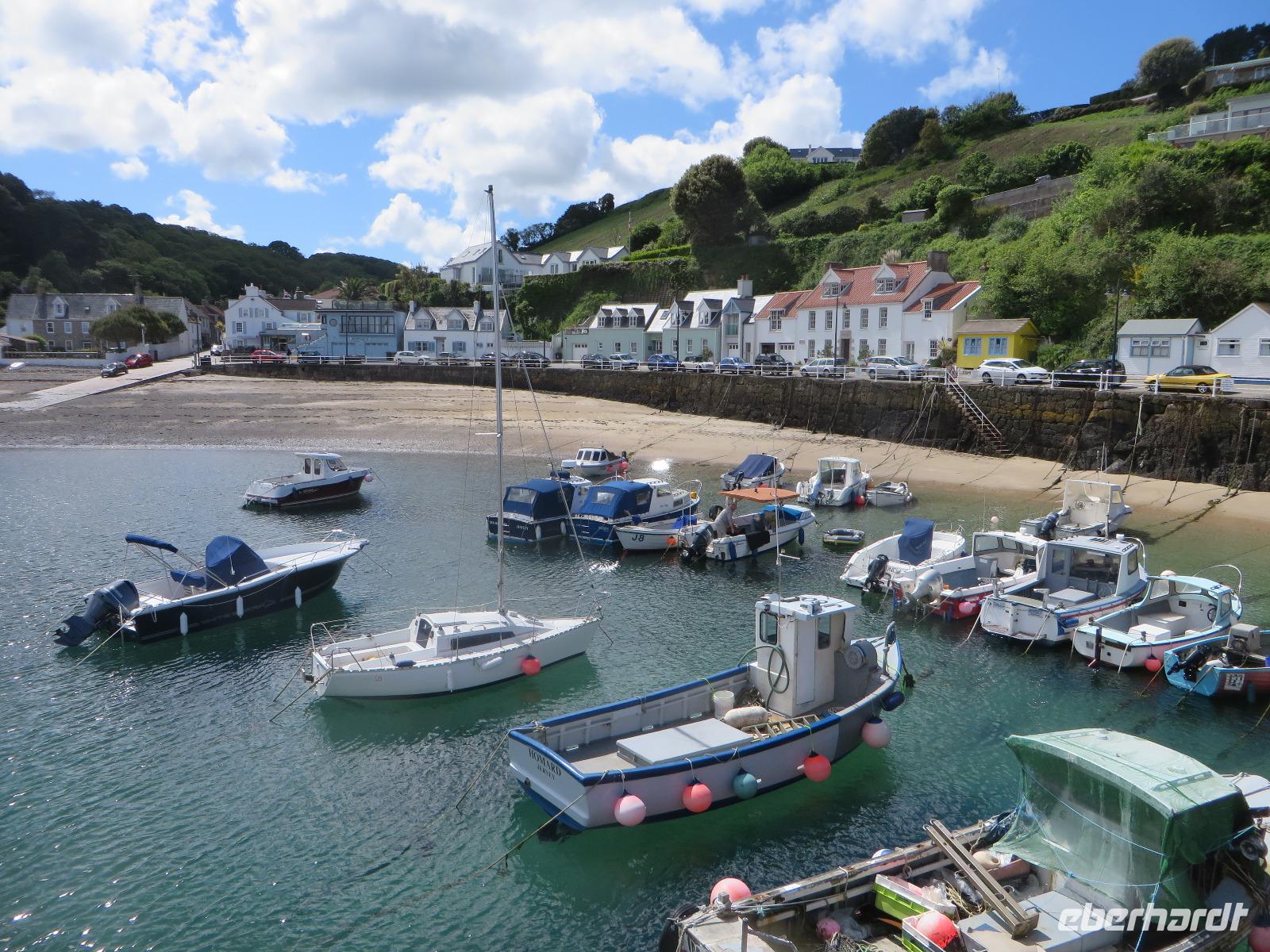Die kurze Nacht von gestern haben wir locker aufgeholt und nach einem reichhaltigen Frühstück brechen wir mit Christel auf zum Hafen, denn heute wollen wir die Insel Sark kennen lernen. Gemeinsam mit der Rundreisegruppe fahren wir circa eine Stunde mit der Fähre auf die nur 4,5 Quadratmeilen große Insel. Das Wetter ist uns auch heute hold, und so landen wir bei bestem Sonnenschein an. Hier trennen sich unsere Wege von der Rundreisegruppe und wir wandern zunächst hoch ins niedliche Dorf. Ganz Sark hat nur etwa 600 Einwohner, die in tollen alten Häusern leben. Wir laufen durch das Dorf zur Gartenanlage von „La Seigneurie". Hier gibt es wunderschön angelegte Blumenbeete und alte, zum Teil noch aus der Viktorianischen Zeit stammende, Gewächshäuser, eingebettet in das historische Ambiente des alten Herrschaftssitzes. Nach einem leckeren Mittagessen wandern wir entlang der Klippen nach „La Coupee", die Verbindung von Sark und Little Sark. Unterwegs machen wir immer wieder Halt, um die faszinierende Landschaft fotografisch festzuhalten. Die komplett Autofreie Insel hat uns in ihren Bann gezogen! Mit einem langen Schlenker durch die Wiesen und das niedliche Dorf gelangen wir zurück zur Fähre und setzen wieder über nach Jersey. Wir staunen beim Abendessen übereinander, wie viel Farbe wir heute bekommen haben!