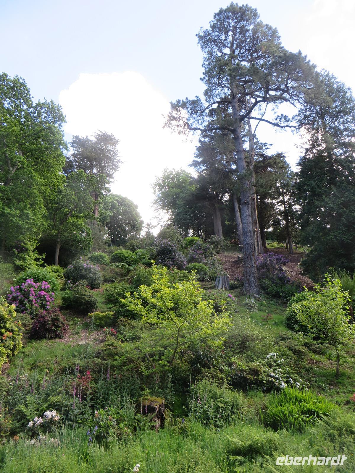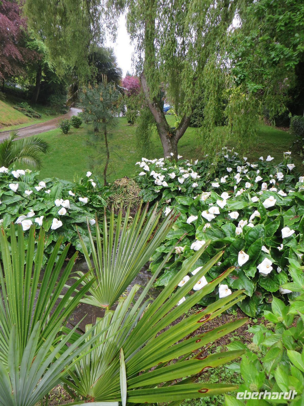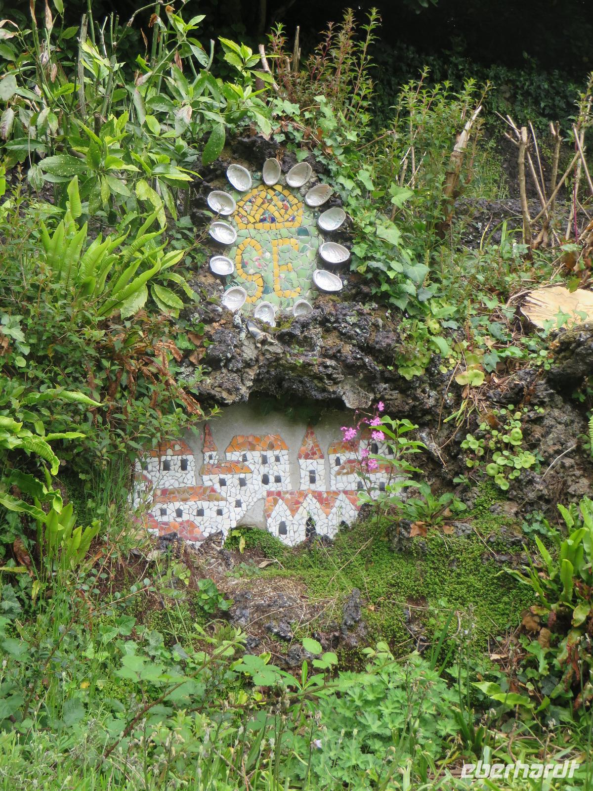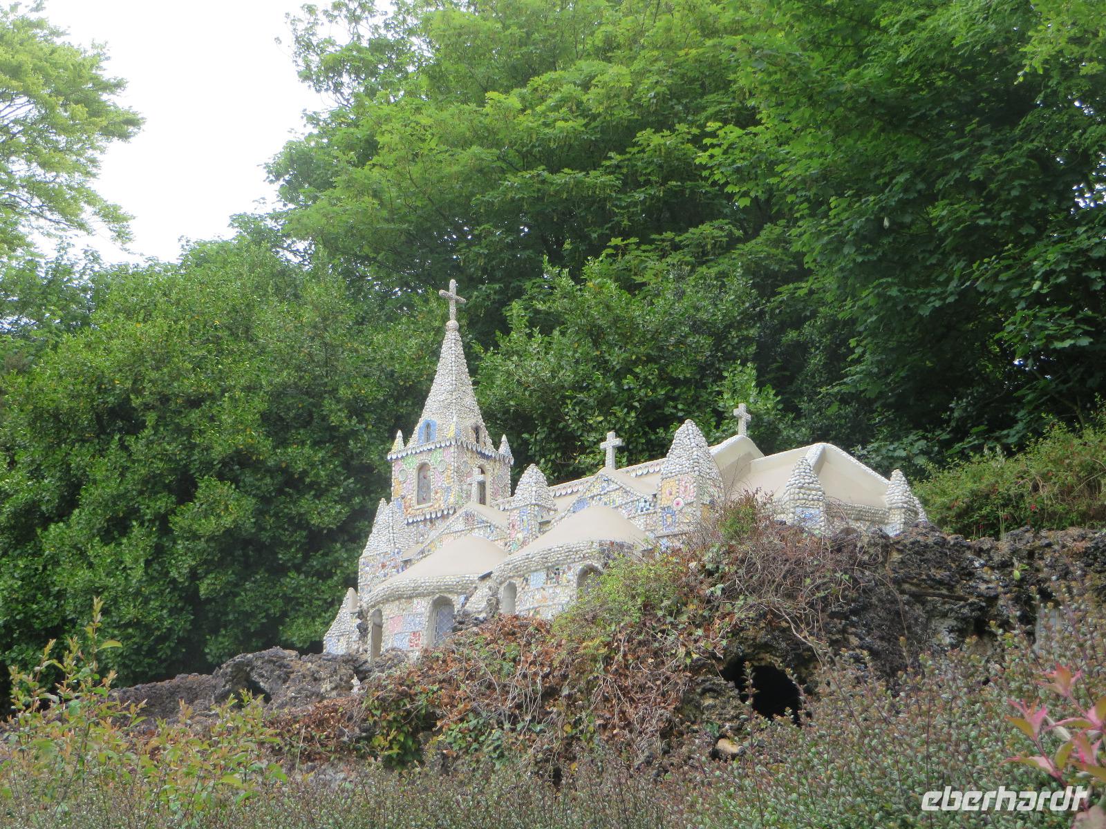 Ernst sollte Recht behalten - schon am Morgen ziehen dicke Regenwolken auf und es kommen immer wieder Schauer runter. Wir sind gut vorbereitet und mit der vollständigen Regenausrüstung geht es los ins Landesinnere. Zunächst halten wir an der Glaskirche und schauen uns diese an. Der Altar und vieles weitere in der Kirche wurde aus Glas gegossen, ein imposanter Anblick! Anschließend geht es los, auf in die Wälder rund um St. Helier. Trotz des Regens ist es sehr warm, und wir sind begeistert von der (sehr begründeten) sehr grünen Natur. So sehen wir unterwegs ein riesiges Feld voller gelber Schwertlilien in voller Blüte und kommen an Gärten vorbei, in denen unzählige Callas die Grundstücke schmücken. Wahnsinnig viel Arbeit steckt in diesen wunderschönen Gärten. Wir weichen nun dennoch auf die „Green Lanes", die schmalen, verkehrsberuhigten Straßen aus, es ist einfach zu nass mittlerweile. In St. Lawrence angekommen treffen wir auf Christels Sohn, der uns auf eine wärmende Tasse Tee in sein Haus einlädt. Wir beschließen, dass wir die Wanderung abkürzen werden, denn obwohl es warm ist, geben die ersten Jacken und Schuhe dem intensiven Regen nach. Weiter geht es entlang der vielen Weiden und unter wunderschönen alten Bäumen hindurch Richtung „War Tunnels", die Kriegstunnel, die die deutschen Besatzer in die Felsen haben treiben lassen. Hier machen wir eine längere Mittagspause und trocknen ein wenig, und nehmen im Anschluss den Bus zum Elisabeth Castle. Wir fahren mit dem „Puddle Duck", dem Amphibienfahrzeug, zur Festung hinaus. Bereits im 6. Jahrhundert war hier das erste Kloster, bevor es zu einer Abtei wurde und anschließend durch Queen Elisabeth die Erste zu einer Festung ausgebaut wurde, lernen wir in einer Zeitreise vom ansässigen Mönch. Von der Festung aus laufen wir zurück zum Ufer, denn mittlerweile ist Ebbe. Heidi holt uns ab und fährt uns zurück zum Hotel. Obwohl es so viel geregnet hat, haben wir die Wanderung wirklich genossen und schwärmen unseren Mitreisenden der Rundreisegruppe von unserer tollen Tour vor! Hoffentlich sieht das Wetter für morgen, da geht es nach Guernsey, besser aus!