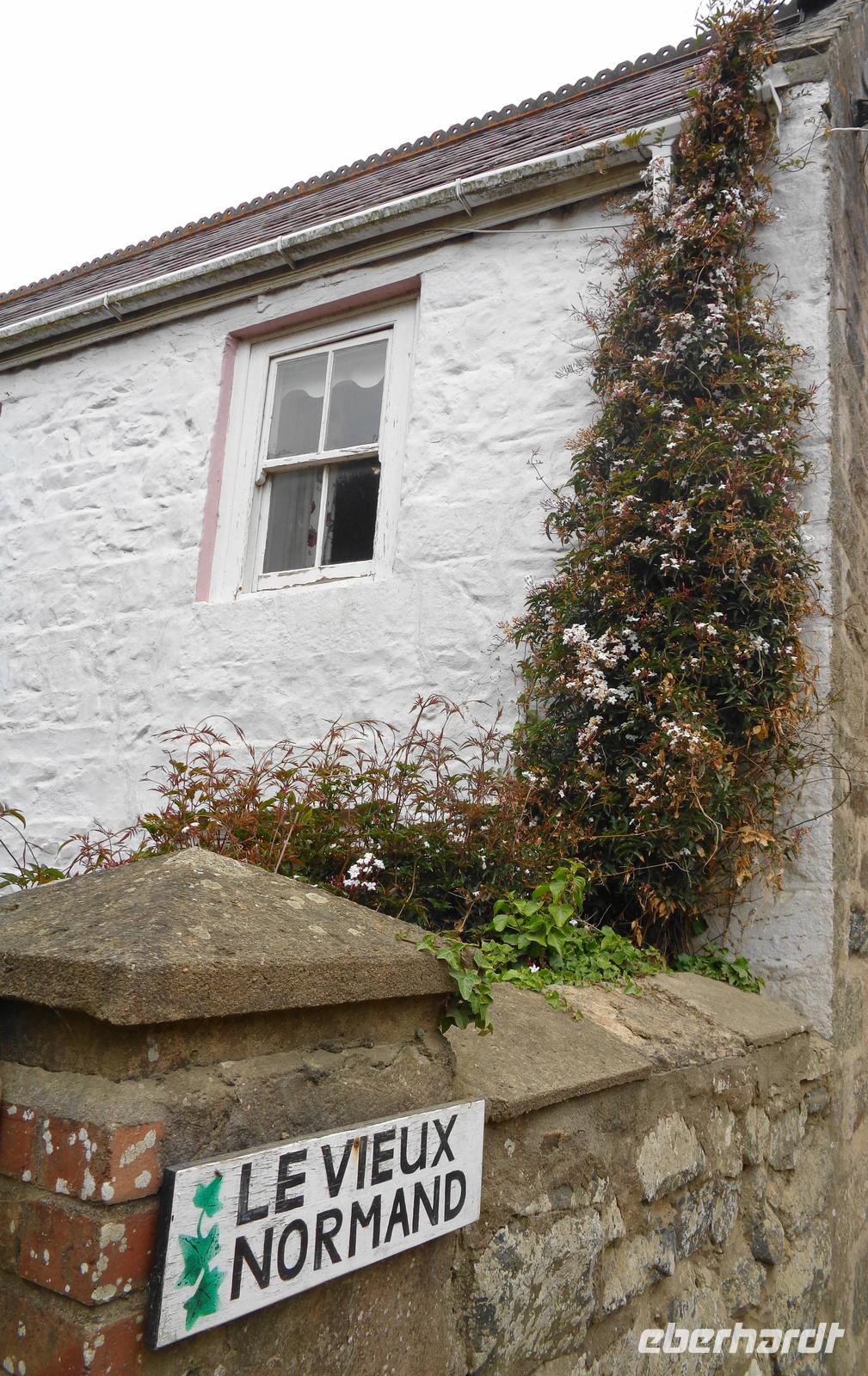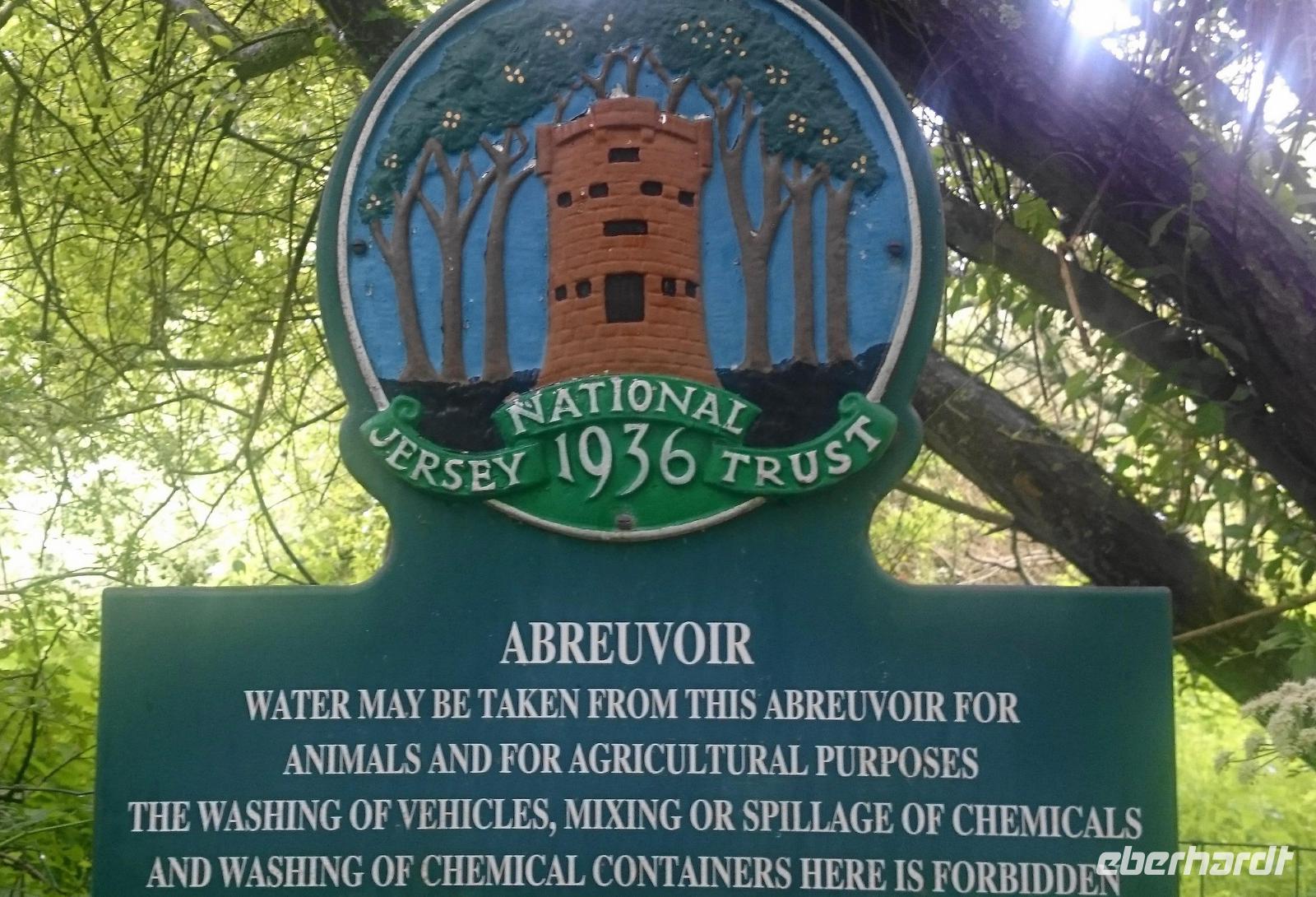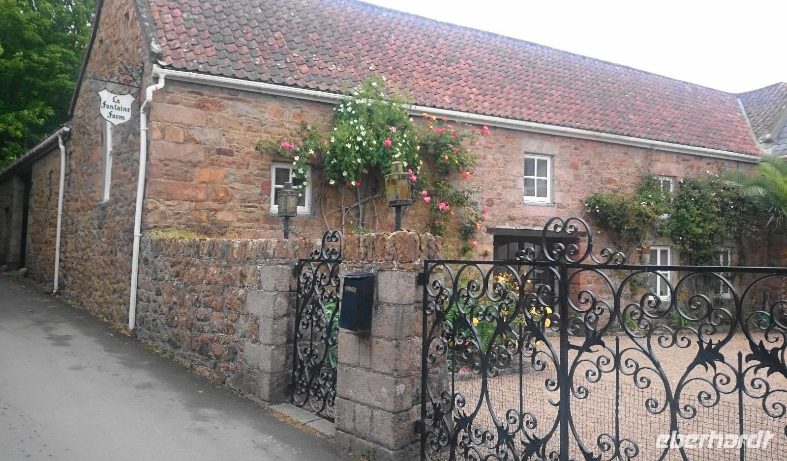 Auf unserer heutigen Wanderung entdeckten wir die grüne Mitte von Jersey. Zunächst wanderten wir nordwärts in einem lieblichen, grünen Tal, dem „Waterworks Valley", wo große Wasserreservoirs die Wasserversorgung der Insel sicherstellen. Hier sahen wir auch den von der Gemeinde St. Lawrence zur Feier der Jahrtausendwende errichteten „millenium stone". Eine große, aus Weiden geflochtene Kröte am Wegesrand erinnert daran, dass die Einwohner von Jersey auch „crapauds" (Kröten) genannt werden, da Jersey die einzige der Kanalinseln ist, auf der Kröten leben. Im Gegenzug werden die Einwohner von Guernsey von den Jerseyanern despektierlich „donkeys", also „Esel" genannt. Wir wanderten auf schmalen Asphaltstraßen, wo die maximal erlaubte Geschwindigkeit 15 Meilen beträgt und kamen an der jahrhundertealten „Morel Farm" vorbei. Hier kann man noch den alten „Marriage Stone" mit den Initialen „RLG" bewundern. Das im Inselstil ganz aus Granit erbaute „Le Rat Cottage" und ein altes „Abreuvoir", eine Viehtränke, boten uns willkommene Fotomotive. Viele der historischen Gebäude der Insel gehören dem „National Trust of Jersey", der sich um deren Erhalt und auch um die Pflege der einzigartigen Naturlandschaft auf der Insel kümmert.