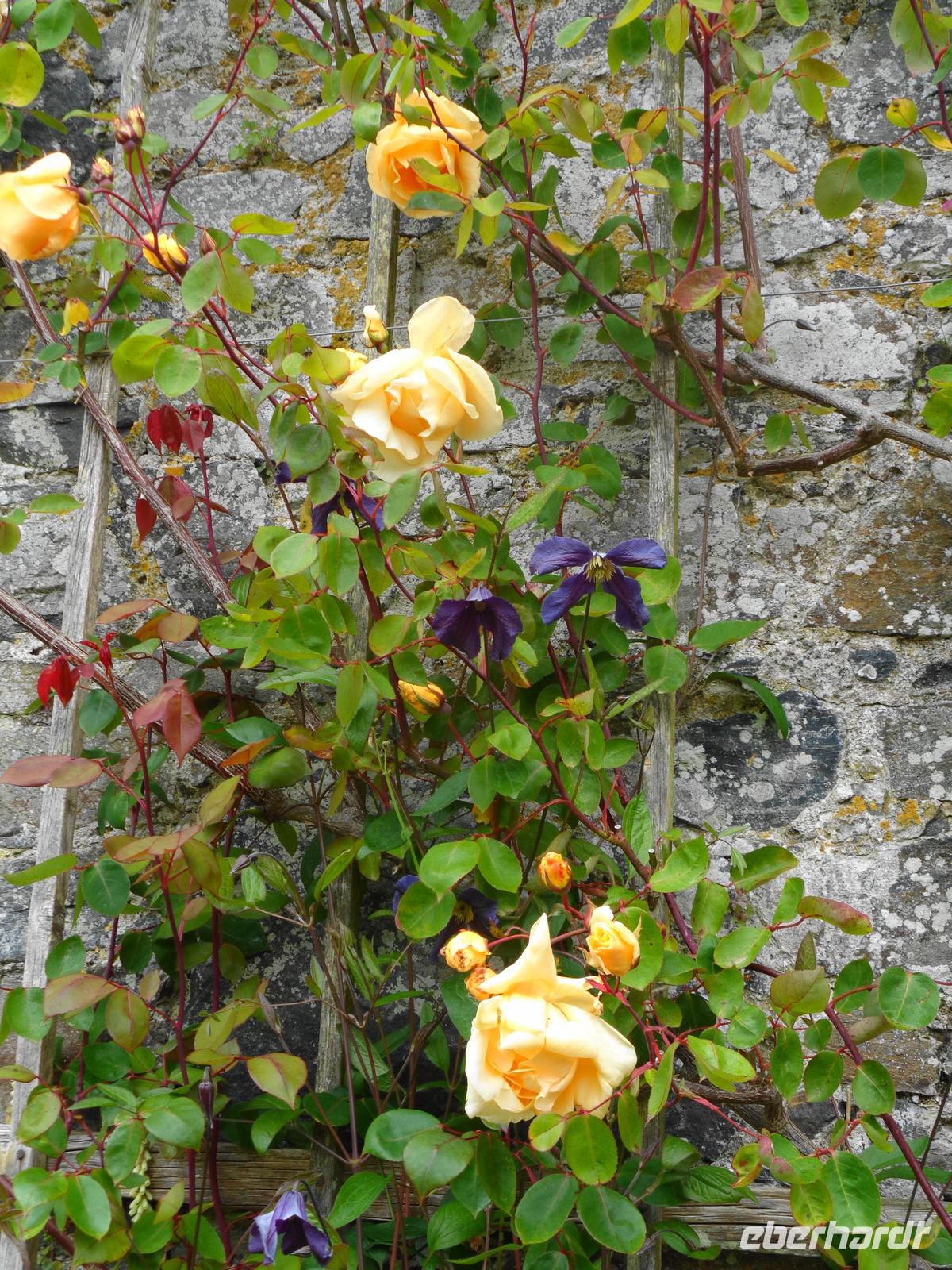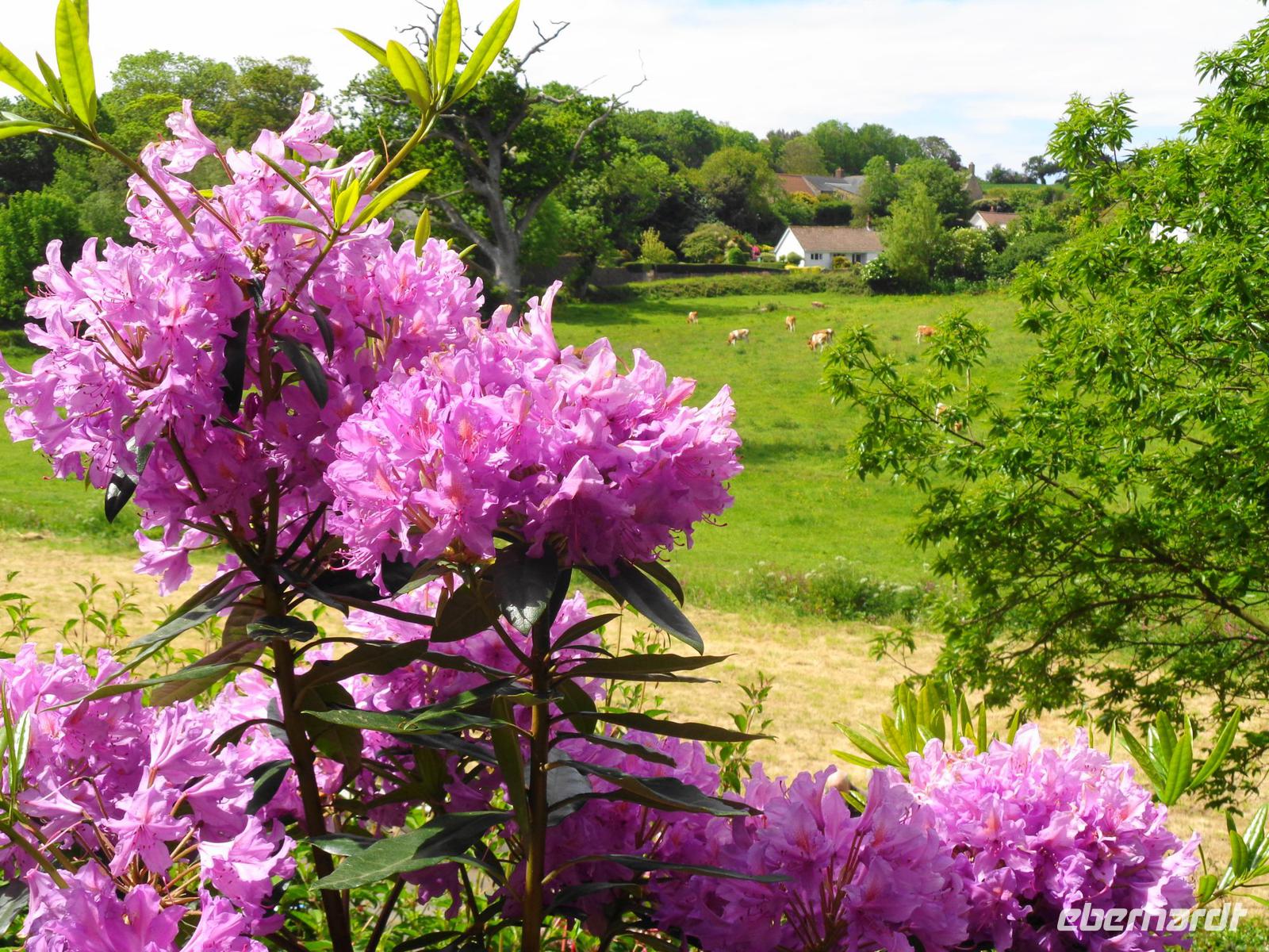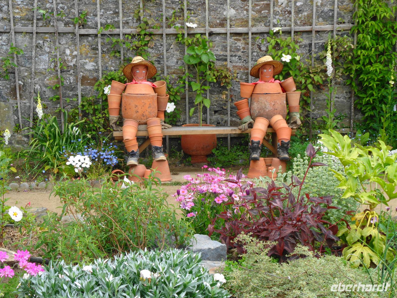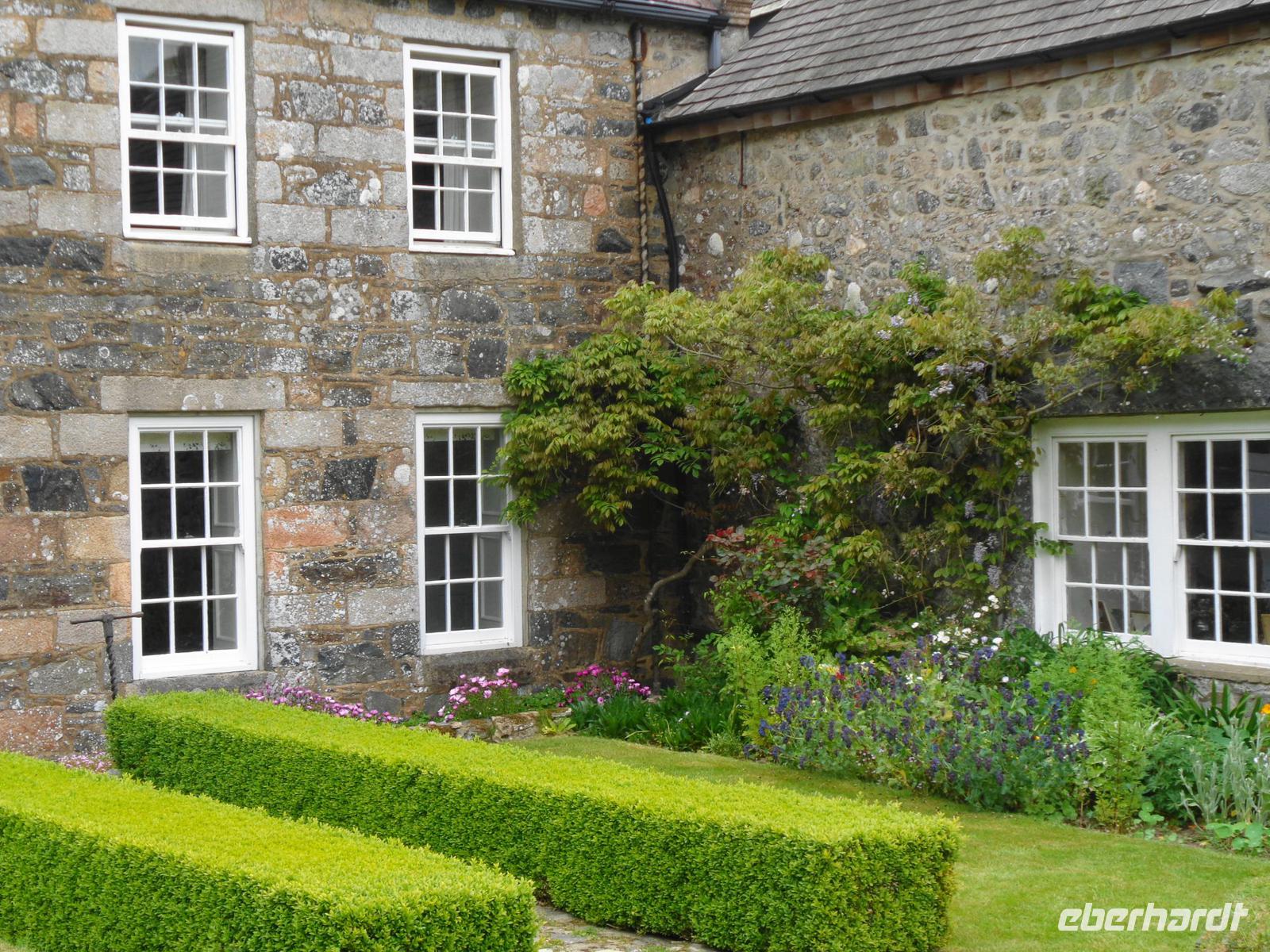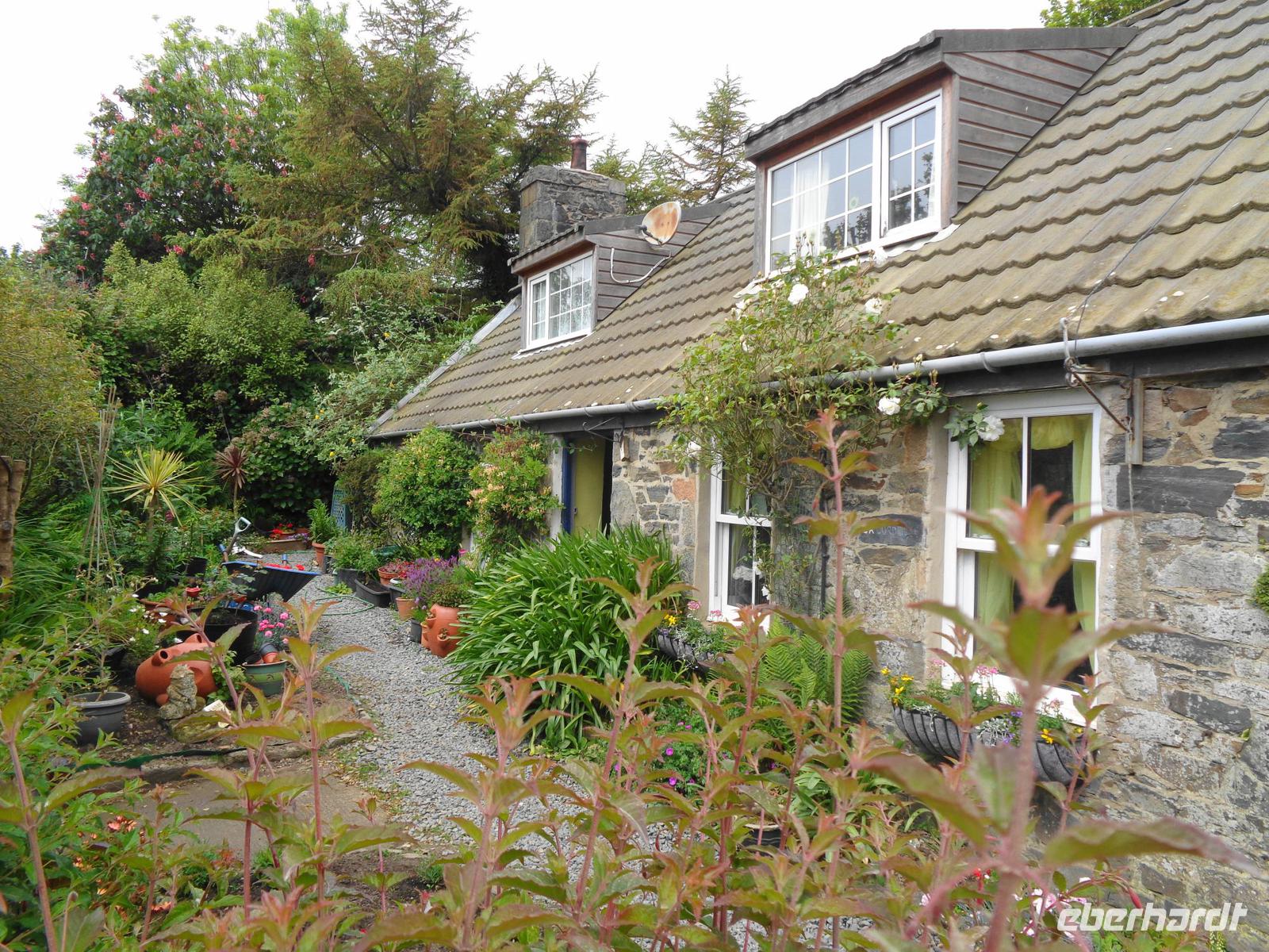 Sark, die zweitkleinste der Kanalinseln, liegt ca. 20 km nördlich von Jersey und ist mit ihren ca. 650 Einwohnern der kleinste europäische Staat. Fern von Hektik und Lärm taucht man ein in die Atmosphäre früherer Jahrhunderte: die einzigen Fortbewegungsmittel auf der autofreien Insel sind Traktoren, Pferdefuhrwerke und Fahrräder. Vom Hafen aus wanderten wir über einen steilen Berg hinauf auf die Hochebene. Weiter ging es durch grüne Weidelandschaft zum Sitz des „Seigneur", dem Gutshaus „La Perronerie", dessen üppige Gärten „La Seigneurie" aufgrund ihrer Blütenpracht eine der Hauptattraktionen der Insel sind. Mit Christine schlenderten wir zu den herrlichen Rosen- und Staudenbeeten, zum Taubenturm und zur Kapelle.