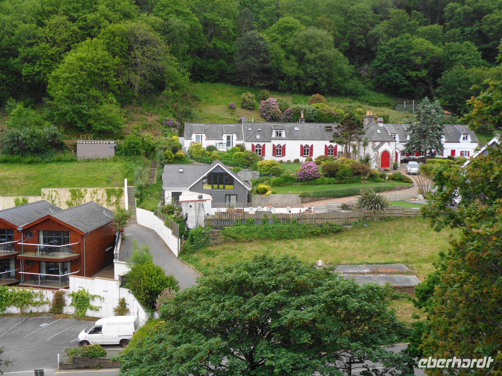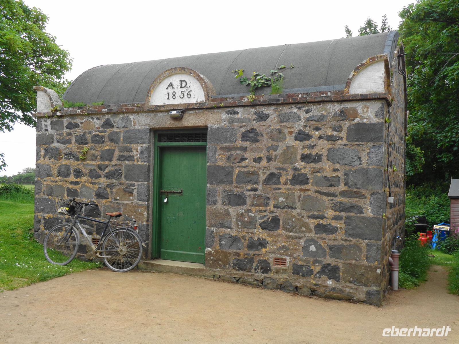 Vor Abfahrt der Fähre blieb noch genügend Zeit für einen Bummel durch das Dorf. Vor dem Gemischtwarenladen bewunderten wir den goldenen Briefkasten, aufgestellt zu Ehren von Carl Hester. Dieser stammt von der Insel und hat bei den Olympischen Spielen in London mit der Mannschaft die Goldmedaille im Dressurreiten gewonnen. Das Gefängnis, unweit der Hauptstraße gelegen, umfasst zwei Zellen. Aus Mangel an echten Kriminellen verbringen aber höchstens einmal ein paar Trunkenbolde hier die Nacht.