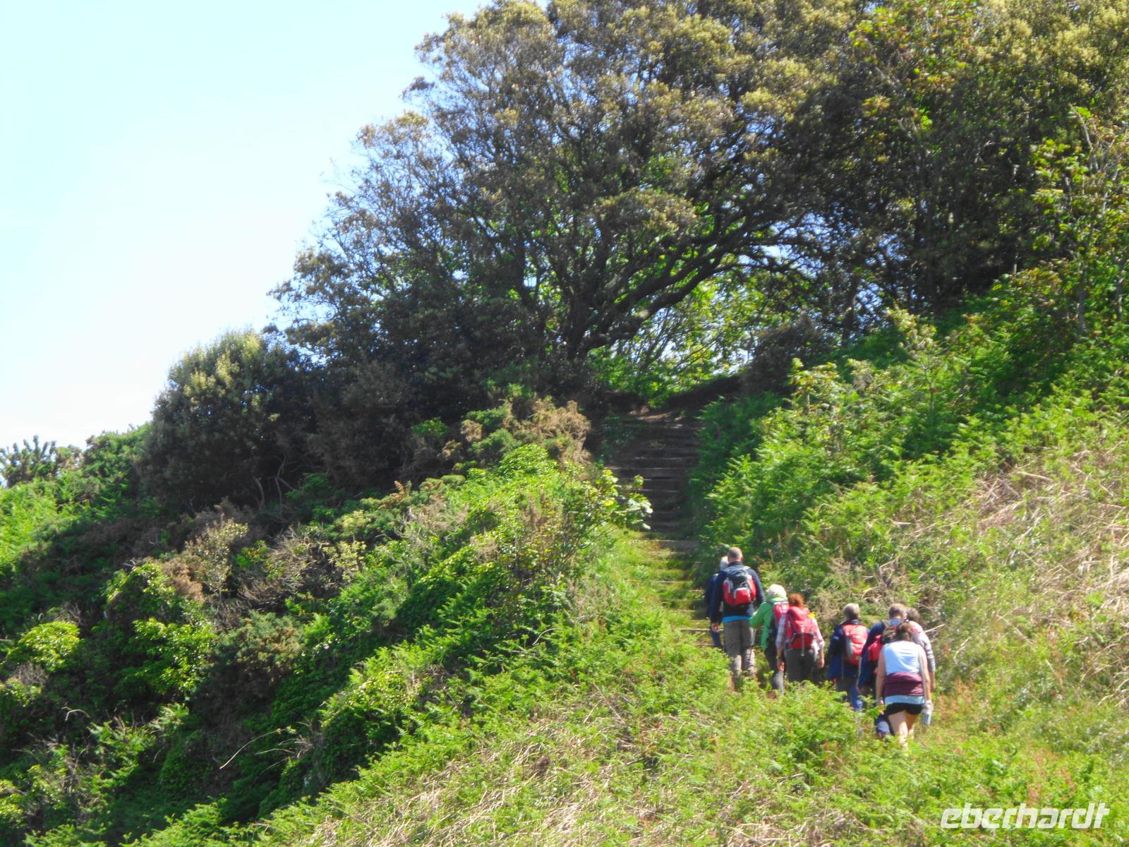 Mit unserem örtlichen Bus, der uns schon im Hafen erwartete, fuhren wir an die Küste, wo wir unter der Führung von Heidi einen Spaziergang unternahmen, der uns herrliche Blicke auf die zerklüftete Küstenlinie bot.