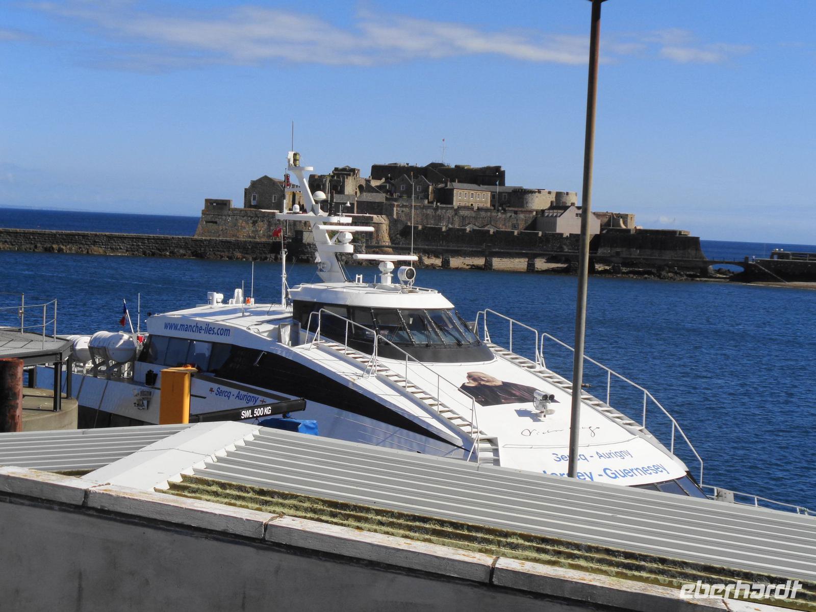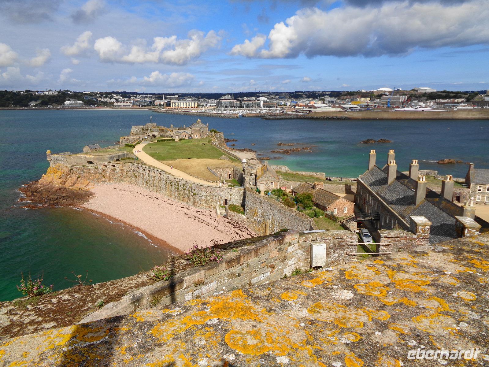 Anschließend hatten wir noch etwas freie Zeit im quirligen Einkaufsviertel oder am Jacht- und Fährhafen, immer mit Blick auf Guernseys bedeutendste Festung, das Castle Cornet. Am frühen Abend hieß es Abschied nehmen von Jerseys attraktiver Schwesterinsel. Die See hatte sich inzwischen beruhigt und so erreichten wir nach einer guten Stunde auf der Fähre diesmal wohlbehalten den Hafen von St. Helier.