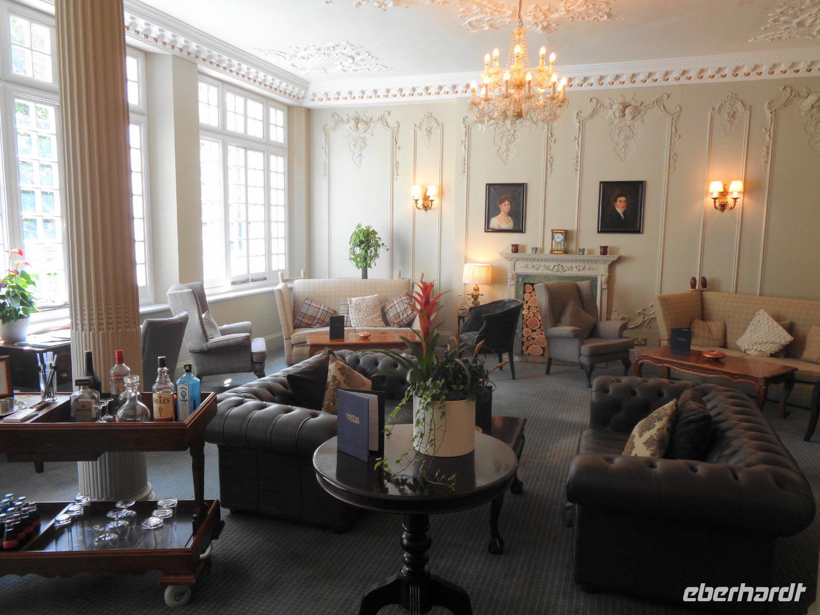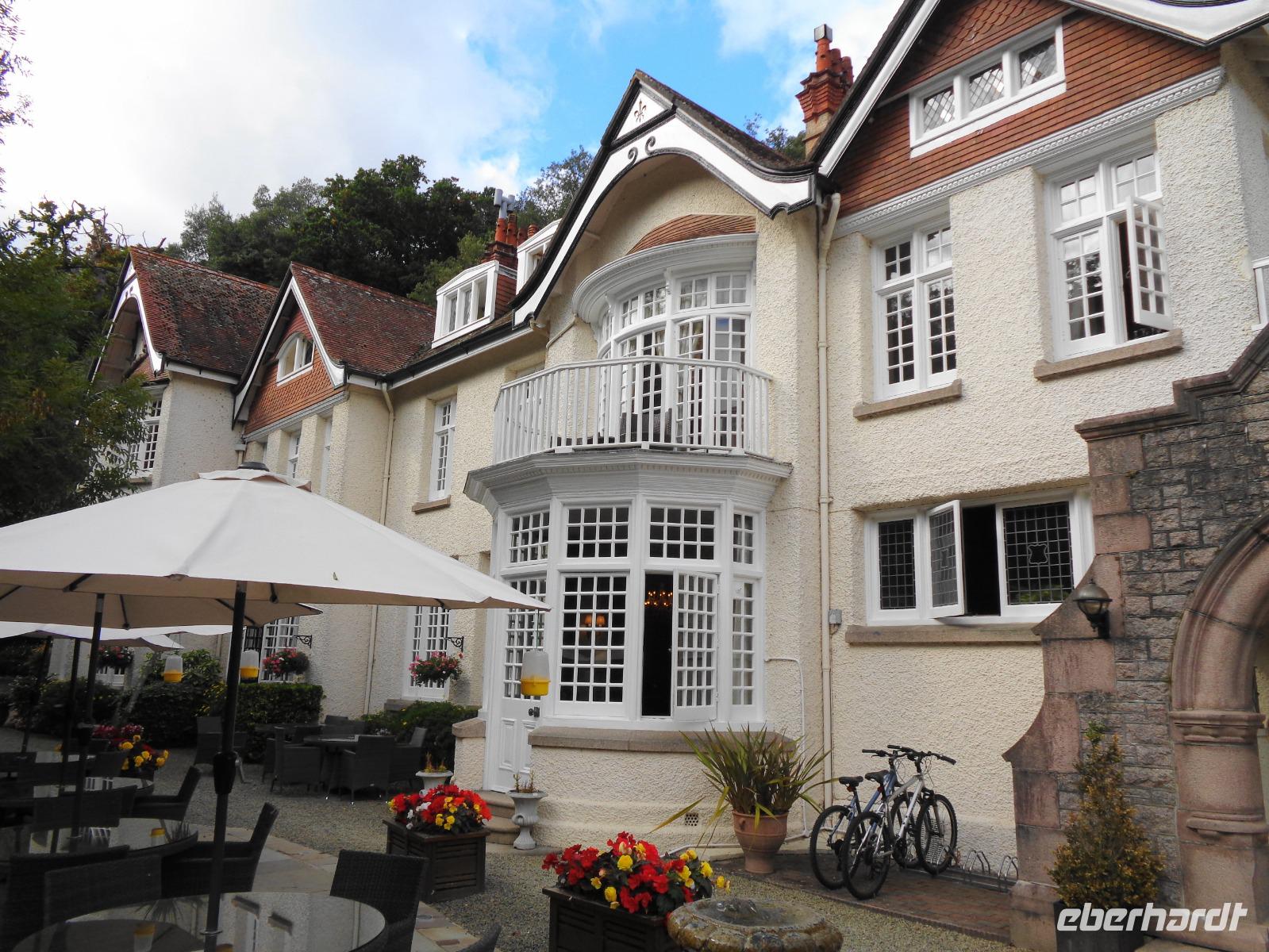 Zum Abschluss des schönen Tages lud Eberhardt zu einem stilvollen „Cream Tea" im „Château La Chaire", einem in einem üppigen Garten gelegenen Luxushotel aus dem 19. Jh. Im Salon wurden uns neben dem Tee auch "scones", "clotted cream" von den legendären Jersey-Kühen und Erdbeerkonfitüre serviert.