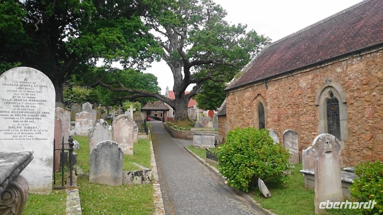 Die Wanderer wurden heute von Ernst nach St. Brélade zum Einstieg der Wanderung gefahren. St. Brélade wird auch das „Hollywood" Jerseys genannt und ist wegen seiner privilegierten Lage an einer wunderschönen Bucht auch bei Prominenten als Wohnort sehr begehrt. Wir statteten der malerisch über der Bucht gelegenen anglikanischen Parochialkirche (Parish Church of St. Brélade) und dem alten Friedhof einen Besuch ab. Daneben befindet sich die sehr sehenswerte, kleine Fischerkapelle (Fisherman's Chapel) mit ihren frisch restaurierten mittelalterlichen Fresken.