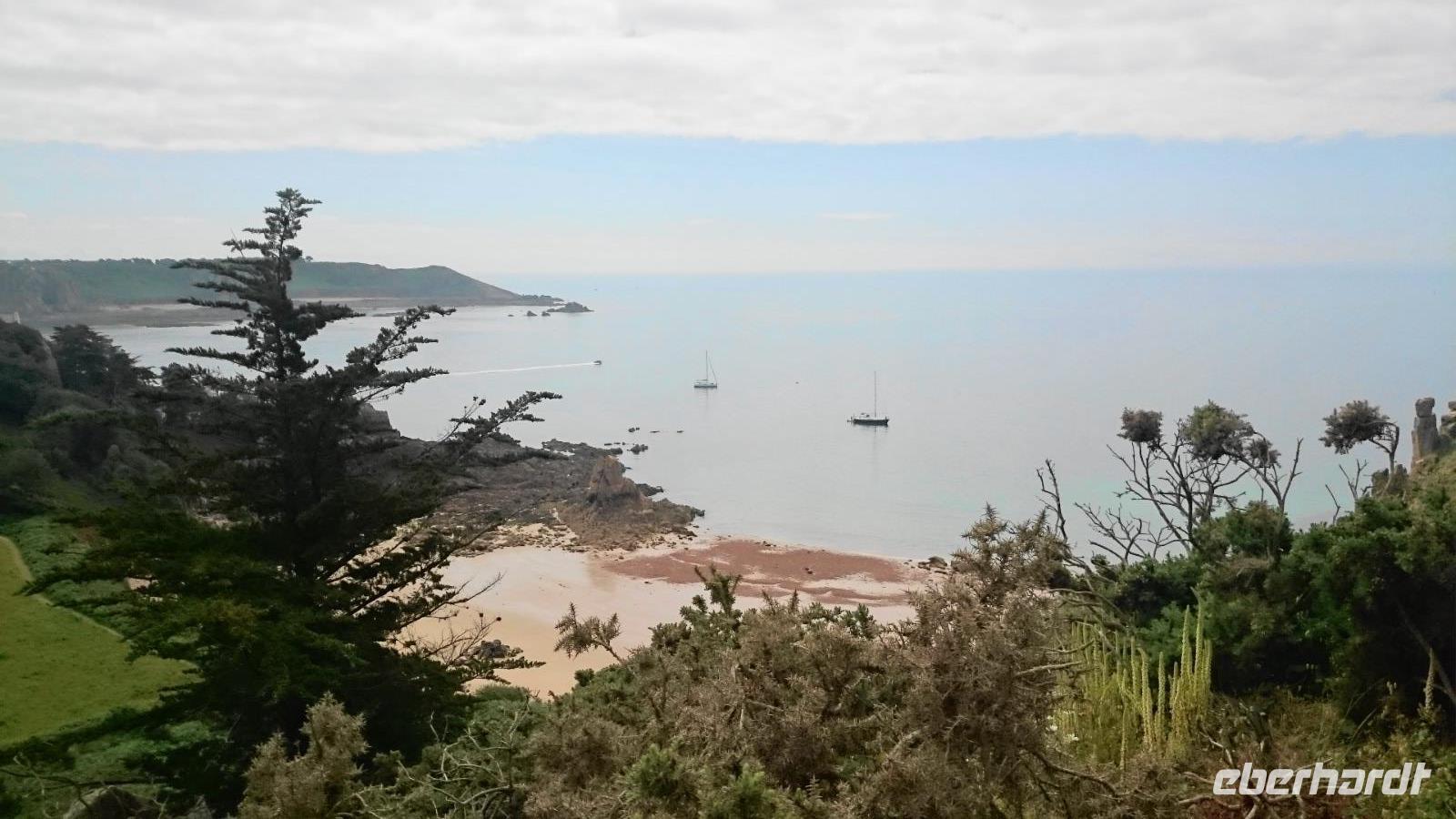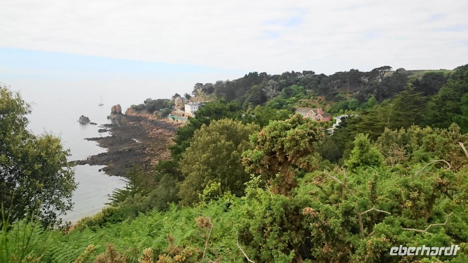 Vom „Window in the Rock" aus hatten wir einen schönen Blick auf die Privatinsel Brecqhou. Diese gehört seit 1993 den Zwillingsbrüdern David und Frederick Barclay, Miteigentümer der Zeitungen "Daily Telegraph" und "The Scotsman", die sie in einen weitläufigen Park mit einem Herrenhaus im neogotischen Stil verwandelt haben.