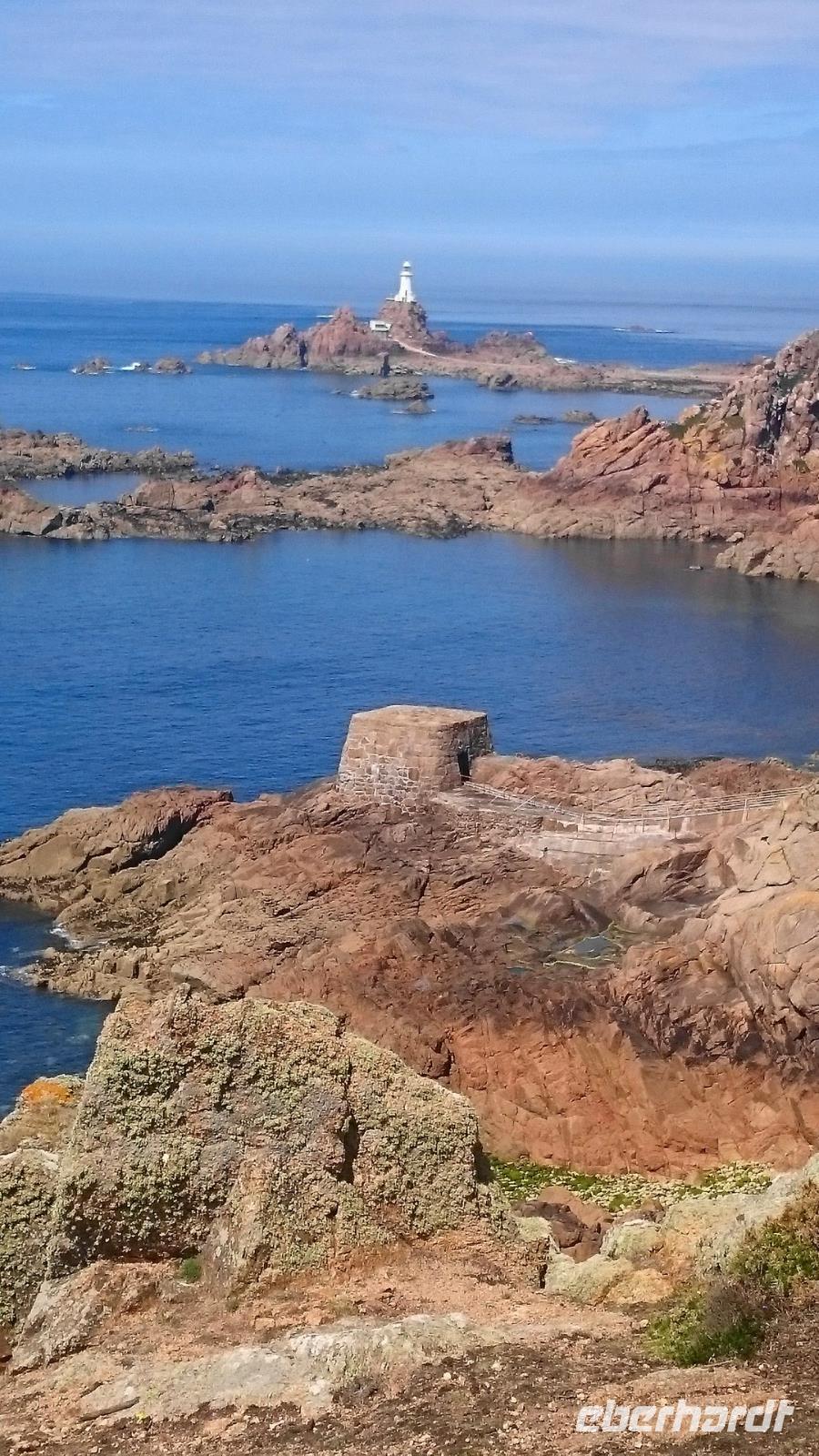 Entlang des Klippenwanderwegs ging es in gemächlichem Tempo mit vielen Stopps zum Erholen und Fotografieren in Richtung La Corbière Leuchtturm. Dort angekommen, wanderten die meisten bei Ebbe zum Leuchtturm hinüber. Danach war, wie gewohnt, noch ausreichend Zeit für eine Einkehr in einem typischen Pub mit herrlichem Blick auf Leuchtturm und Küste oder ein köstliches Jersey-Eis an der Eisbude.