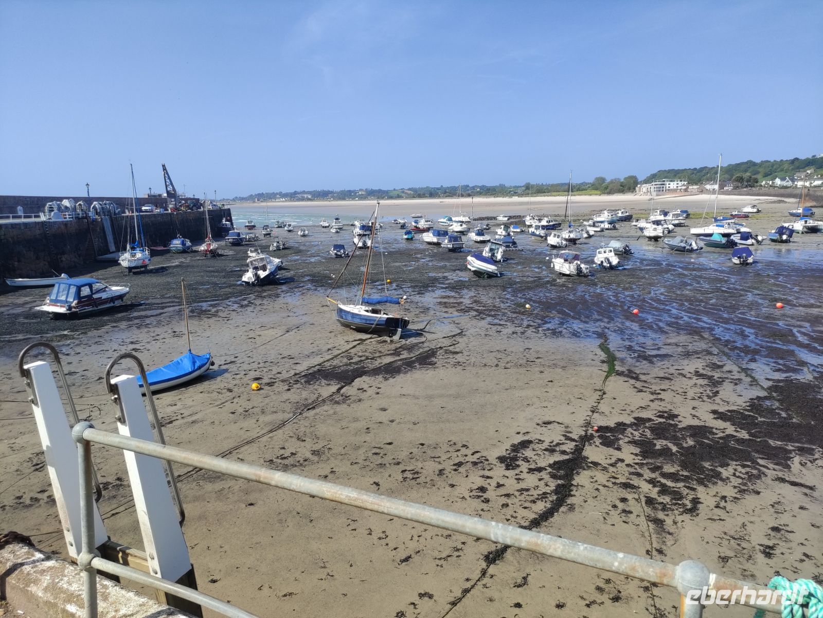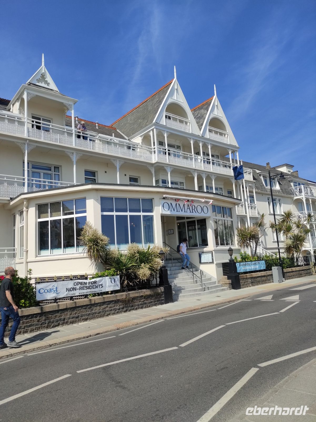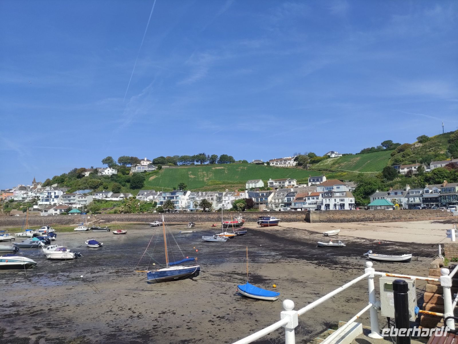 Das Hotel Ommaroo ist ein bekanntes Hotel auf der Kanalinsel Jersey. Es liegt in der Nähe der Hauptstadt St. Helier und bietet einen malerischen Blick auf die Bucht von St. Clement. Es befindet sich direkt am Meer und nur etwa 10 Gehminuten von der Innenstadt von St. Helier entfernt. Nach dem Einchecken treffen wir uns zu einem kleinen Strandspaziergang bei Ebbe.