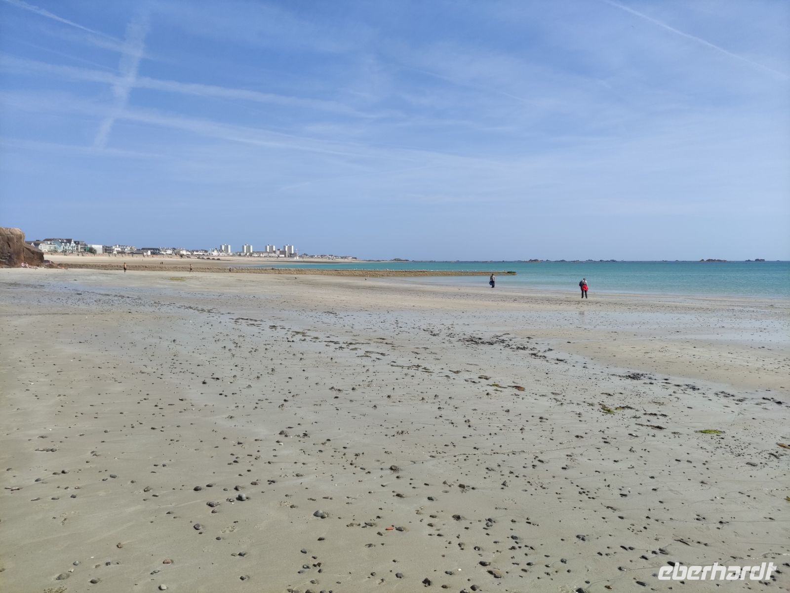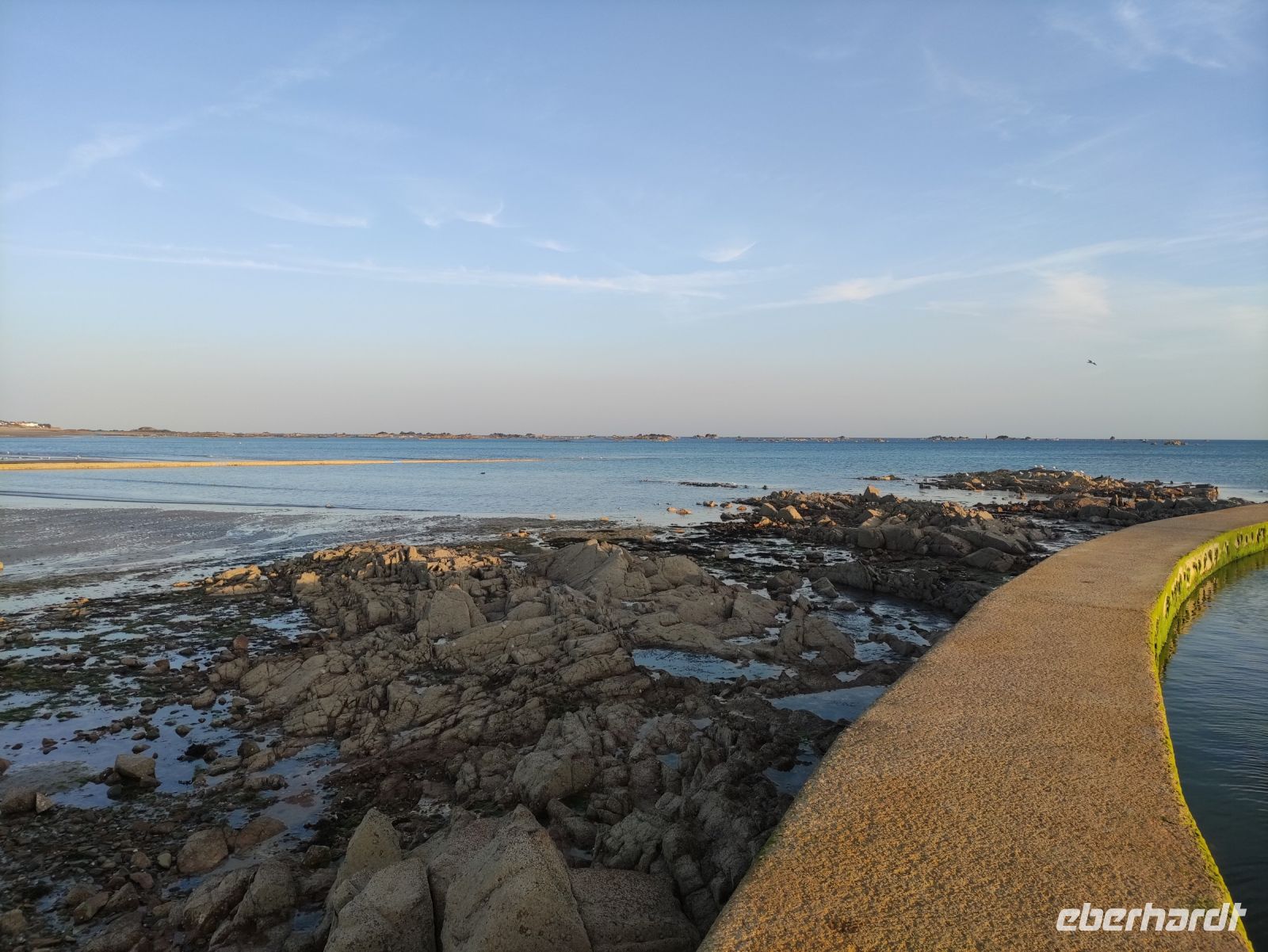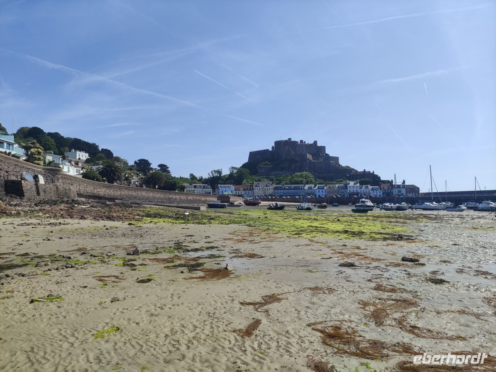 Am Strand von St. Aubin machten wir eine erholsame Mittagspause. Leider hatte sich das Wetter währenddessen gedreht und es wurde immer stürmischer. Wir trotzen dem Wind und liefen am Strand bis nach St. Helier.