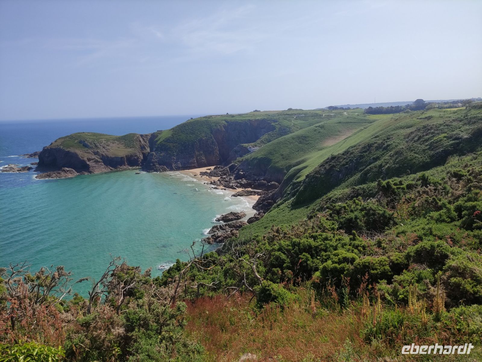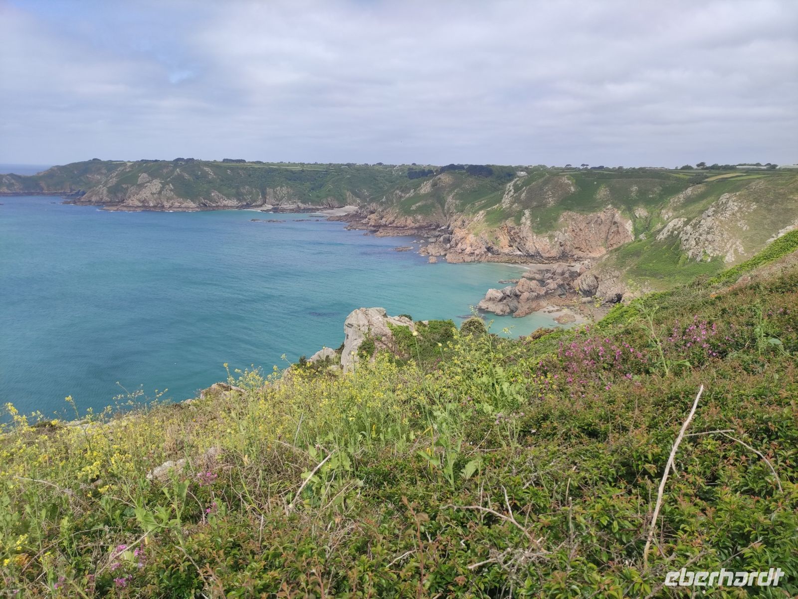 Unsere Wanderung startete somit in der Nähe von Plemont Bay, einer idyllischen Bucht, die bei Ebbe ihre ganze Pracht entfaltet. Romantische, gewundene Küstenpfade begleiteten uns, während wir die Aussicht auf das glitzernde Meer und die umliegende Landschaft genossen. Auf unserem Weg nach Greve de Lecq passierten wir charmante kleine Buchten und felsige Abschnitte, die uns immer wieder faszinierten.