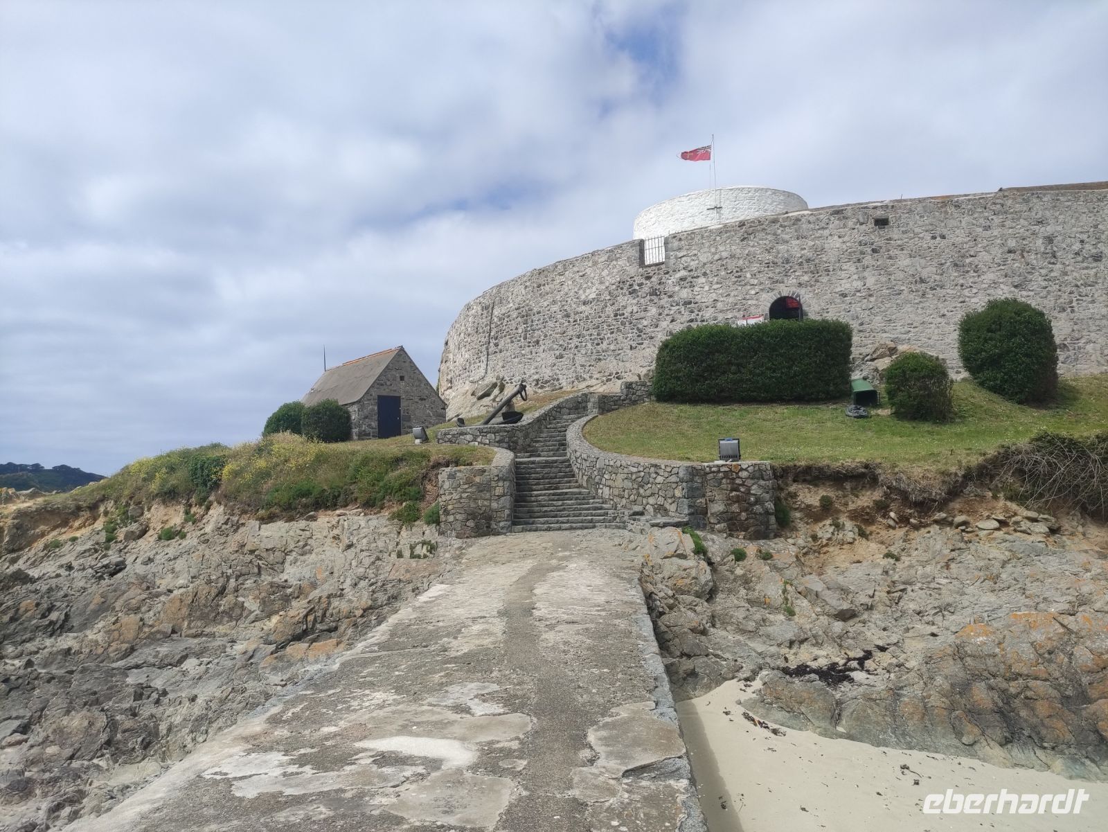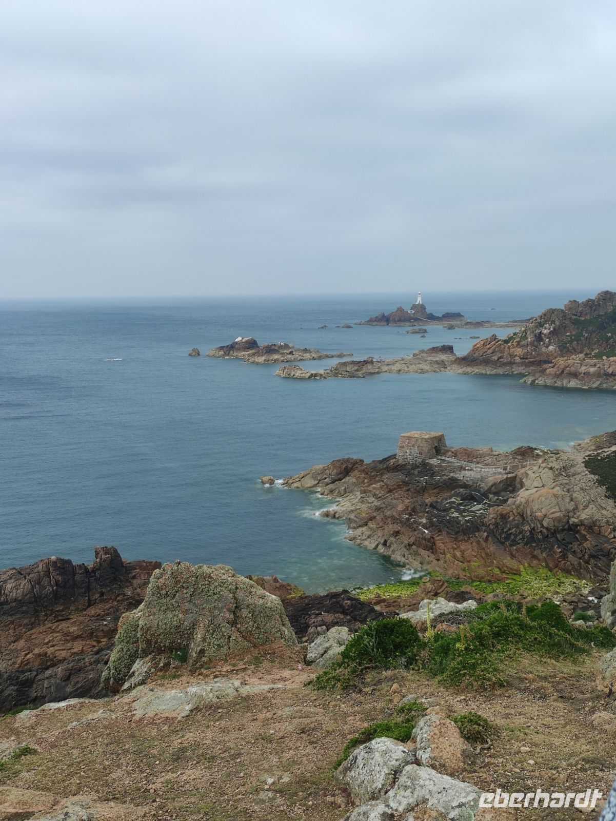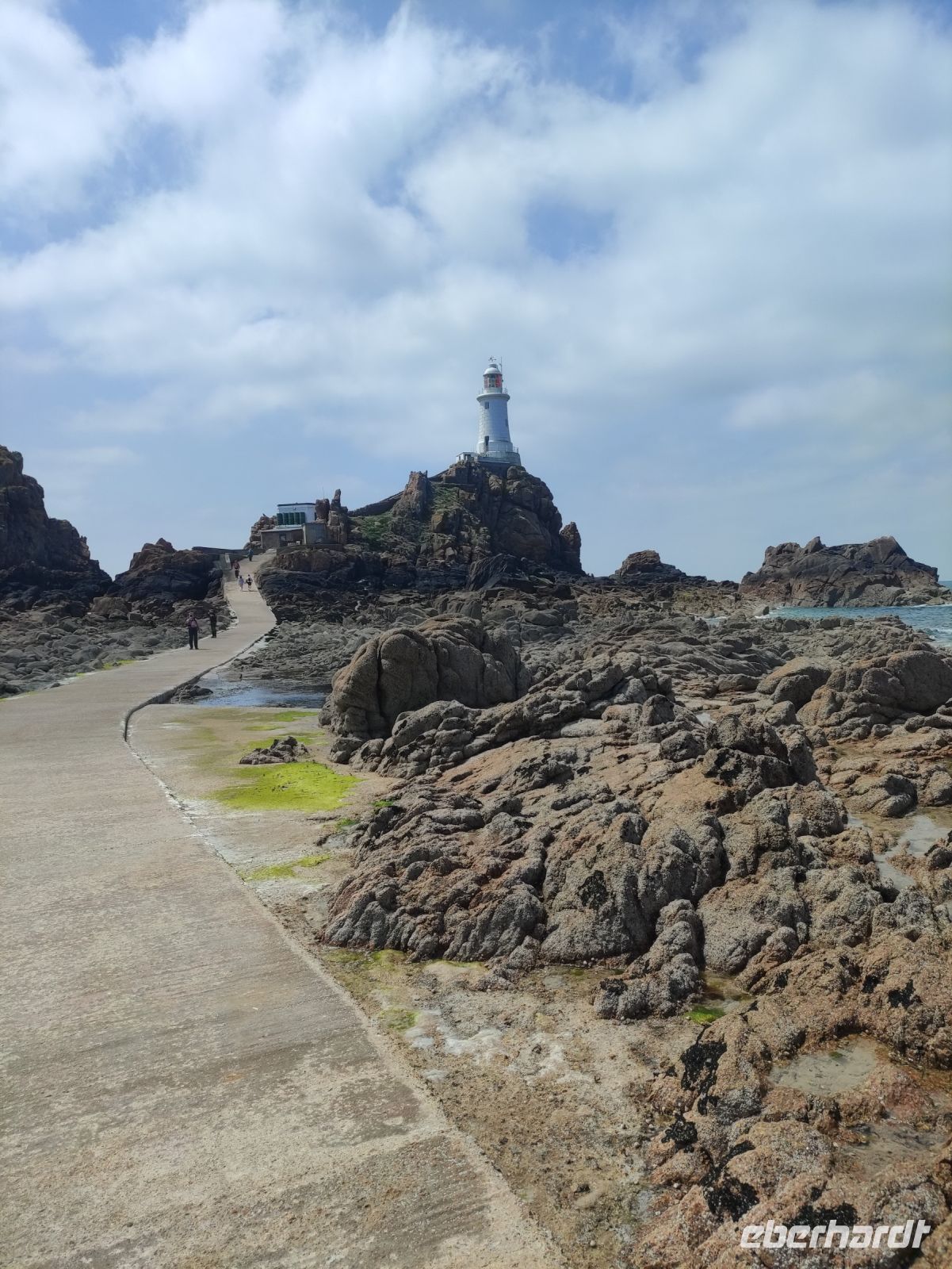 An der Südwestspitze der Insel erwartet uns der strahlend weiße Corbiere Leuchtturm, eines der bekanntesten Wahrzeichen von Jersey. Es war Ebbe, und wir hatten sogar die Möglichkeit, über einen steinernen Damm zum Leuchtturm zu gelangen und ihn aus nächster Nähe zu bewundern. Hier nehmen wir auch eine wohlverdiente Mittagspause ein und lassen uns von der beeindruckenden Kulisse und dem Blick auf das Meer verzaubern.