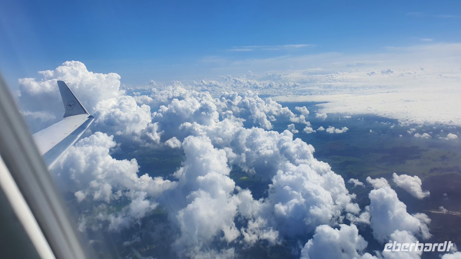 Den Vormittag konnten wir nach Belieben gestalten, mit einem langen Frühstück, Kofferpacken oder einem letzten Strandspaziergang. Um 11.15 Uhr holte uns Eddie mit dem Bus ab und wir fuhren alle gemeinsam zum Flughafen von Jersey. In der Abflughalle sieht man gleich gegenüber die Check In Schalter für eurowings und Lufthansa/AirDolomiti. Alles läuft problemlos und jeder hat seine Bordkarten für die Rückflüge.