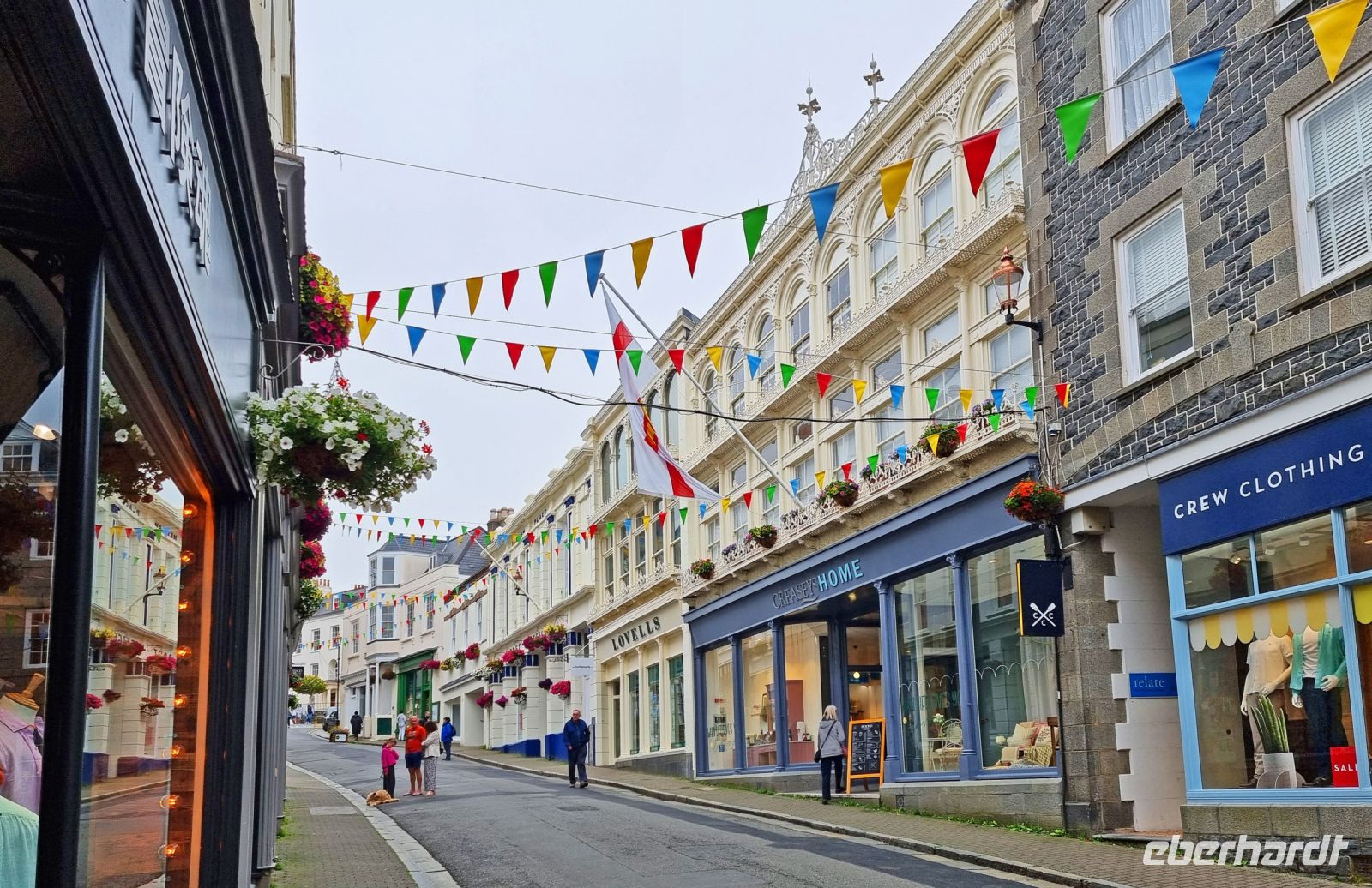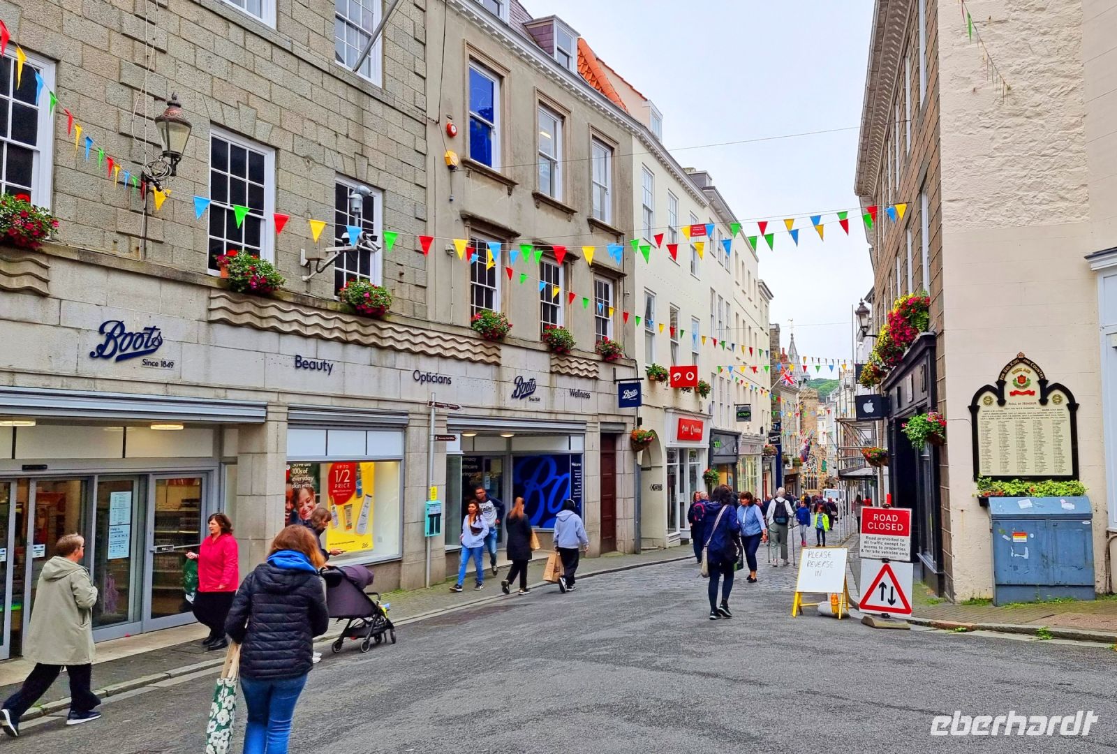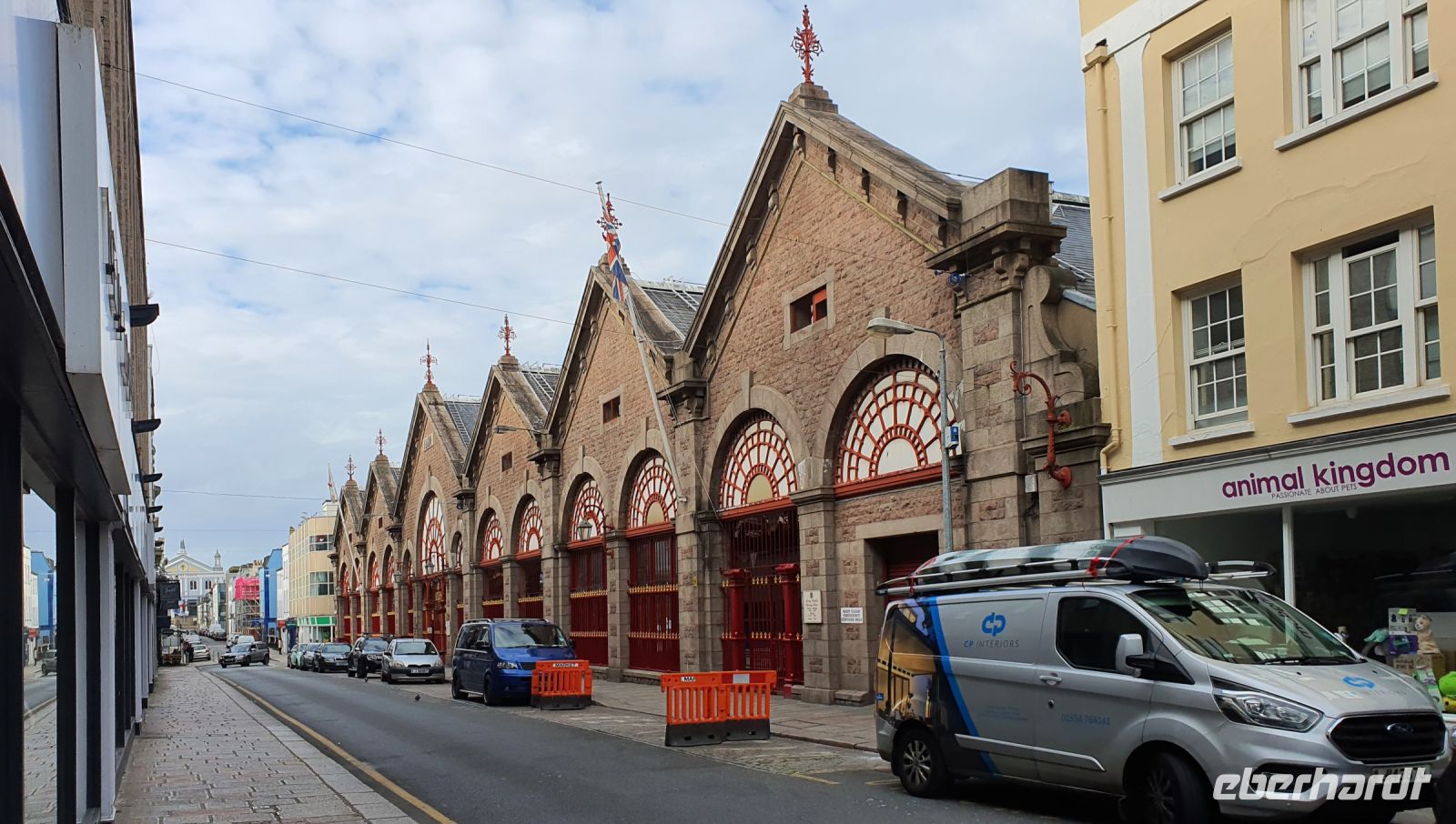 Nach dem Bezug der Zimmer und einer kleinen Inforunde unternahmen wir einen Bummel in die Innenstadt von St. Helier. Die Haupteinkaufsstraßen King Street und Queen Street sowie die hübsche viktorianische Markthalle von St. Helier sind in nur 10 Gehminuten vom Hotel bequem erreichbar. Es gibt mehrere kleine Supermärkte, in denen wir uns noch mit Getränken für die nächsten Tage versorgen konnten. Die meisten haben bis spät abends und auch sonntags geöffnet.