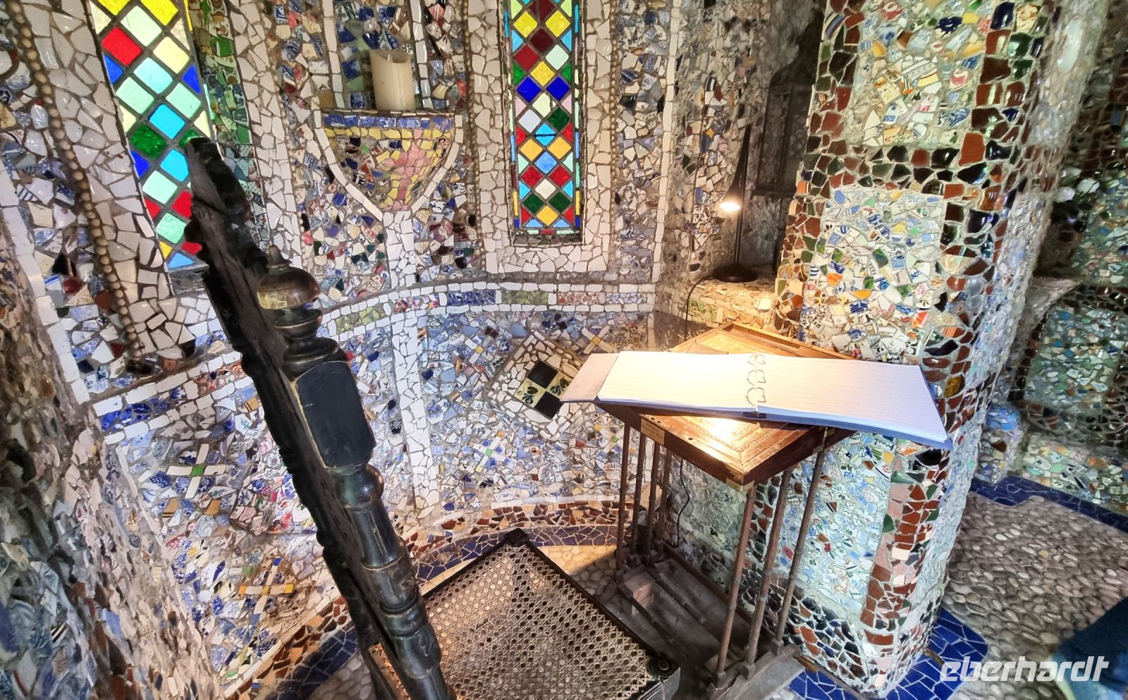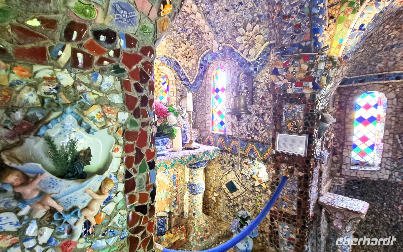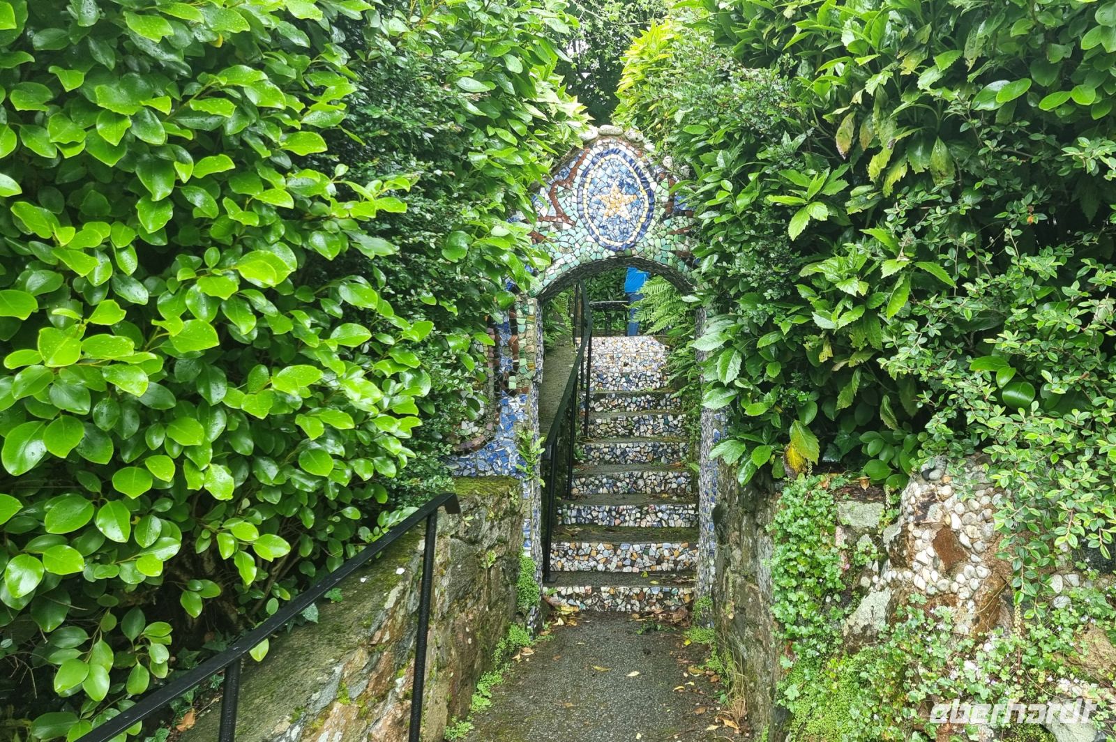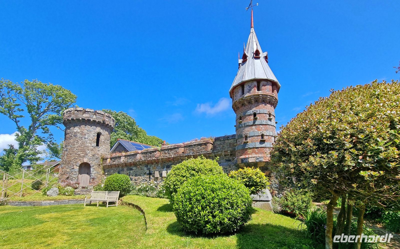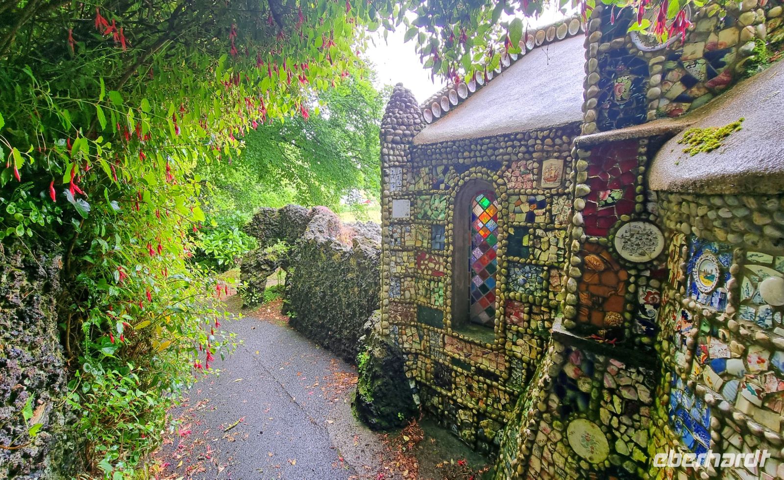 Unsere Inselrundfahrt führte uns von der Hauptstadt St. Peter Port zunächst an die Steilklippen der Jerbourg-Halbinsel an der Südostspitze von Guernsey. Der Himmel war leider wolkenverhangen, sodass wir beim Fotostopp nicht die schönste Aussicht hatten. Hier lebte ein paar Wochen der französische Maler Pierre-Auguste Renoir, ein bedeutender Vertreter des Impressionismus, der zahlreiche Landschaften der Insel Guernsey in seinen Gemälden verewigt hat. Auch das Gouverneur John Doyle Denkmal steht an diesem Ort. Durch die Gemeinden St. Martin und Forest fuhren wir zur kleinen Scherbenkapelle Little Chapel, ein Miniatur-Nachbau der Kirche von Lourdes in Frankreich. Hier konnten wir hindurch gehen und uns das Kunstwerk von Innen ansehen.