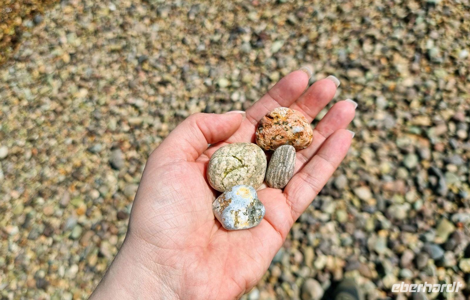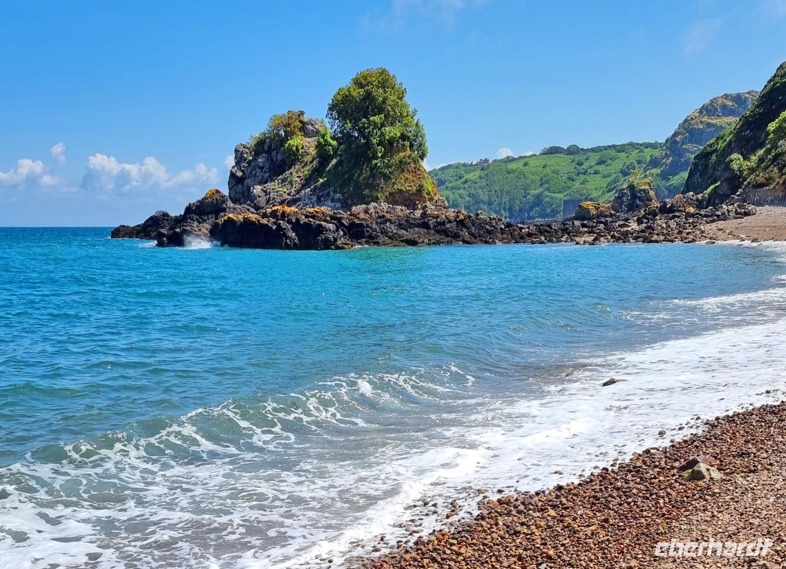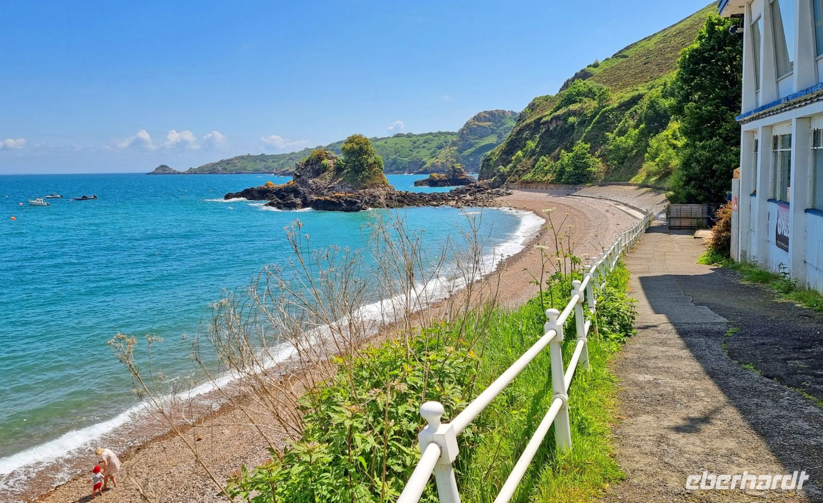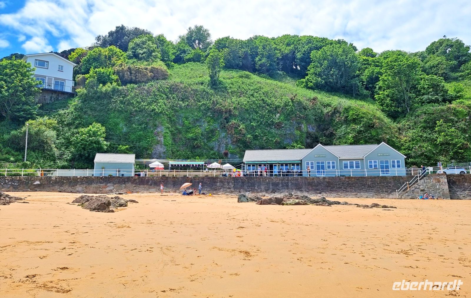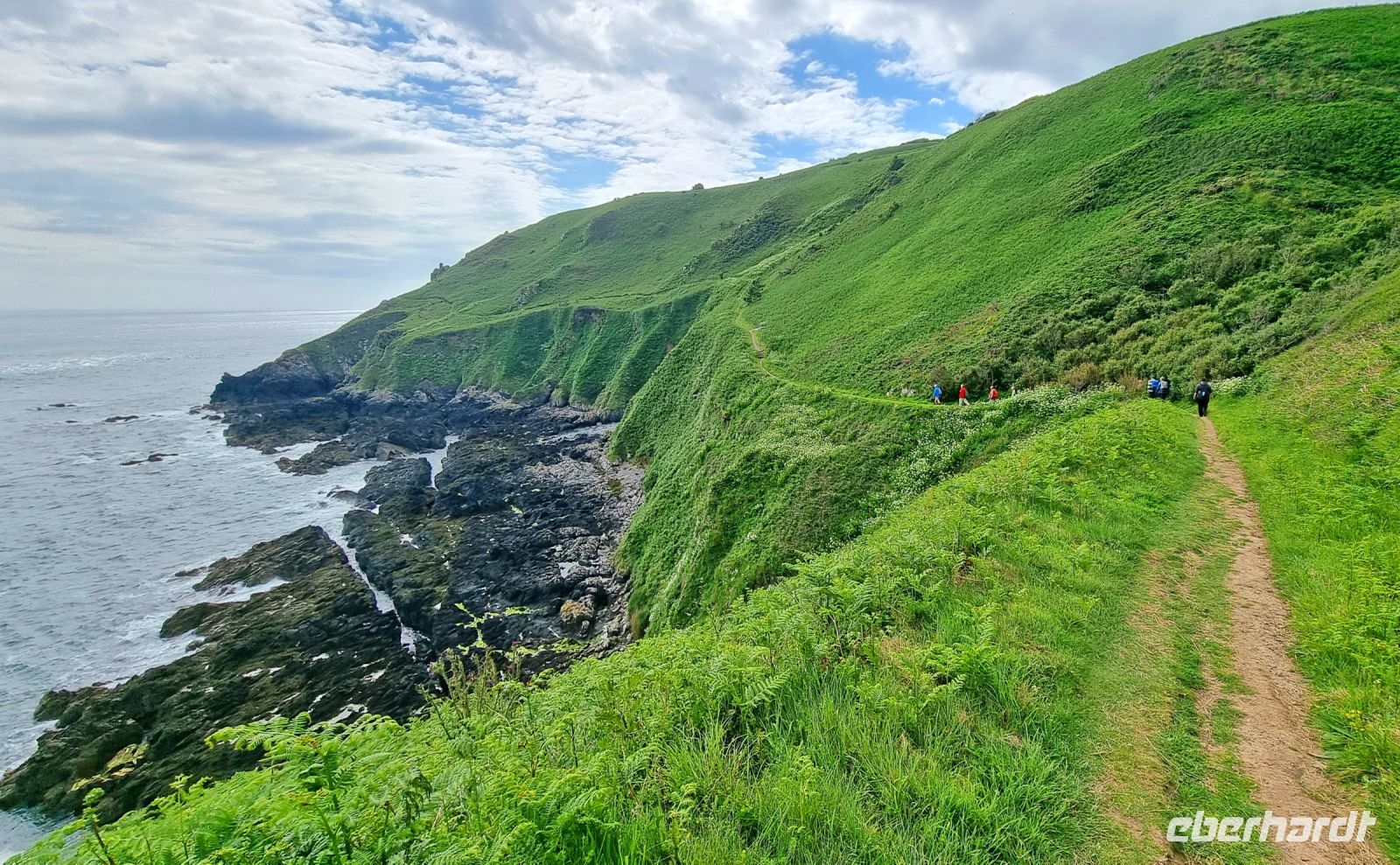 Beim Abstieg zur Boley Bay sahen wir ein altes Kloster mit Kapelle, das heute als B&B-Unterkunft genutzt wird. Zur Mittagszeit erreichten wir die Boley Bay. Hier gibt es öffentliche Toiletten und einen Kiosk, der Kaffee, Kuchen, Getränke und Sandwiches anbietet. Ich liebe die Boley Bay besonders, weil hier tolle bunte Steine am Strand gesammelt werden können.