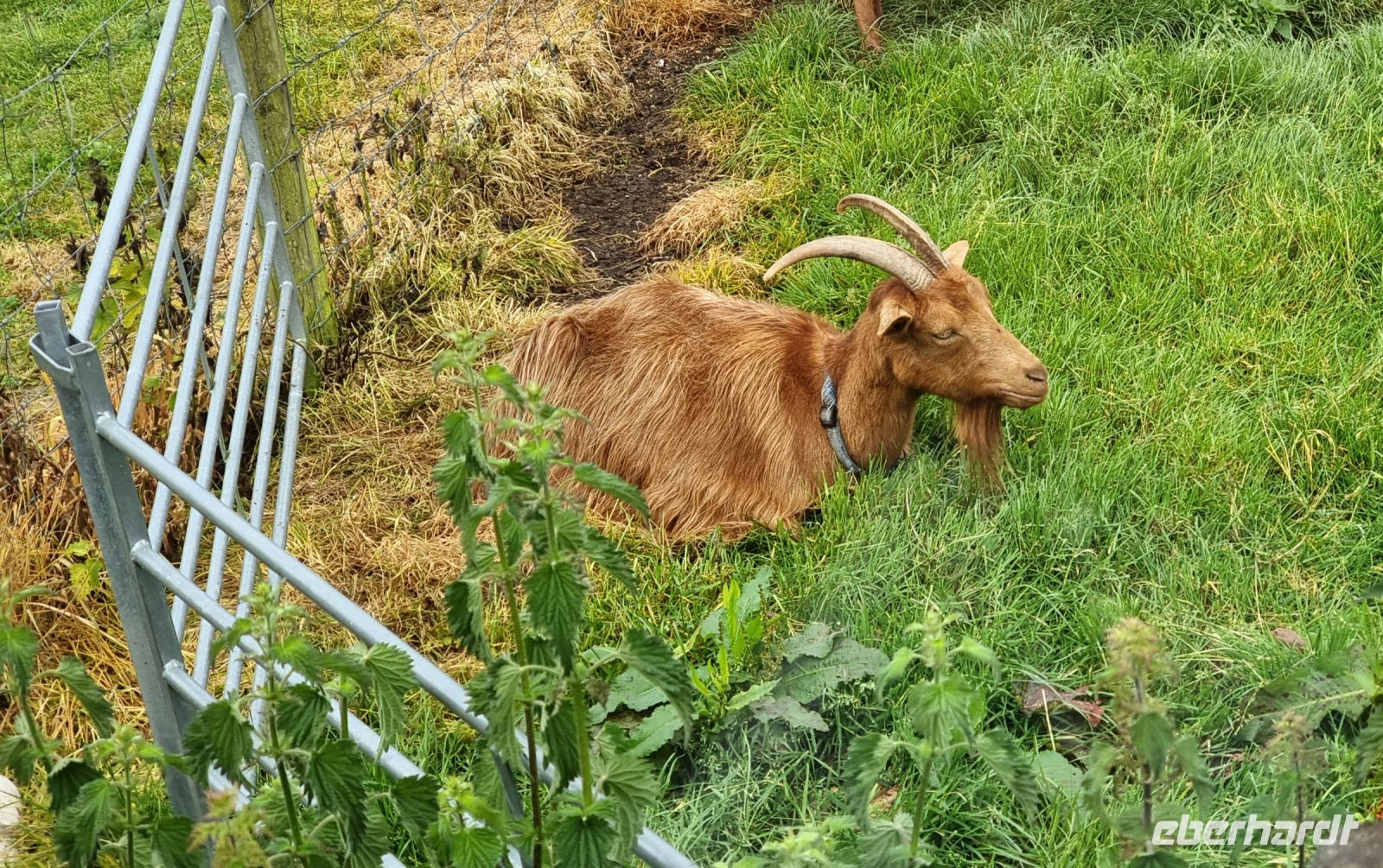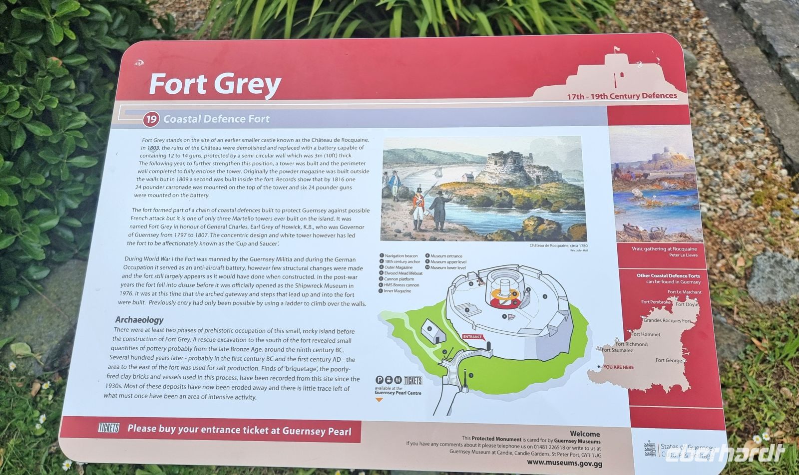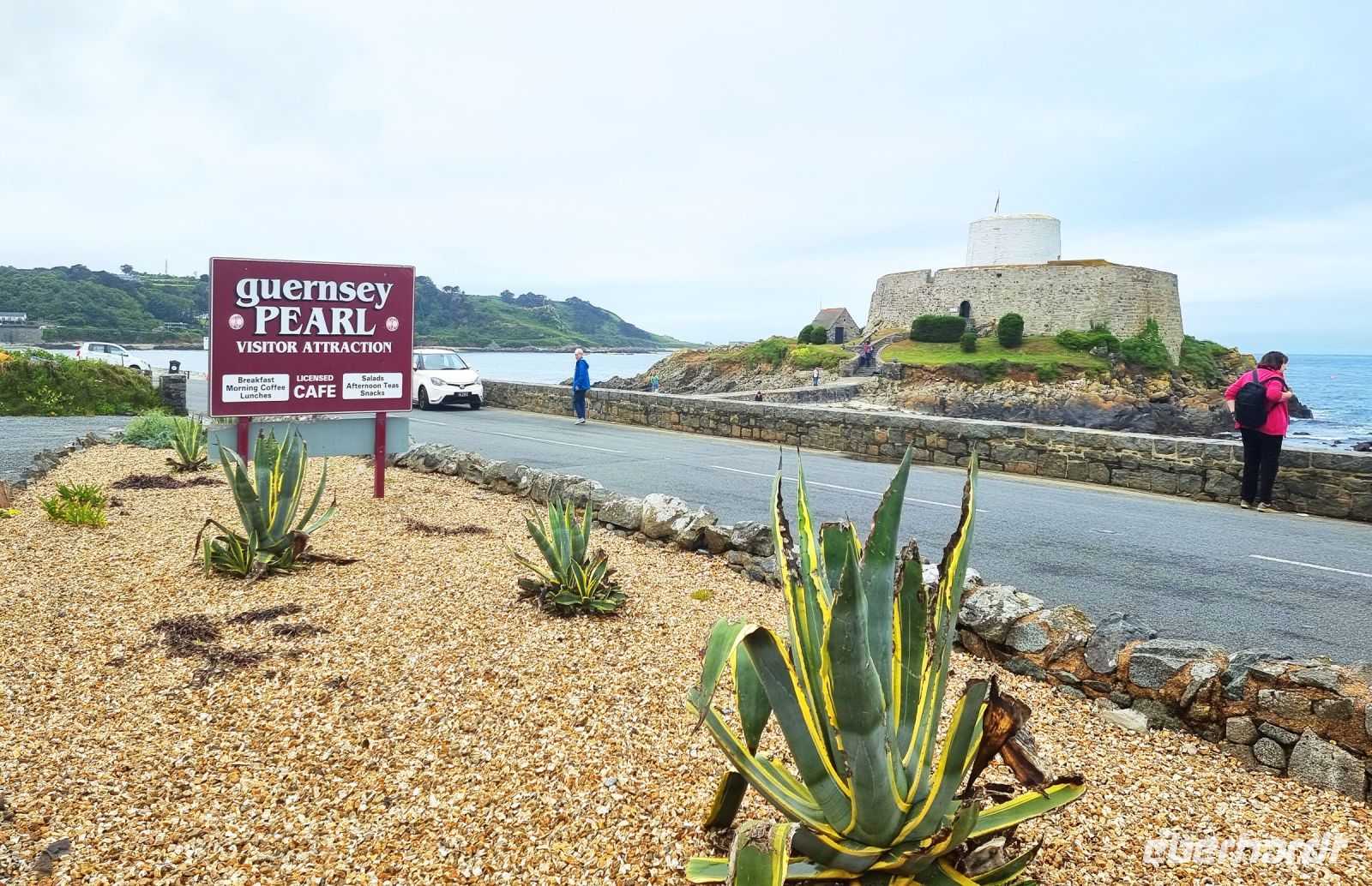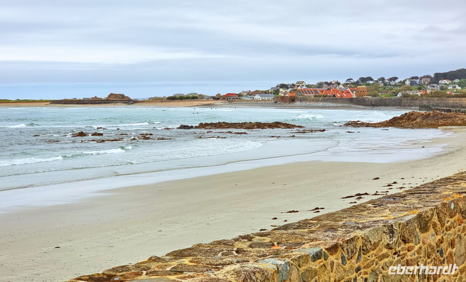 Mit dem Bus ging es dann weiter an die Westküste von Guernsey, unterwegs sahen wir die hübschen goldfarbenen Ziegen, die "Golden Goats" von Guernsey. Einen kurzen Stopp legten wir am Café und Schmuckgeschäft Guernsey Pearl ein und konnten ein paar Fotos vom gegenüberliegenden Fort Grey machen. Der Rundturm und die untere runde Plattform von Fort Grey wird auch als Tasse und Untertasse bezeichnet. Entlang der Westküste ging es weiter vorbei an den schönsten Standstränden Guernseys und schließlich wieder zurück in Richtung St. Peter Port.