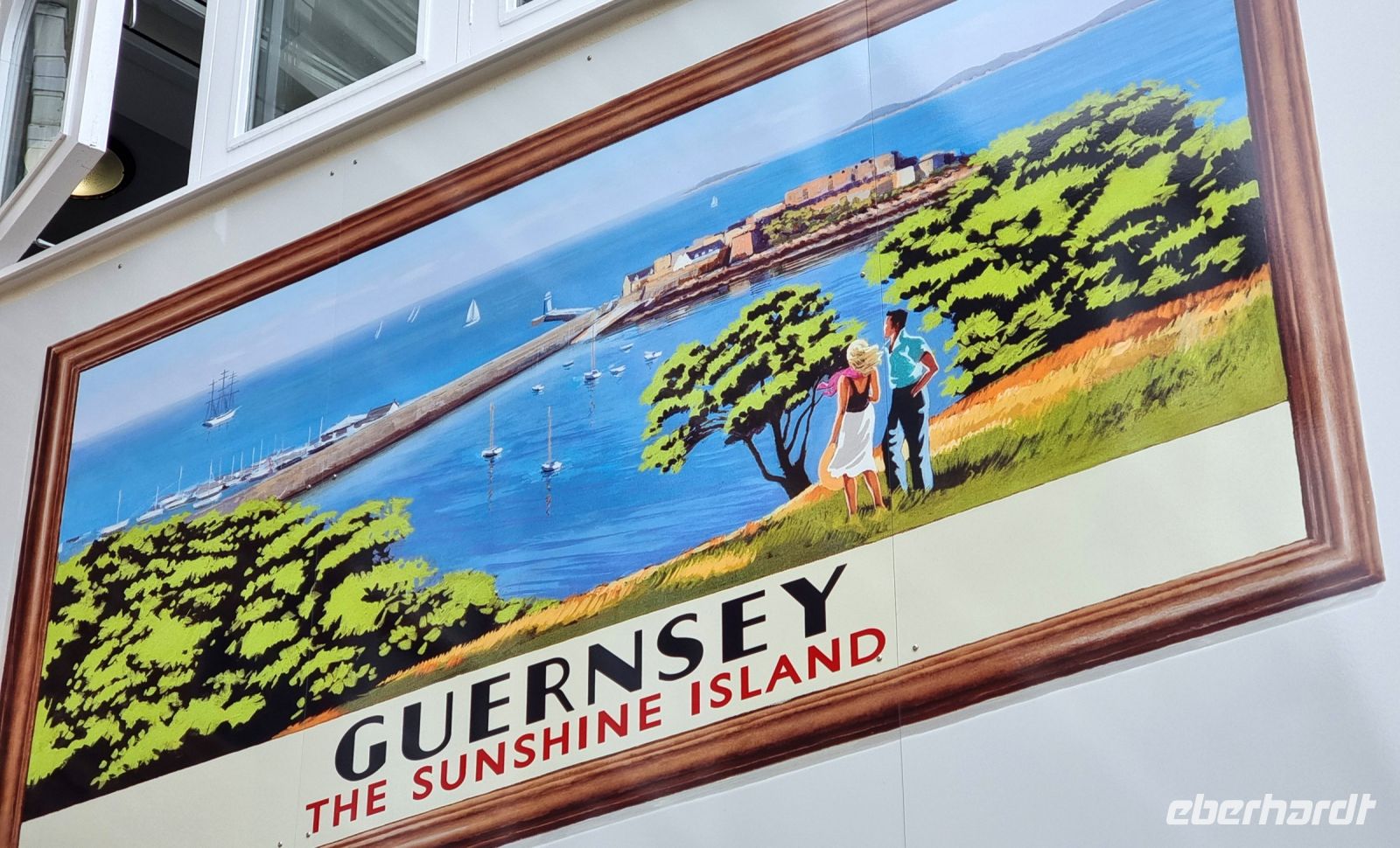 Heute hieß es zeitig aufstehen, denn unsere Fähre zur zweitgrößten Kanalinsel Guernsey sollte schon kurz nach 9.00 Uhr am Hafen von St. Helier starten. Der Check In für die Fähren muss mindestens eine Stunde für Abfahrt gemacht werden, daher ergeben sich immer lange Wartezeiten im Hafenterminal. Zusätzlich muss man auch durch eine Sicherheitskontrolle, bei der die Taschen durchleuchtet werden. Nach Guernsey fuhren wir mit einer großen Condor-Fähre, es sollte also eine ruhige Überfahrt werden. Unsere Fähre startete mit einer halben Stunde Verspätung, die Überfahrt dauerte etwa eine Stunde. Wir kamen gegen 10.30 Uhr im Hafen von St. Peter Port auf Guernsey an. Im kleinen Hafenterminal erwartete uns Gaby, unsere örtliche Reiseleiterin, die wir schon von der Insel Sark kannten. Auch unser Bus für die Inselrundfahrt mit Fahrer Joe stand schon bereit.