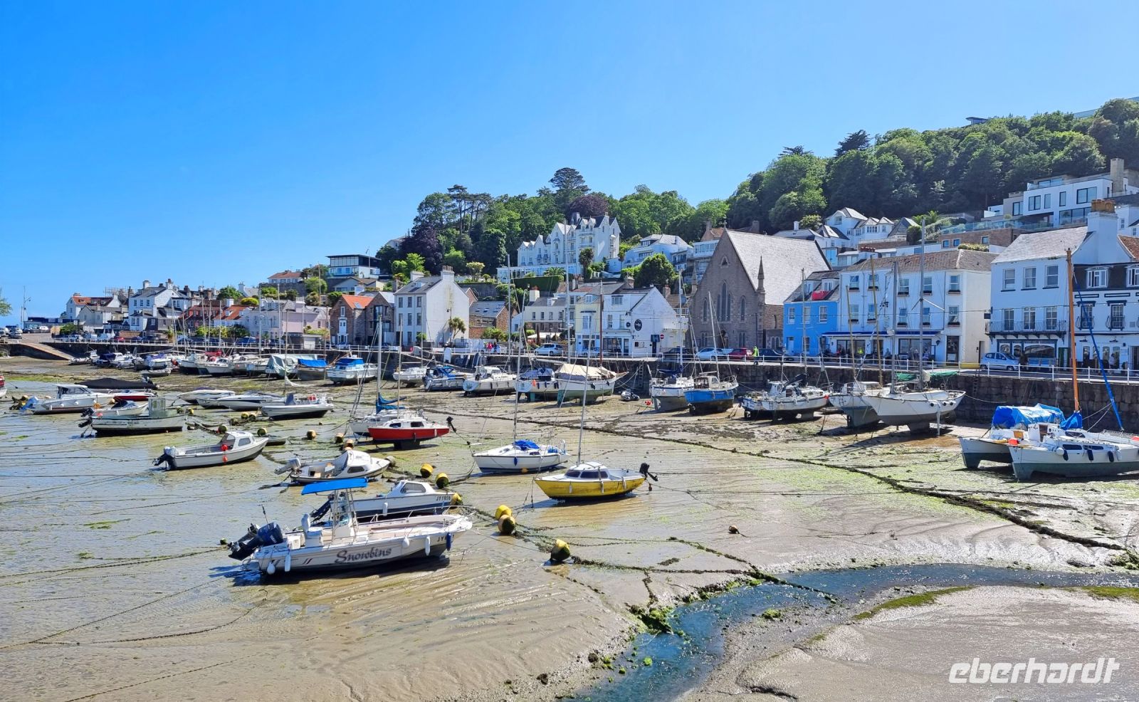 Vor Rozel Bay verließen wir den Küstenpfad und wanderten vorbei an Jersey Kühen und Pferdeweiden hinab nach Rozel. Durch das Dorf gingen wir hinunter zum Hafen von Rozel Bay, über den Kieselstrand und weiter bis zum Chateau de Claire, wo wir am Ende unserer Wanderung eine Kaffeepause einlegten. Um 16.00 Uhr ging es mit unserem Bus zurück nach St. Helier.