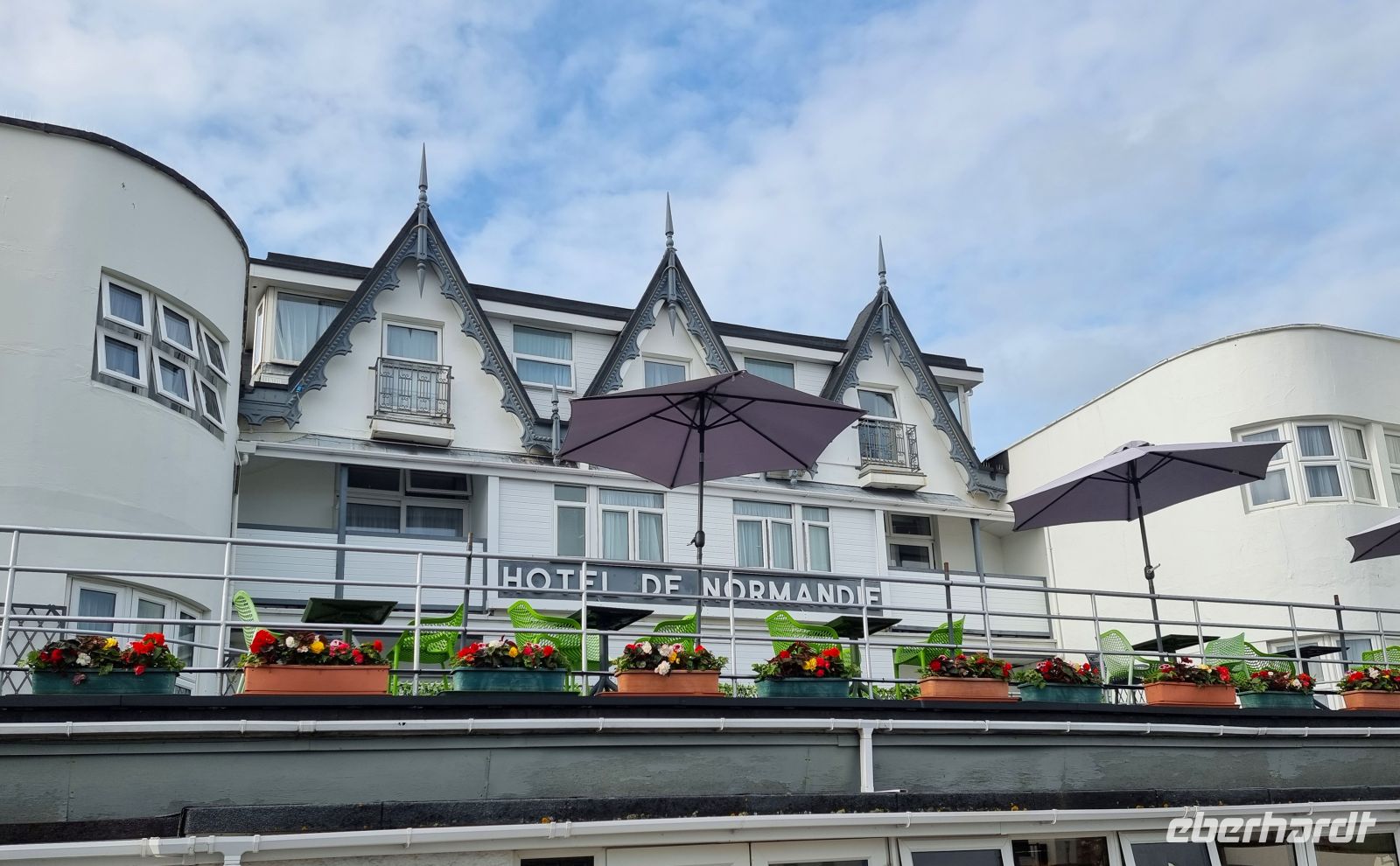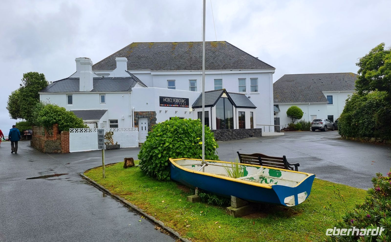Das Hotel de Normandie liegt direkt an der Südküste der Insel und ist ein typisch englisches Hotel aus der viktorianischen Zeit mit verwinkelten Gängen und kleinen Zimmern in jeder Nische des Gebäudes. Nur die Küstenstraße trennt das Hotel vom Strand Havre des Pas in der St.?Clement’s Bay. Schon der französische Schriftsteller Victor Hugo liebte diese Bucht und saß hier gern auf einem Felsen direkt gegenüber des Hotels de Normandie. Zur Begrüßung tranken wir einen Cidre, einen für die Normandie und auch für Jersey typischen Apfelwein.
